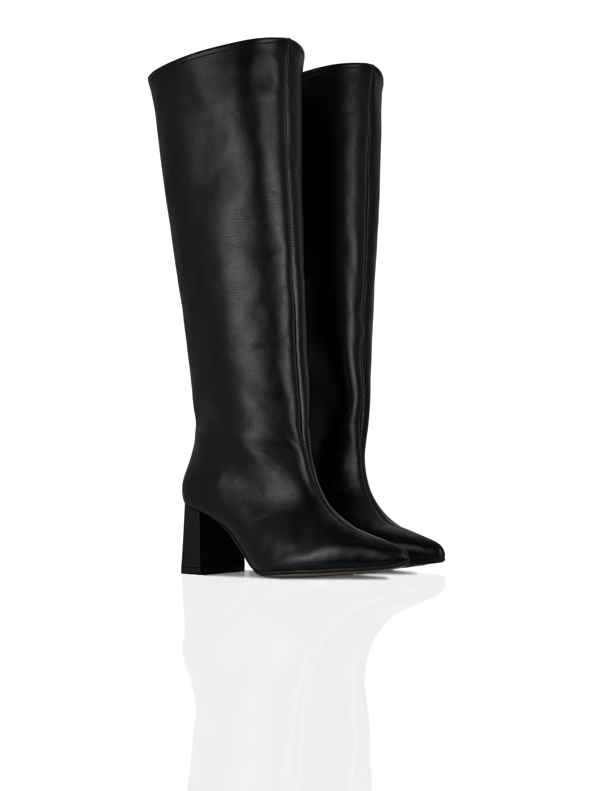 Сезон: Весна/Осінь Зовнішній матеріал: Наппа - натуральна шкіра зі збереженням лицьовій поверхні, м'яка, зносостійка та еластична. Попри м'якість і делікатність матеріал має високий рівень міцності і надійності. Підкладка: Натуральна байка Устілка: Легка з піни EVA Підошва: Туніт Застібка: Без застібки Колір: Чорний Укріплений носок та задник, що стабілізує п’яту і утримує стопу Висота взуття: 45,5 см (найменший розмір) - 49,5 см (найбільший розмір) Висота підбора: 6,5 см. Відповідність розміру: Модель йде розмір на розмір