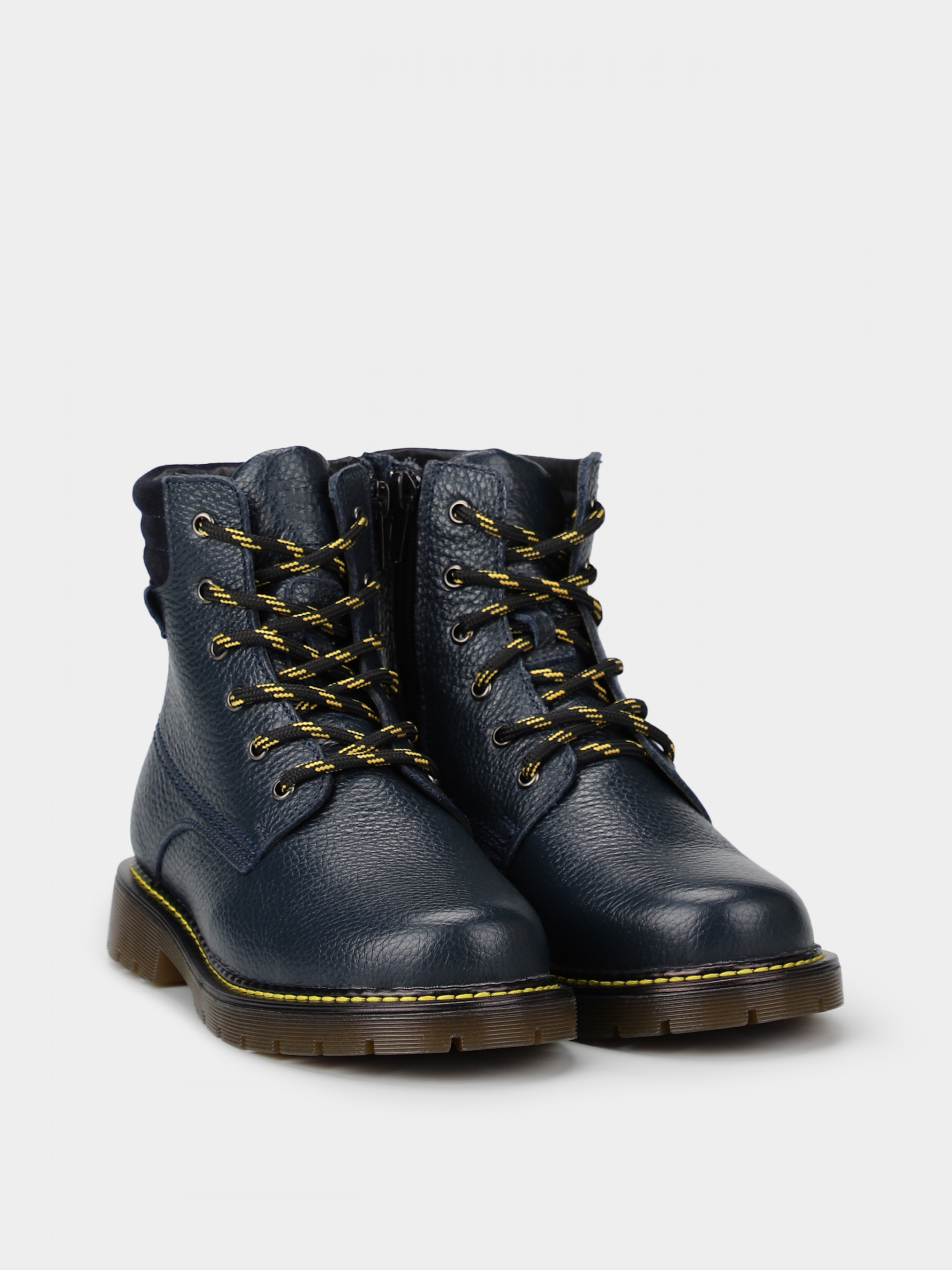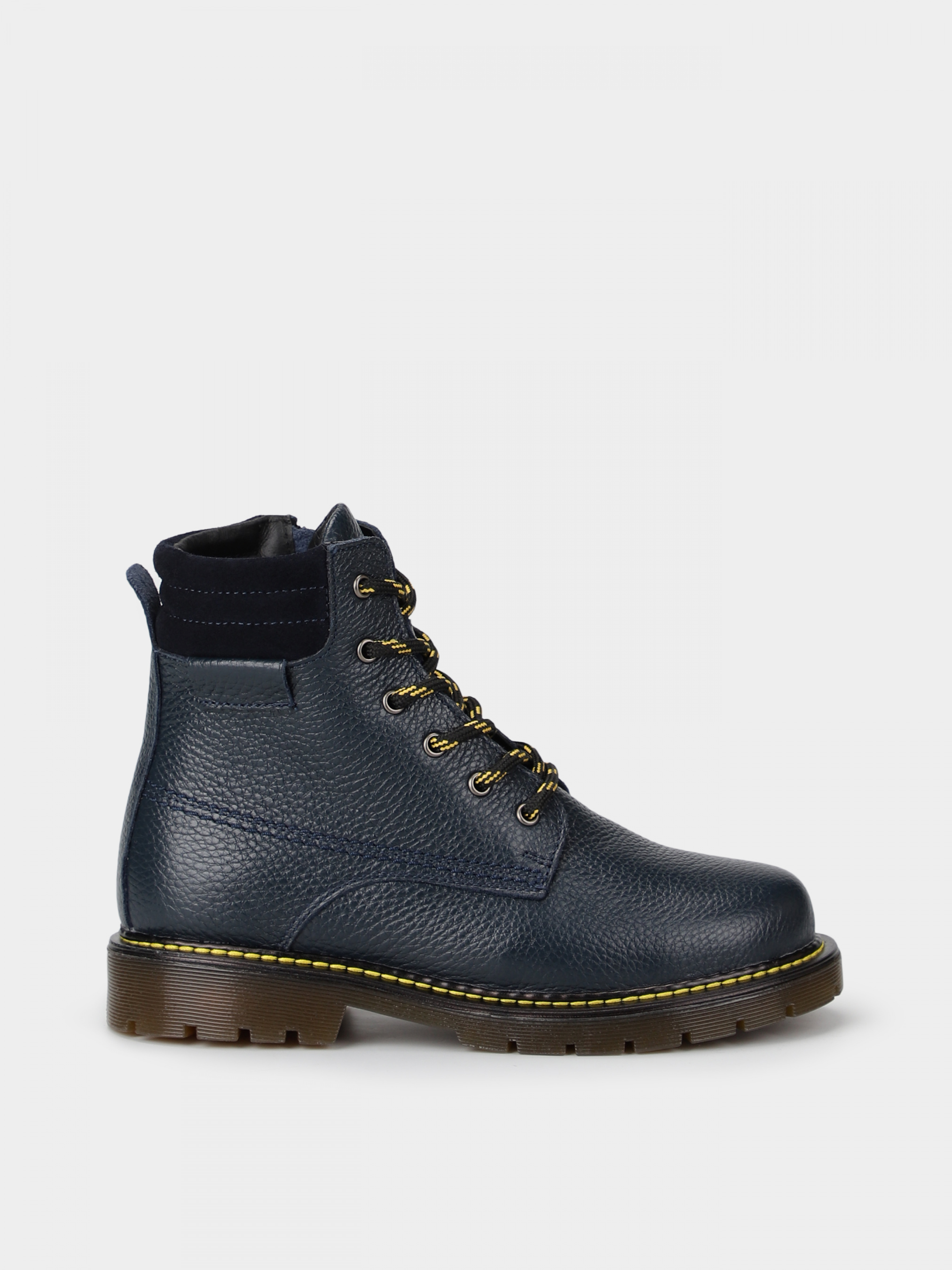 Дані черевики глибокого синього кольору однозначно додадуть затишку і стилю в холодні дні. Їх особливість не тільки в їх дизайні, але і тракторної підошві, яка забезпечує міцність і стійкість. А також в їх шнурівці, що одночасно служить елементом стилю і для зручності взуватися і роззуватися. Всередині хутро з морозостійкими характеристиками.