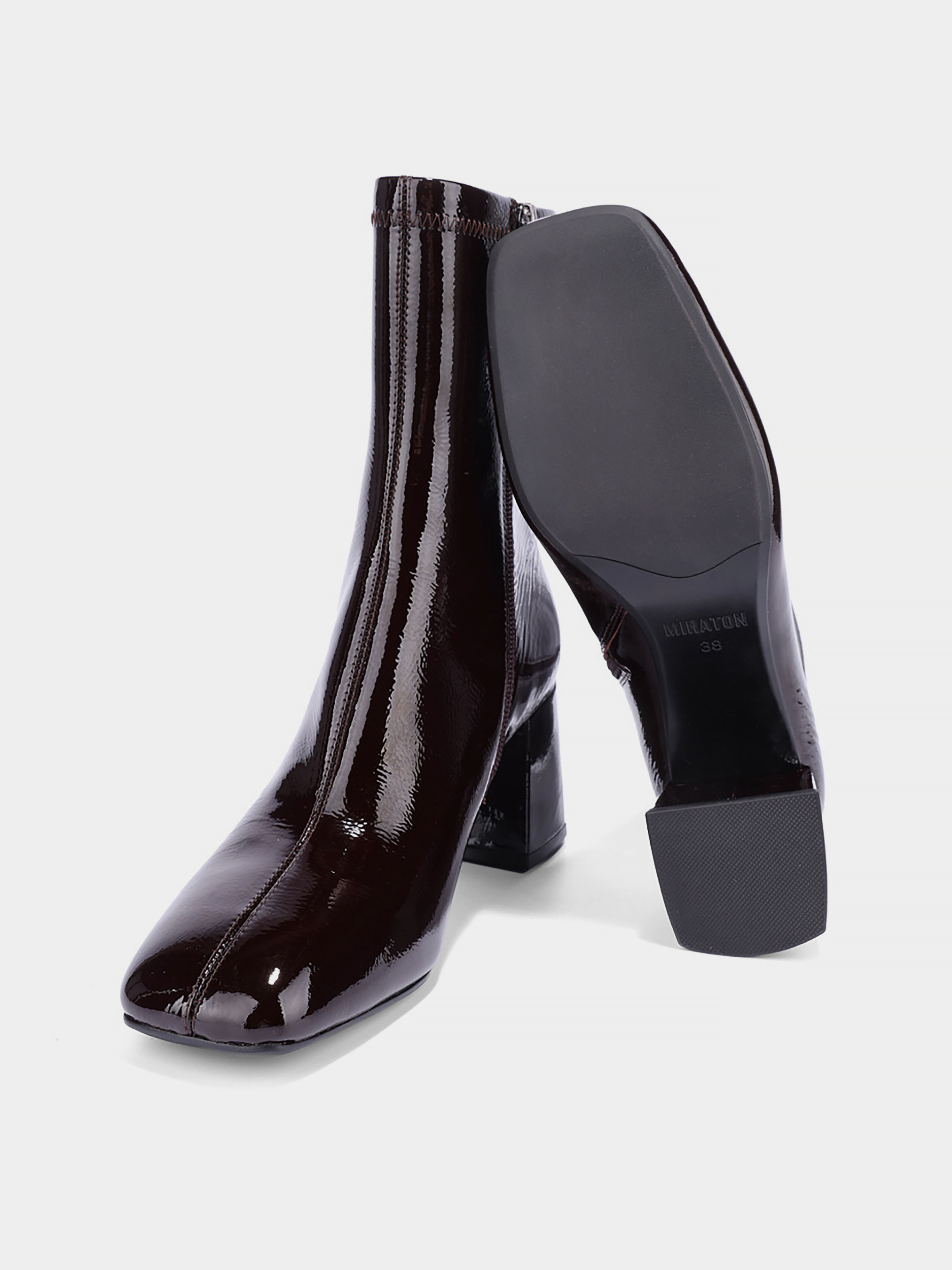 Женские ботинки MIRATON из наплака бордовые Материал: наплак. Подкладка: кожа. Бренд: MIRATON. Цвет: бордовый. Вид каблука: устойчивый. Высота каблука: 8. Cезон: осень.
