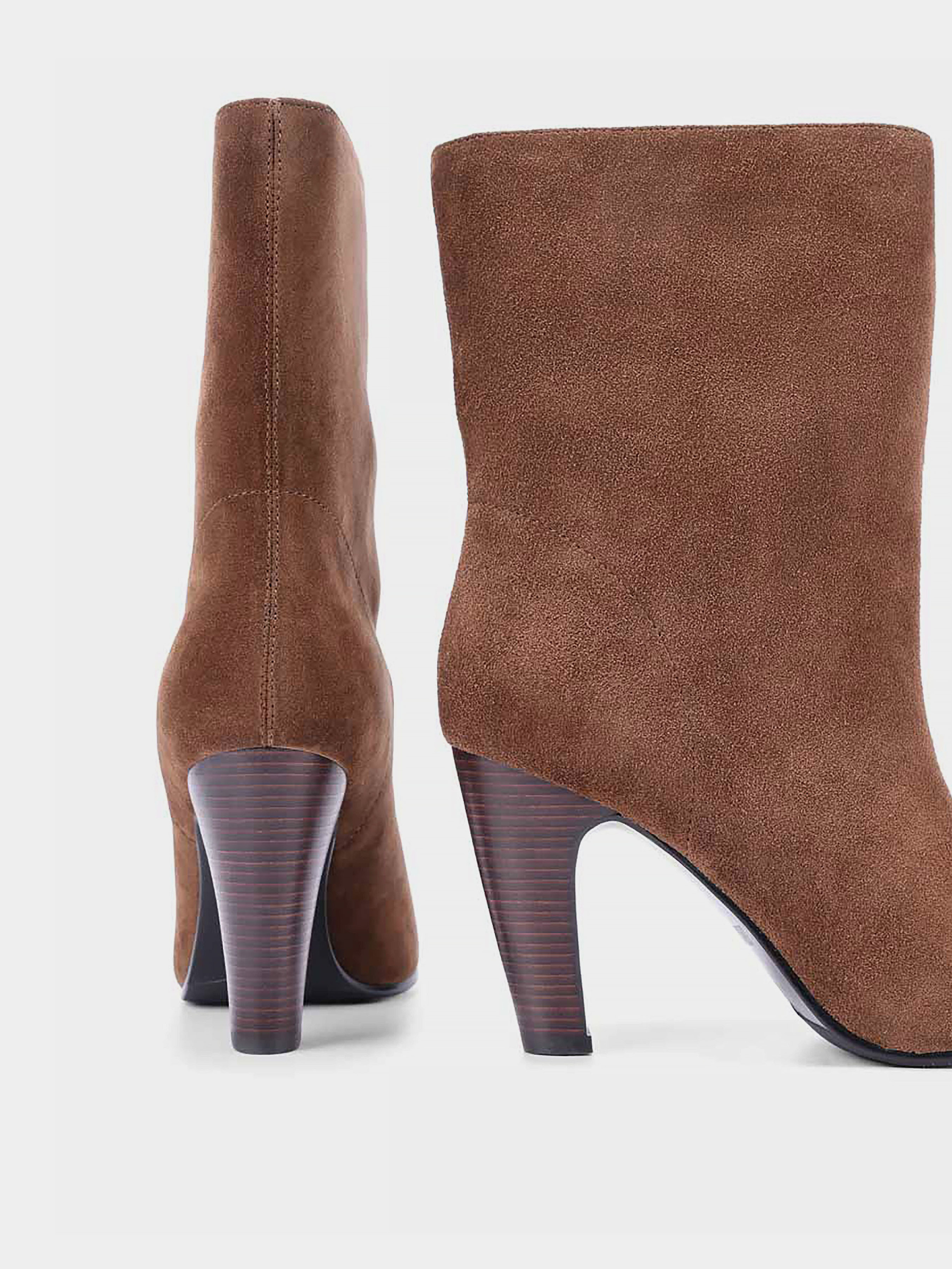 Женские ботинки MIRATON велюровые коричневые Материал: велюр. Подкладка: байка. Бренд: MIRATON. Цвет: коричневый. Вид каблука: устойчивый. Высота каблука: 9. Cезон: осень.