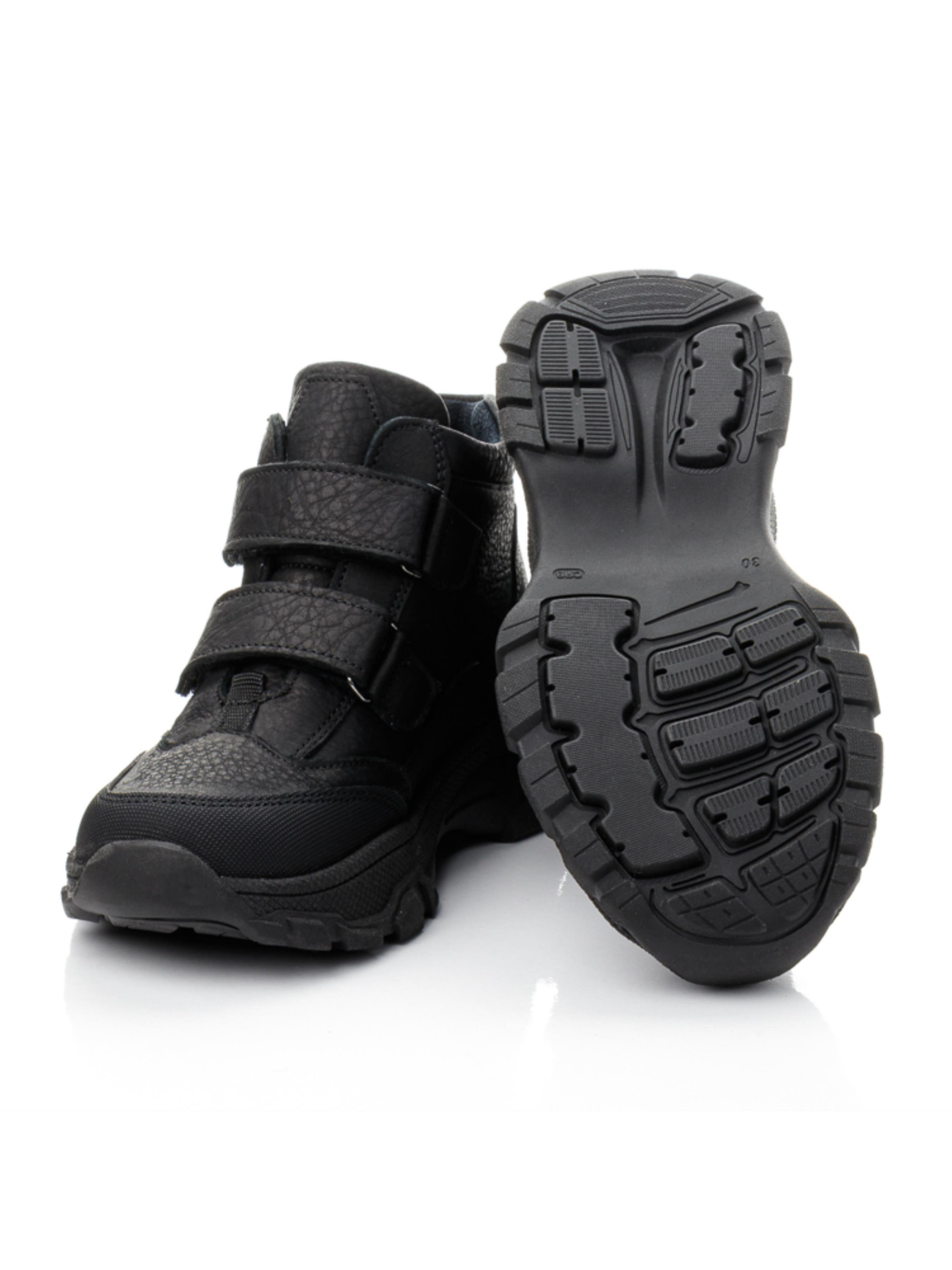 Прочные, удобные и стильные — демисезонные ботинки Papi станут надёжным выбором для активных мальчиков. Изготовленные из натуральной чёрной кожи с усиленной вставкой “неубивайка” на носке, они защищают обувь от царапин и влаги. Флисовая подкладка сохраняет тепло, поэтому модель подойдёт не только на осень и весну, но и на тёплую зиму. Удобная застёжка на две липучки обеспечивает лёгкое и плотное прилегание. Как и все модели бренда Papi, ботинки оснащены ортопедической стелькой с супинатором и жёстким задником, способствующим правильному формированию стопы. Размеры: 27–40 — отличное решение для школьников и подростков, которые ценят комфорт и долговечность.