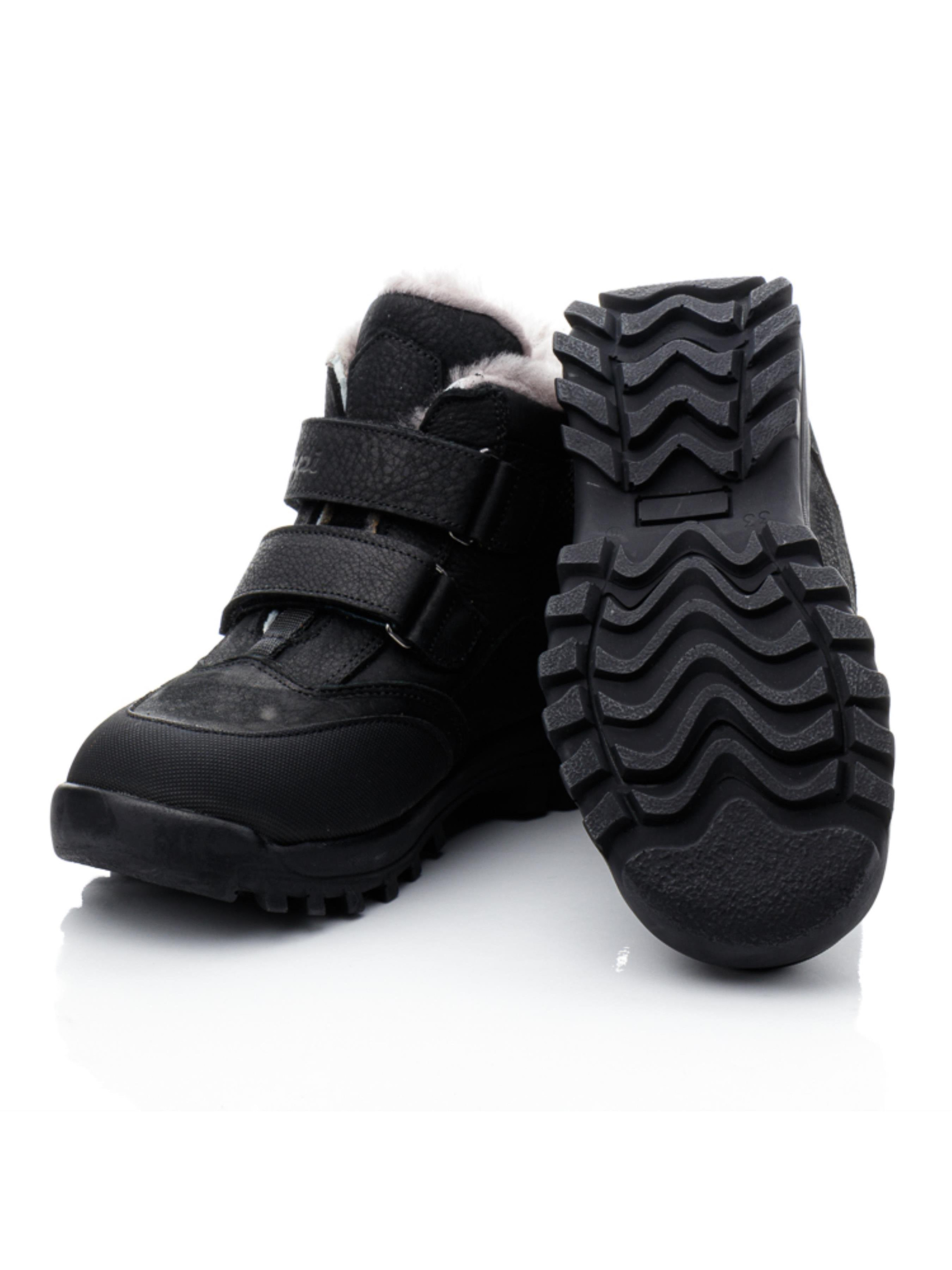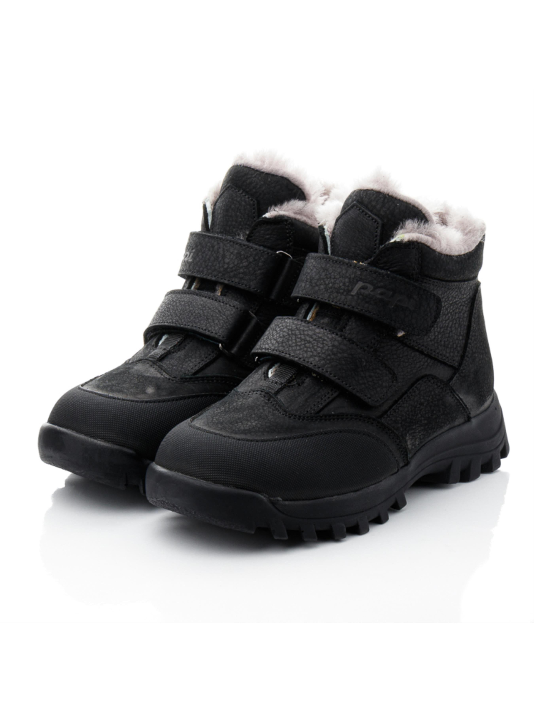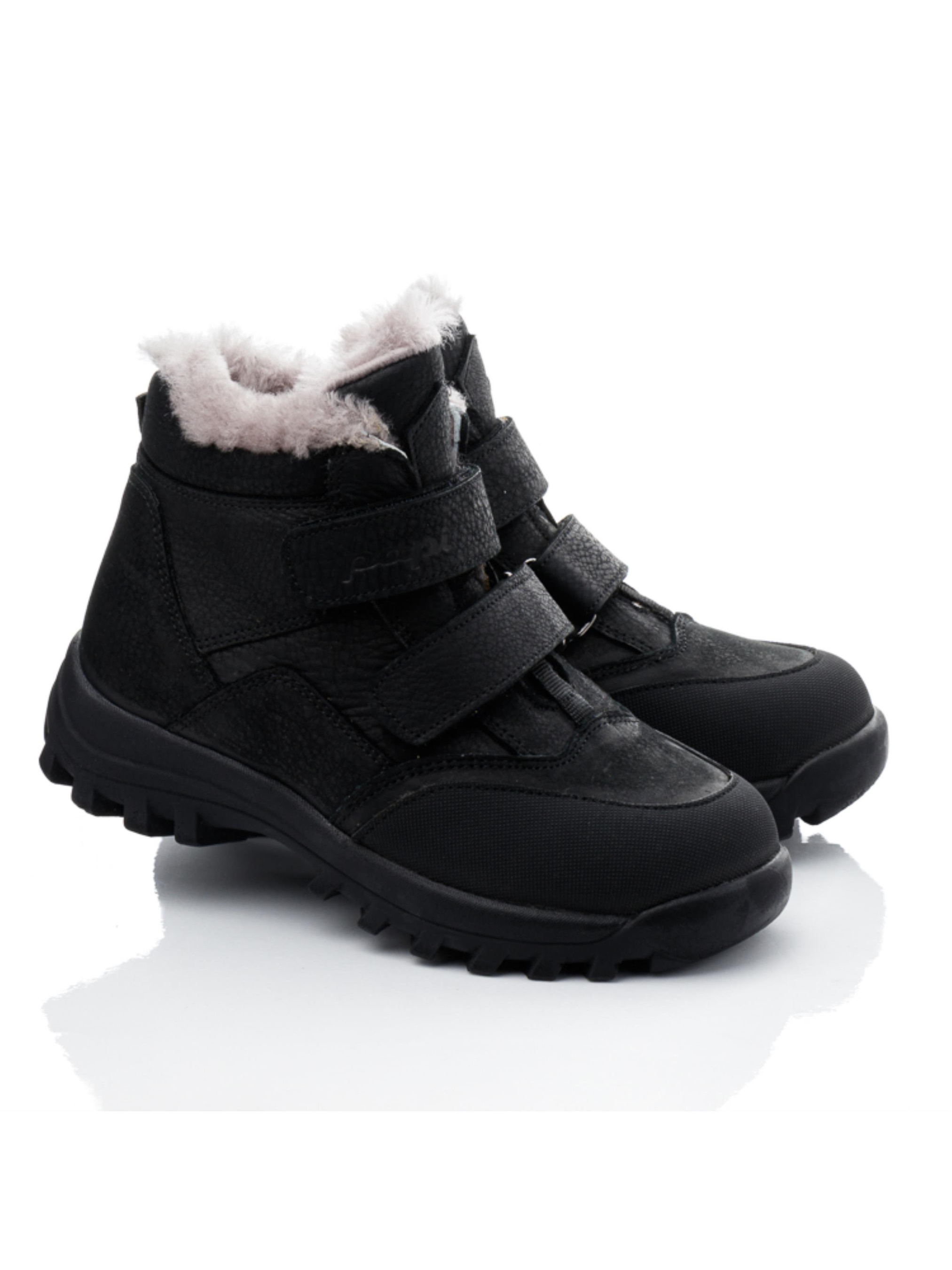 Эти добротные зимние ботинки для мальчика от турецкого бренда Papi – идеальный выбор для холодной зимы. Выполненные в классическом черном цвете, они легко сочетаются с любой зимней одеждой. Верх ботинок изготовлен из натуральной кожи, что обеспечивает долговечность и защиту от влаги. Внутри – утеплитель из натуральной цигейки, который сохраняет тепло и обеспечивает комфорт даже в самые морозные дни. Две липучки позволяют быстро и удобно надевать ботинки, что делает их идеальными для повседневного использования. Носок усилен защитой "неубивайка", обеспечивая дополнительную износостойкость и защищая от повреждений. Эта детская зимняя обувь сочетает в себе качество, комфорт и надежность, делая её идеальной для активных зимних прогулок.