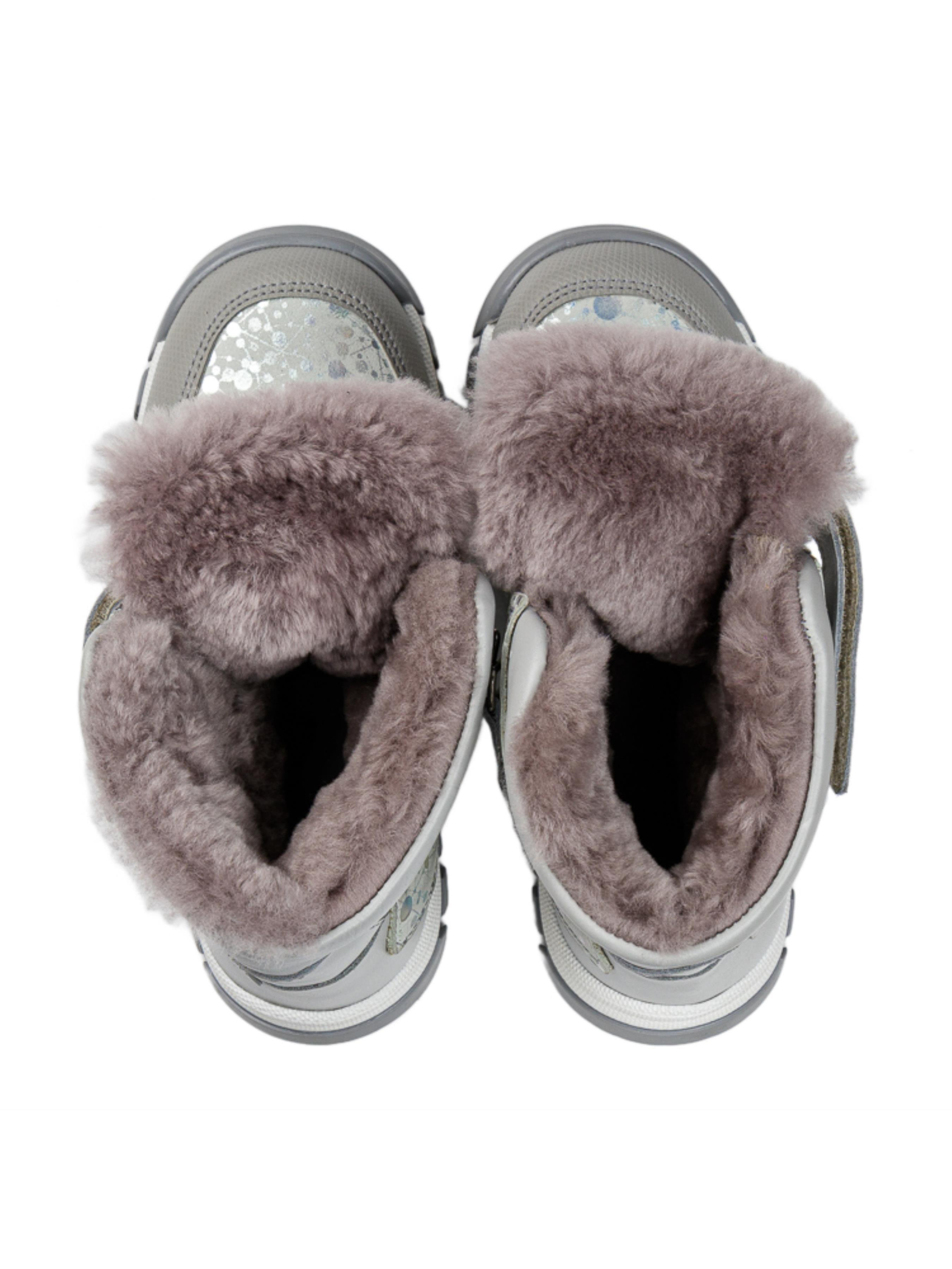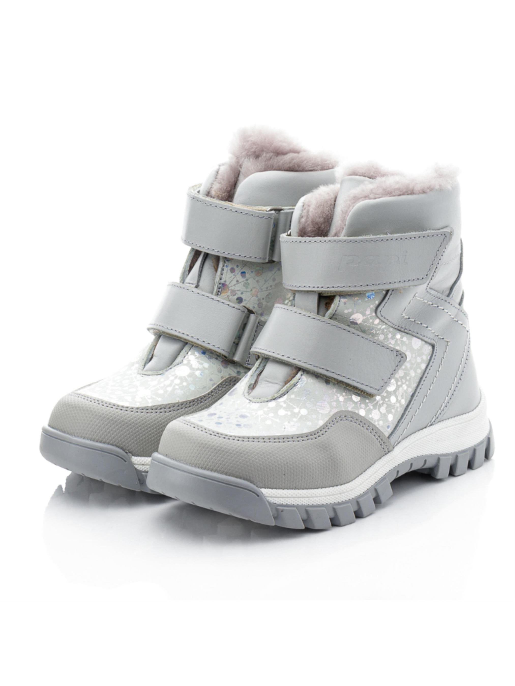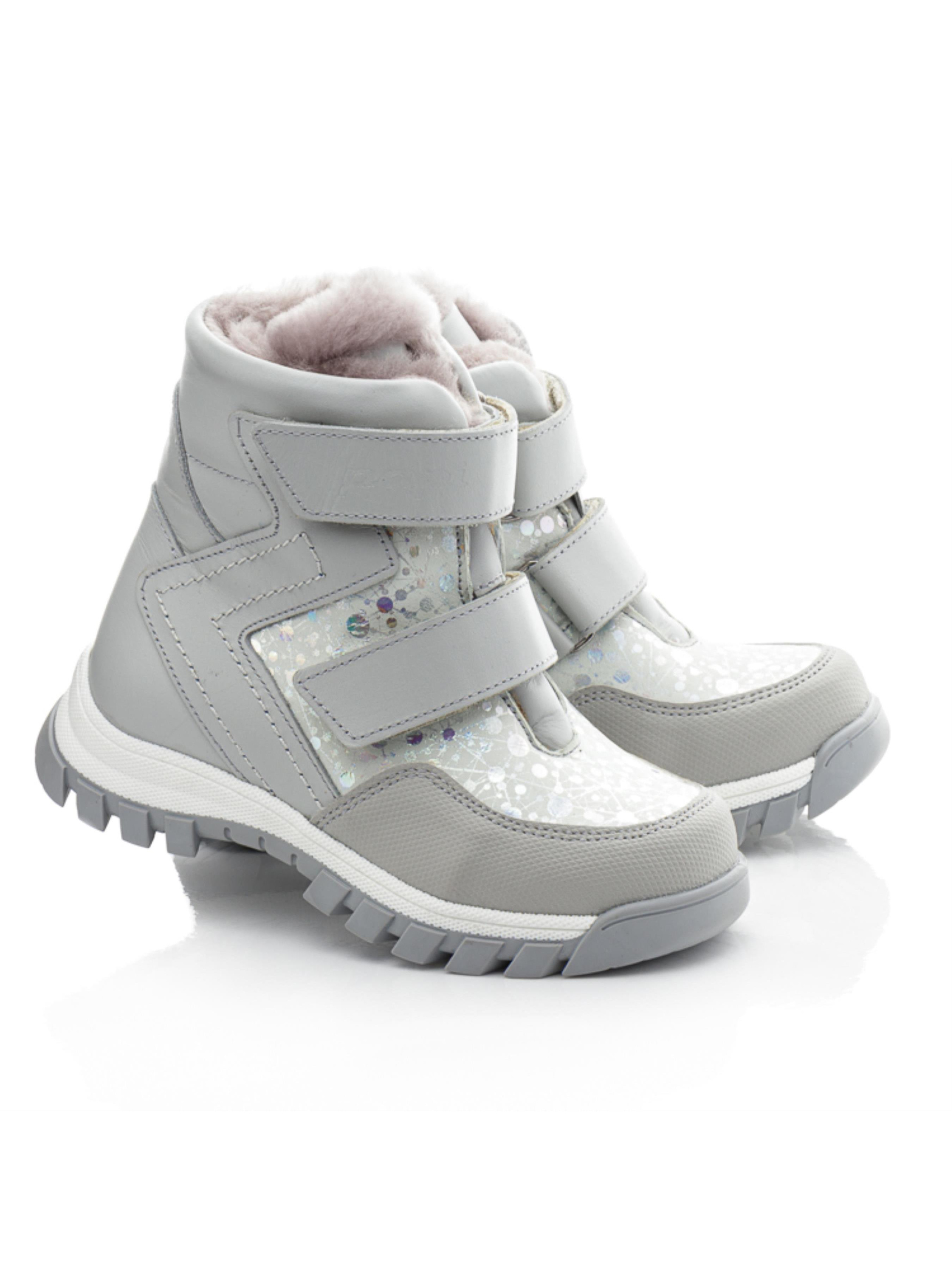 Эти очаровательные детские зимние ботинки для девочек от турецкого бренда Papi выполнены в нежном сером цвете с блестящими вставками, которые придают модели стильный и яркий вид. Изготовленные из натуральной кожи в сочетании с натуральным нубуком, они обеспечивают долговечность и удобство в использовании. Внутренняя подкладка из натуральной цигейки сохраняет тепло, гарантируя комфорт даже в морозные дни. Две липучки позволяют легко надевать и снимать ботинки, обеспечивая надежную фиксацию на ноге ребенка. Усиленный носок "неубивайка" защищает ботинки от износа и повышает их прочность. Прочная рельефная подошва гарантирует устойчивость на зимних поверхностях, что делает эту детскую зимнюю обувь идеальной для активных прогулок.
