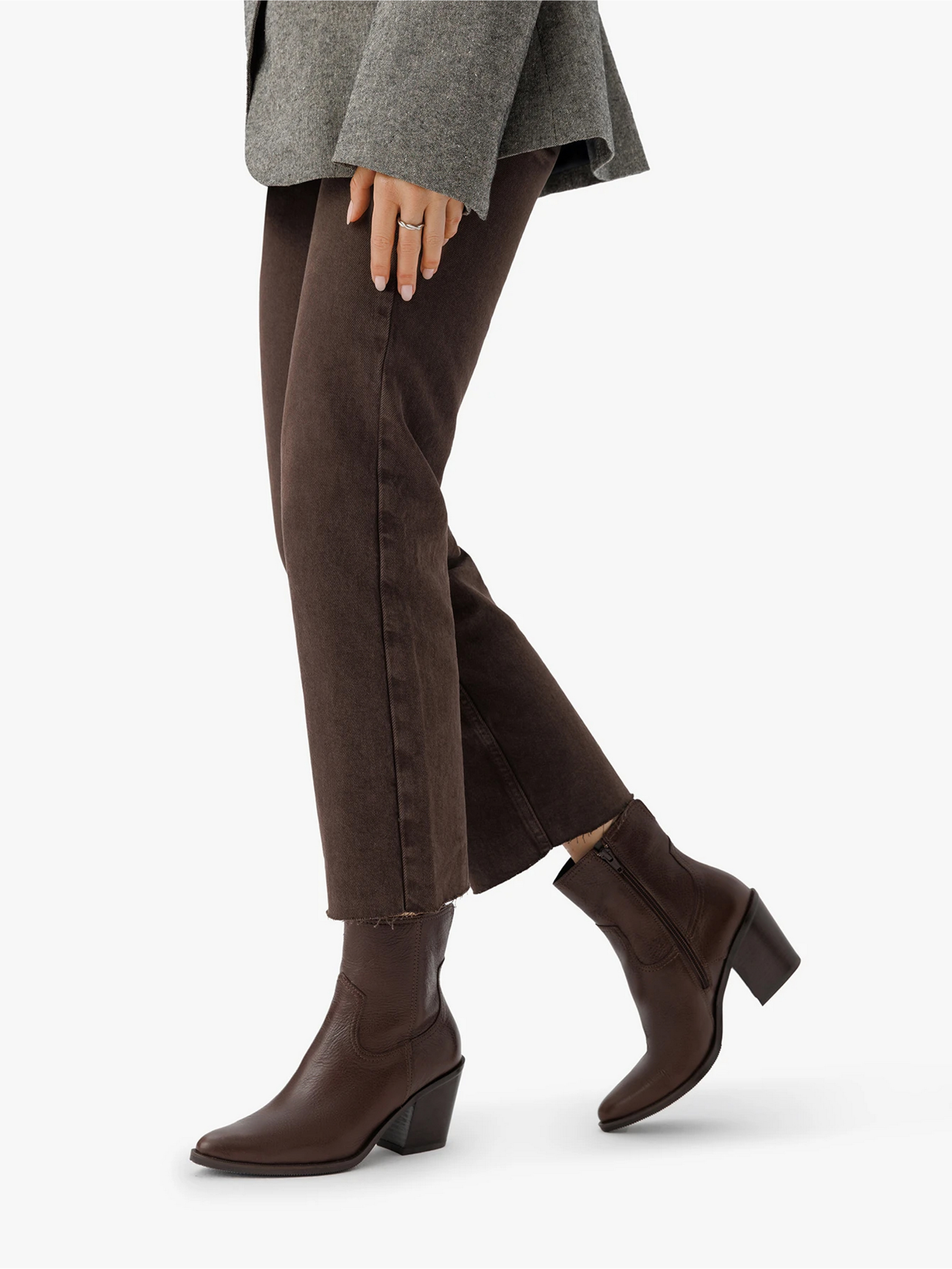 Коричневые женские ботинки польского бренда Ryłko в стиле "казаки" поражают своей элегантностью и комфортом. Изготовлены из высококачественной натуральной кожи, они имеют блочный каблук высотой 7,5 см, который придает стройности силуэт и обеспечивает устойчивость. Внутри натуральная кожа. Благодаря технологии R.SILENCE обувь имеет гибкие кончики каблука, которые гасят вибрации и уменьшают шум, улучшая комфорт во время ходьбы. Благодаря молнии по всей длине, они удобны для ежедневного ношения. Заостренный носок придает им современный, женственный вид. Этот фасон к лодыжке идеально подходит как для работы, так и для вечернего выхода. Подходят на стандартную (среднюю) полноту стопы. Чтобы правильно выбрать размер, обязательно используйте размерную сетку RYŁKO EU: 35-23,3 см; 36-24 см; 36,5-24,3 см; 37-24,7 см; 37,5-25 см; 38-25,3 см; 38,5-25,7 см; 39-26 см; 39,5-26,3 см; 40-26,7 см; 40,5-27 см; 41—27,3 см; 42-28 см.