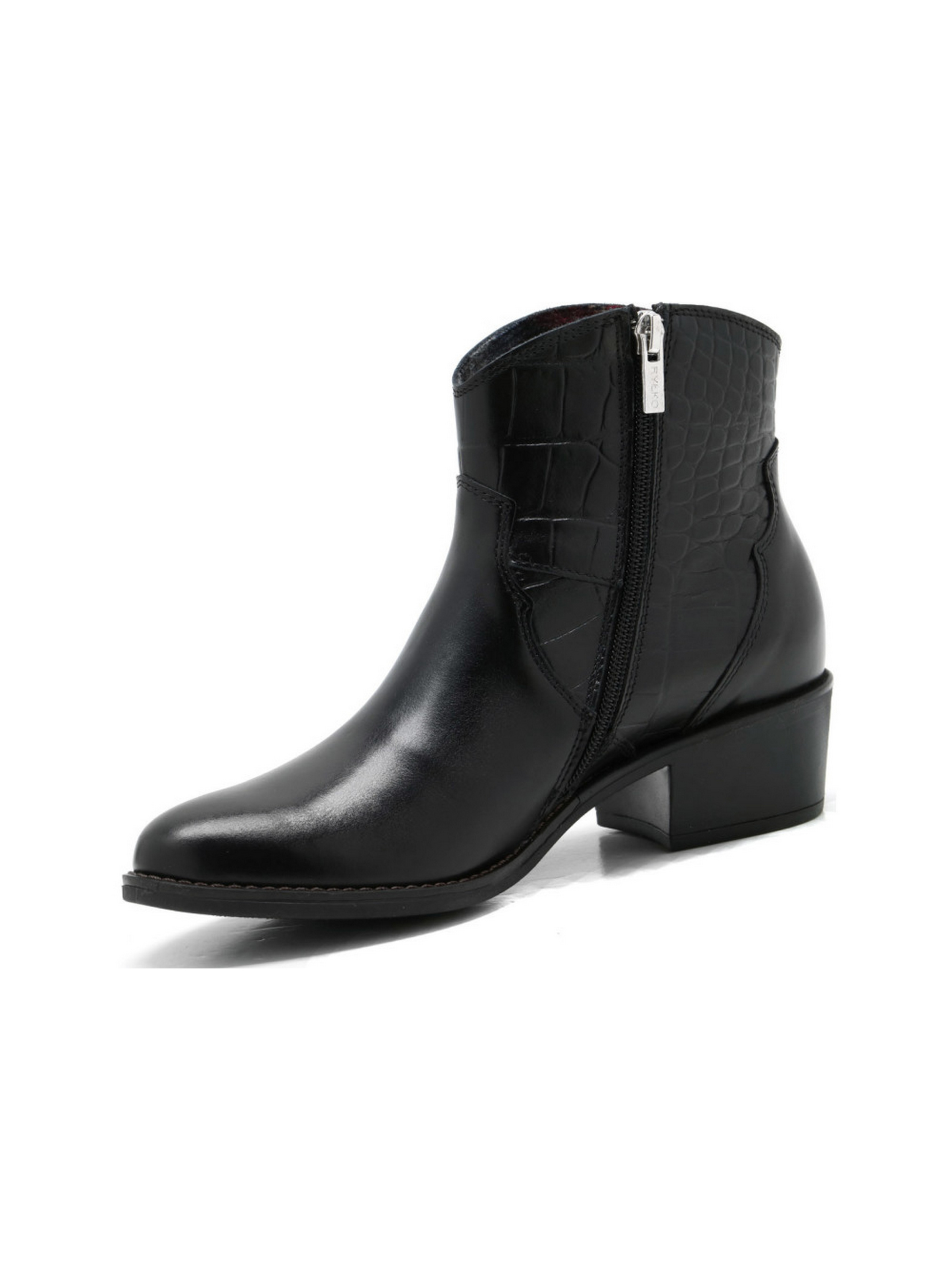 Черные демисезонные ботинки RYŁKO в ковбойском стиле из серии #RKO. Модель изготовлена из лицевой кожи высокого качества, подходят на стандартную (среднюю) полноту стопы. Широкий и устойчивый каблук - высотой 4,5 см, на молнии с внутренней стороны. Состав модели - Верх: натуральная кожа/Подкладка: текстиль/Стелька: натуральная кожа/Подошва: термоэластопласт (ТЭП)/Тип каблука: кирпичик/Вид носовой части: круглая/Застежка: молния. Размерная сетка RYŁKO EU: 35-23,3 см. 36-24 см. 36,5-24,3 см. 37-24,7 см. 37,5-25 см. 38-25,3 см. 38,5-25, 7 см. 39-26 см. 39,5-26,3 см. 40-26,7 см. 40,5-27 см. 41-27,3 см. 42-28 см.