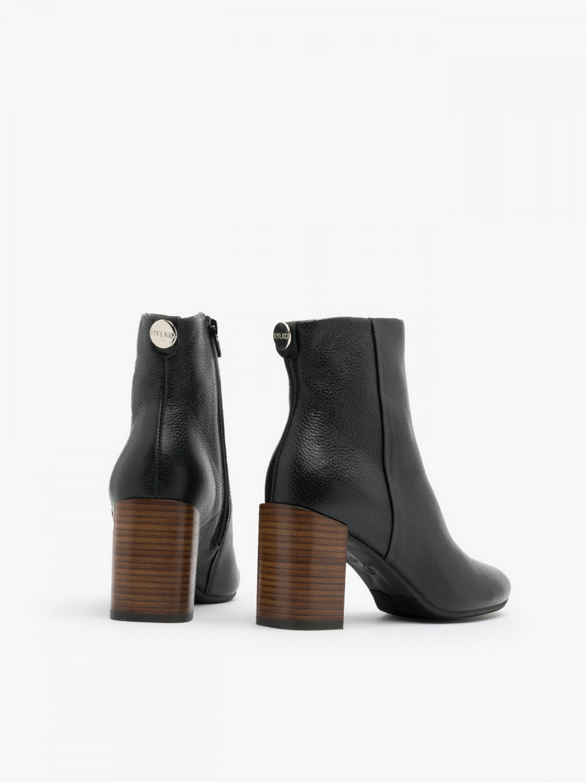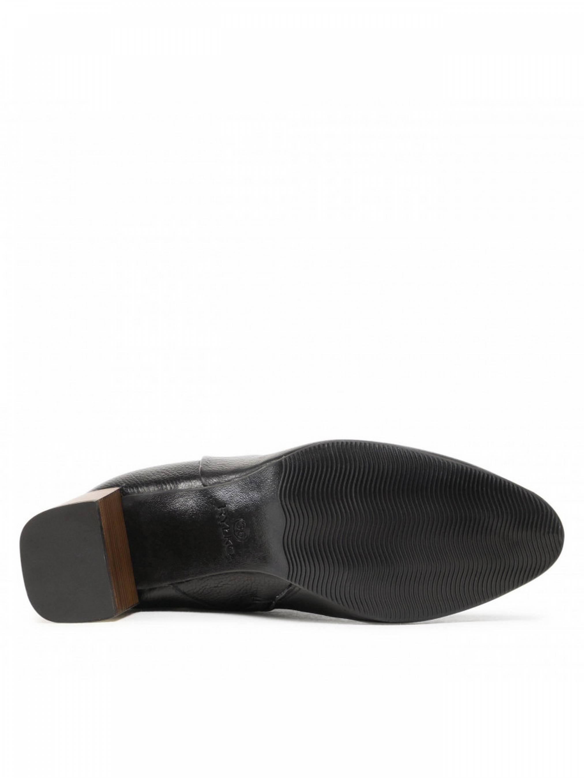 Демисезонные ботильоны RYŁKO черного цвета. Модель изготовлена из лицевой кожи высокого качества, подходят на стандартную (среднюю) полноту стопы. Широкий и устойчивый каблук - высотой ~7,5 см. Плоская подошва тщательно проклеена высококачественным клеем. Состав модели - Верх: натуральная кожа/Подкладка: кожа + тканный материал/Стелька: натуральная кожа/Подошва: термоэластопласт (ТЭП)/Тип каблука: столбик/Вид носовой части: круглая/Вес: ~ 400 г./Объём верха обуви: ~ 29 – 29,8 см./Объём в лодыжке: ~ 27,2 – 27,8 см./Высота голенища: ~ 16 - 16,3 см./Застежка: молния. Размерная сетка RYŁKO EU: 35-23,3 см. 36-24 см. 36,5-24,3 см. 37-24,7 см. 37,5-25 см. 38-25,3 см. 38,5-25, 7 см. 39-26 см. 39,5-26,3 см. 40-26,7 см. 40,5-27 см. 41-27,3 см. 42-28 см.