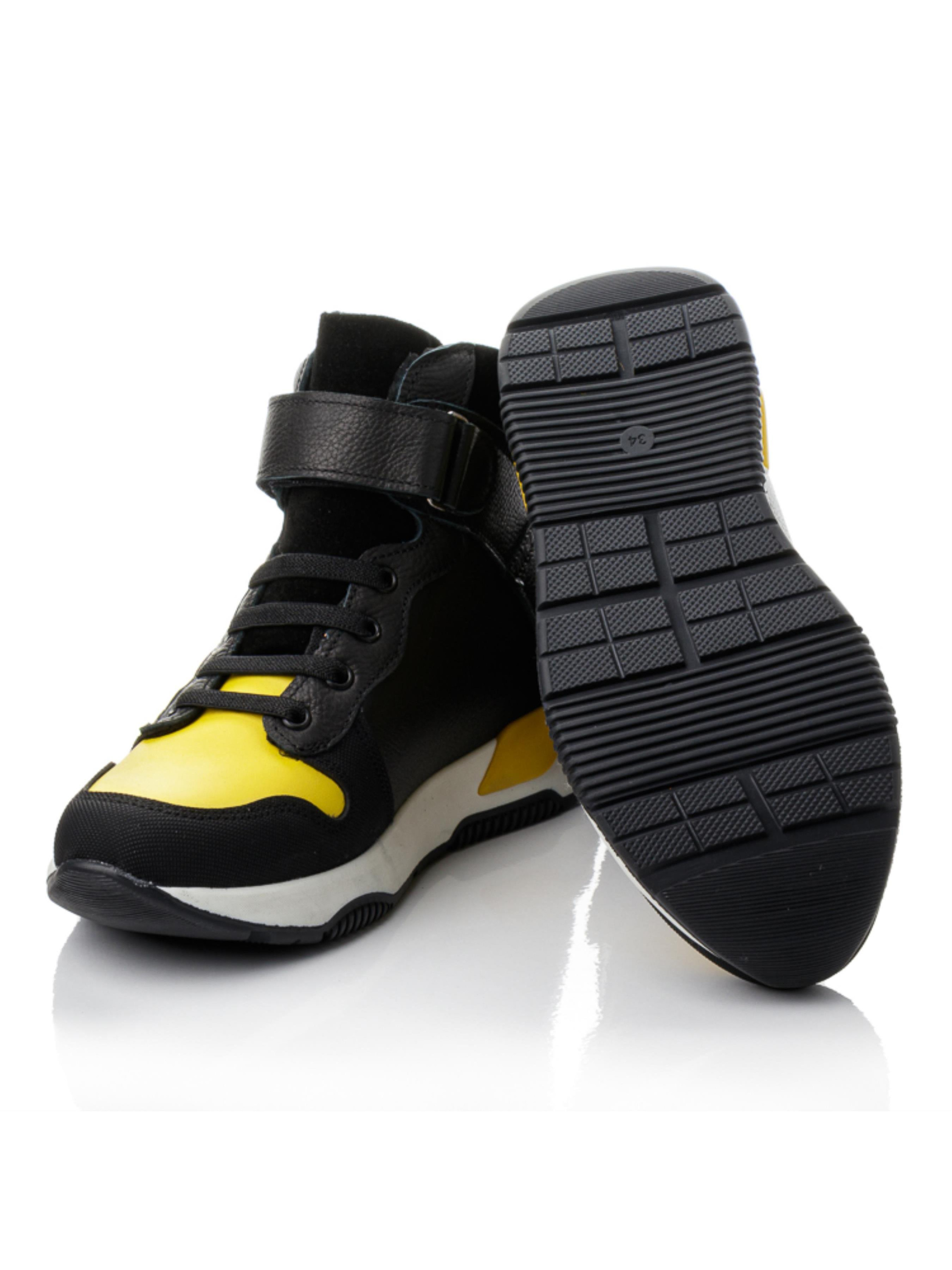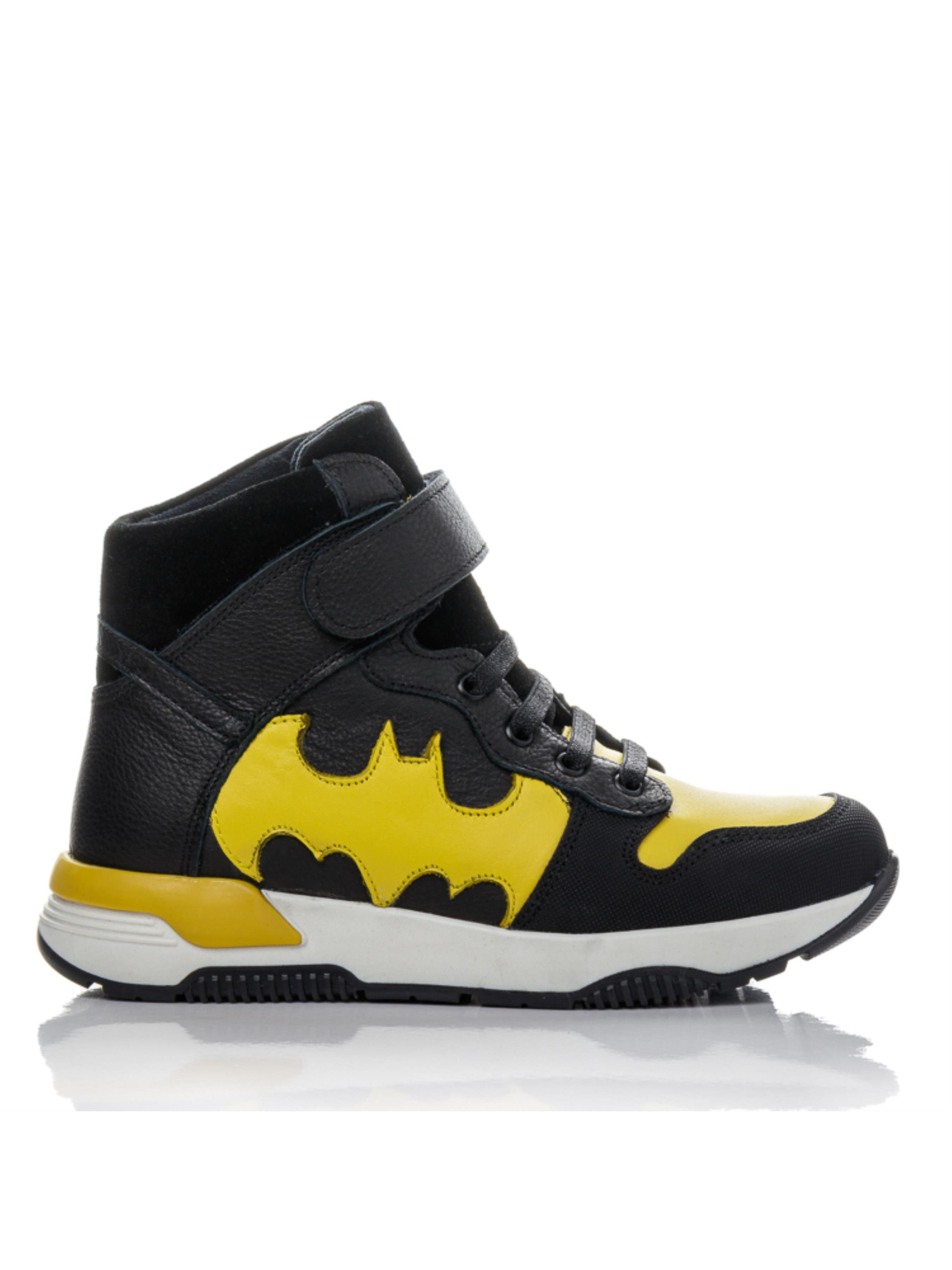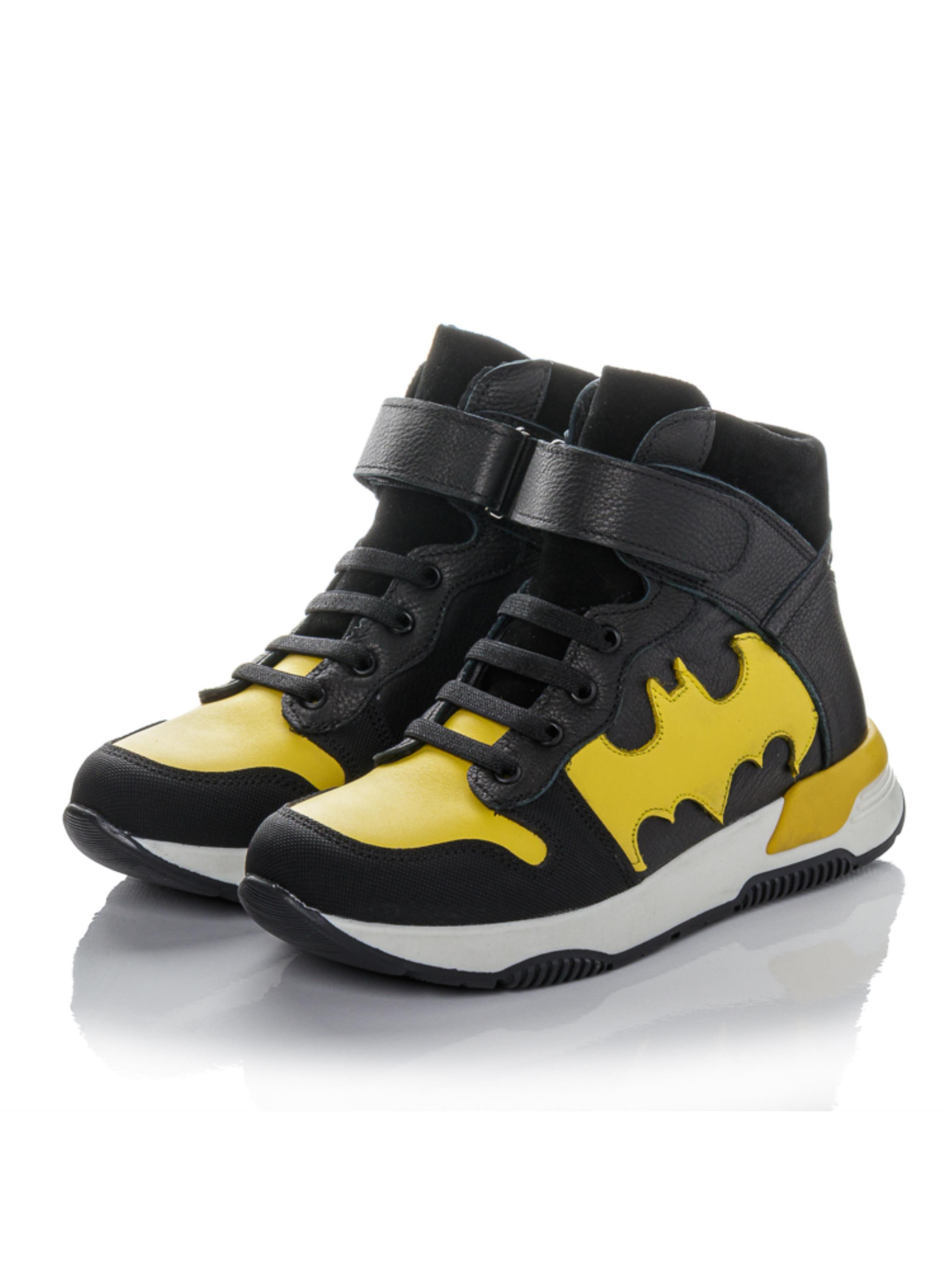Прочные, спортивные, готовые к приключениям — ботинки “Бэтманы”, созданные для активных мальчиков, которые всегда в движении. Изготовлены из натуральной чёрной кожи с контрастными жёлтыми вставками в форме супергеройского символа, эти ботинки выглядят ярко и стильно. Носок усилен материалом «неубивайка», что делает обувь устойчивой к повреждениям. Внутри — тёплый флис, анатомическая стелька с супинатором и жёсткий задник, обеспечивающие правильное развитие детской стопы. Фиксация на шнурок-резинку и липучку делает обувание простым и удобным. Эта демисезонная обувь из натуральной кожи представлена в размерах 29–38 — отличный выбор для школьников и подростков, которые любят активность и динамику.