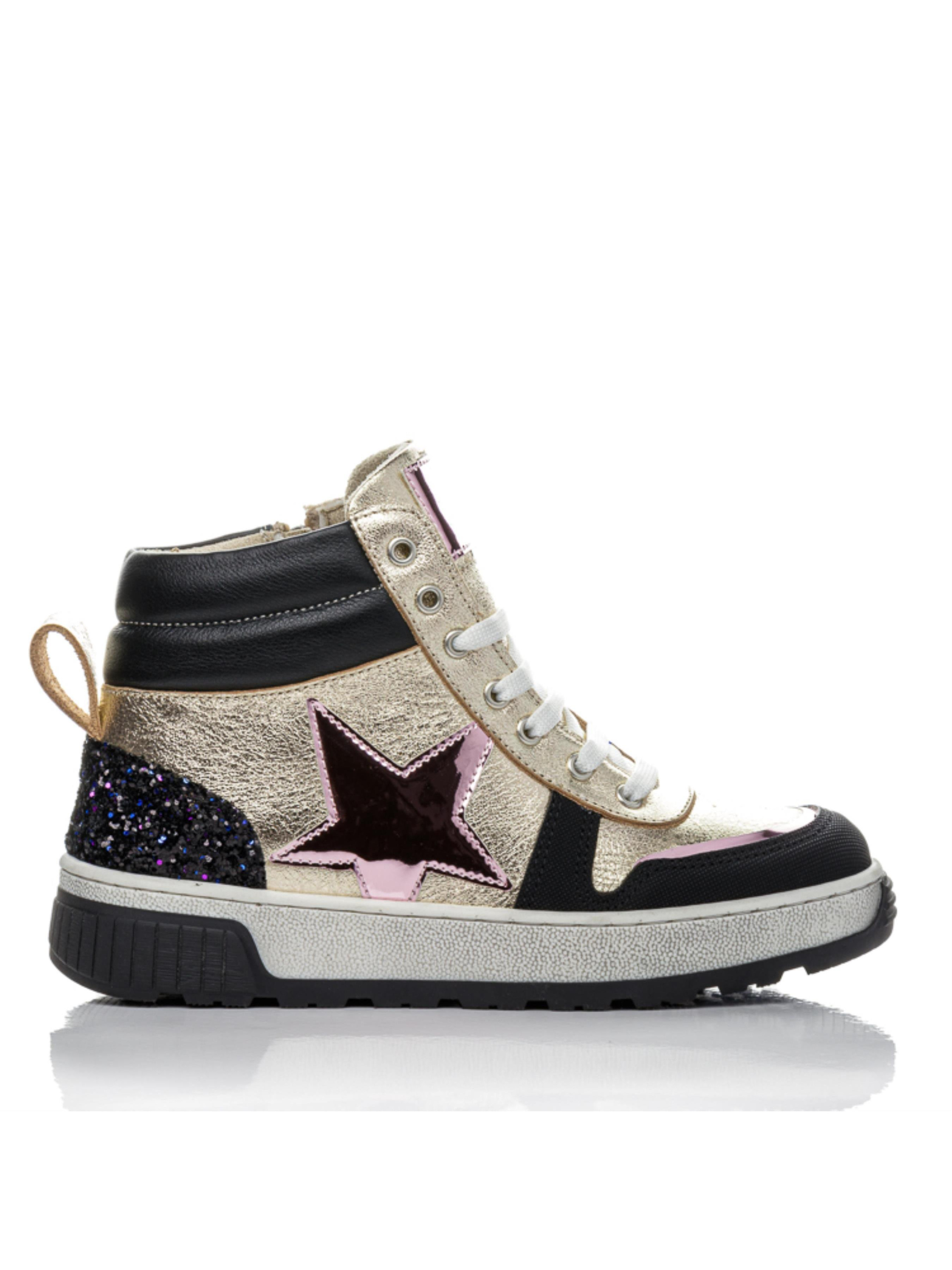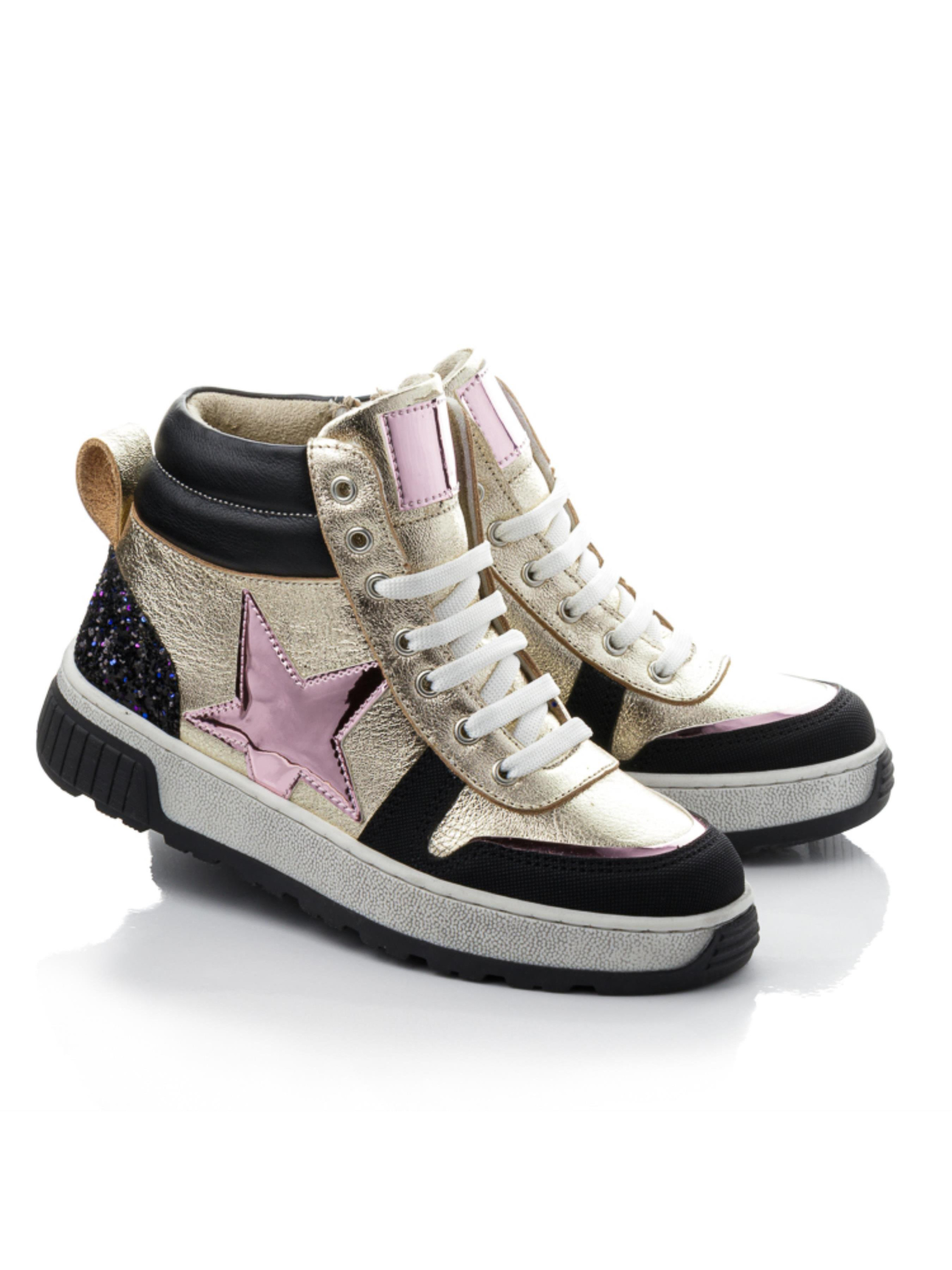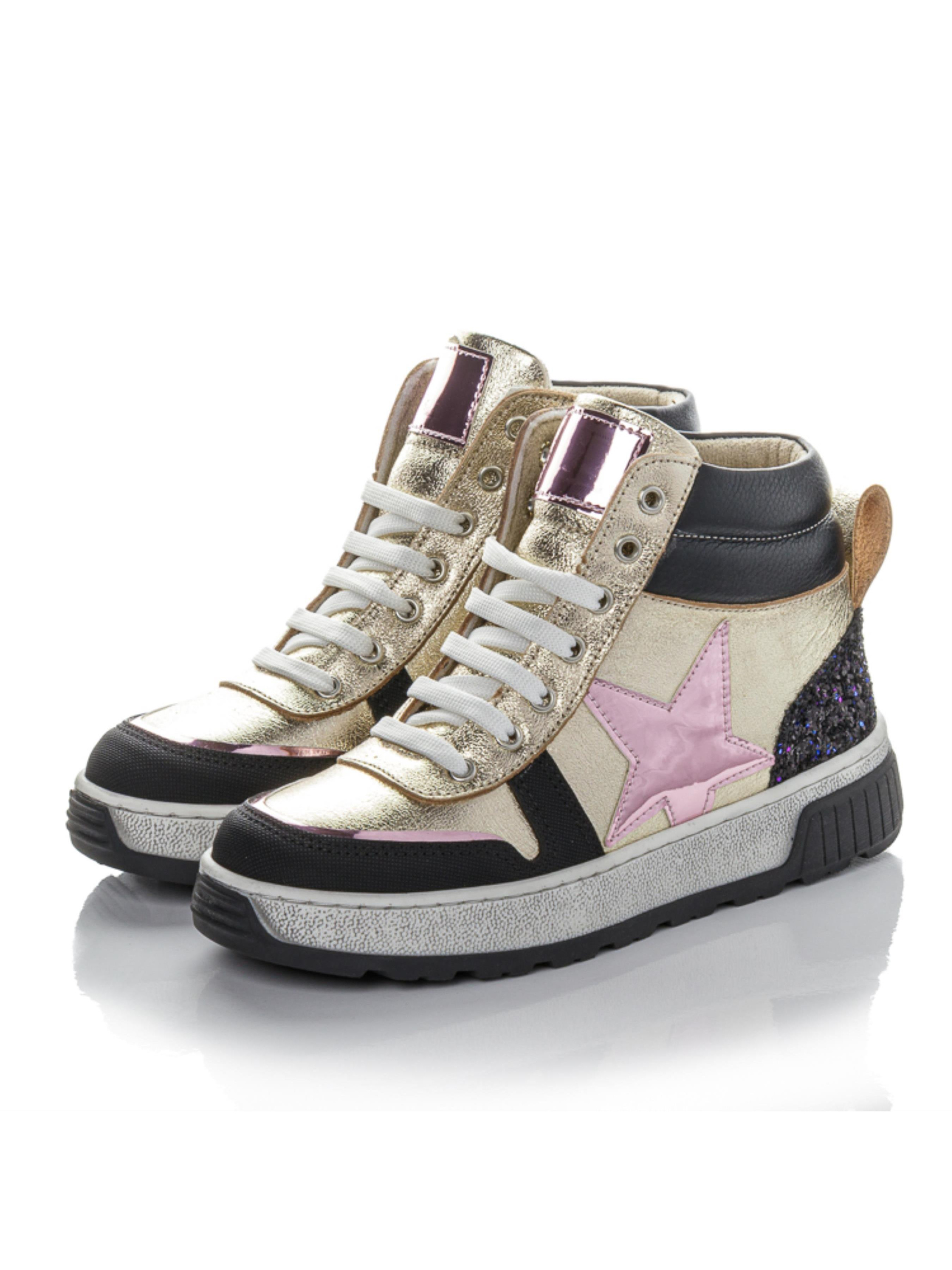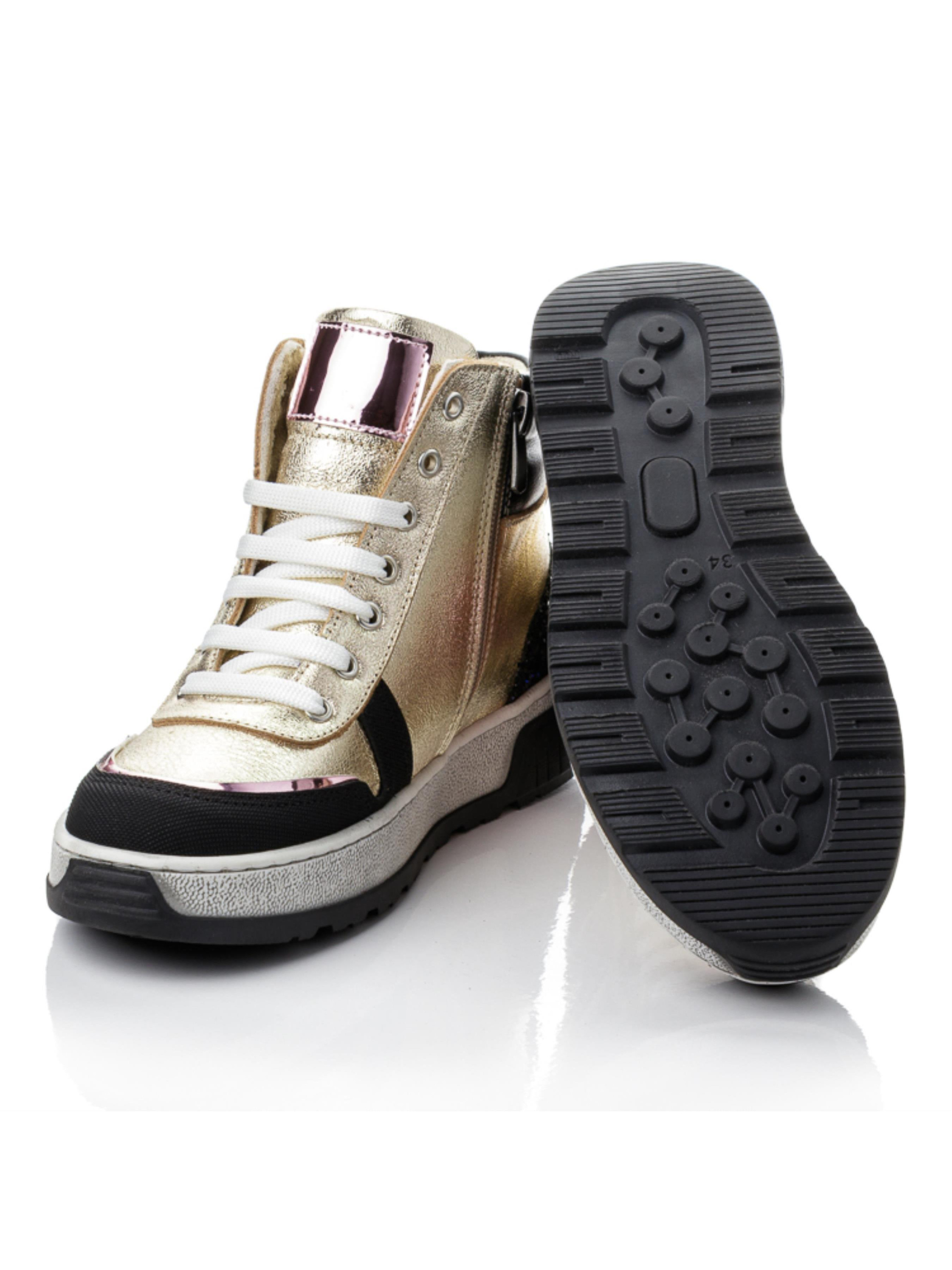 О, эта пара — настоящий вау-эффект! Детские и подростковые ботинки выполнены из натуральной кожи золотого цвета в сочетании с чёрными элементами и розовой звездой, создающей оригинальный акцент. Носок усилен прочным материалом — «неубивайкой», устойчивой к повреждениям. Внутри — анатомическая стелька с супинатором и жёсткий задник, поддерживающие правильное положение стопы. Массивная подошва обеспечивает устойчивость и современный вид. Эта демисезонная обувь из натуральной кожи выпускается в размерах 32–39 — отличный выбор для девочек, подростков и их мам, которые любят яркость и надёжность каждый день.