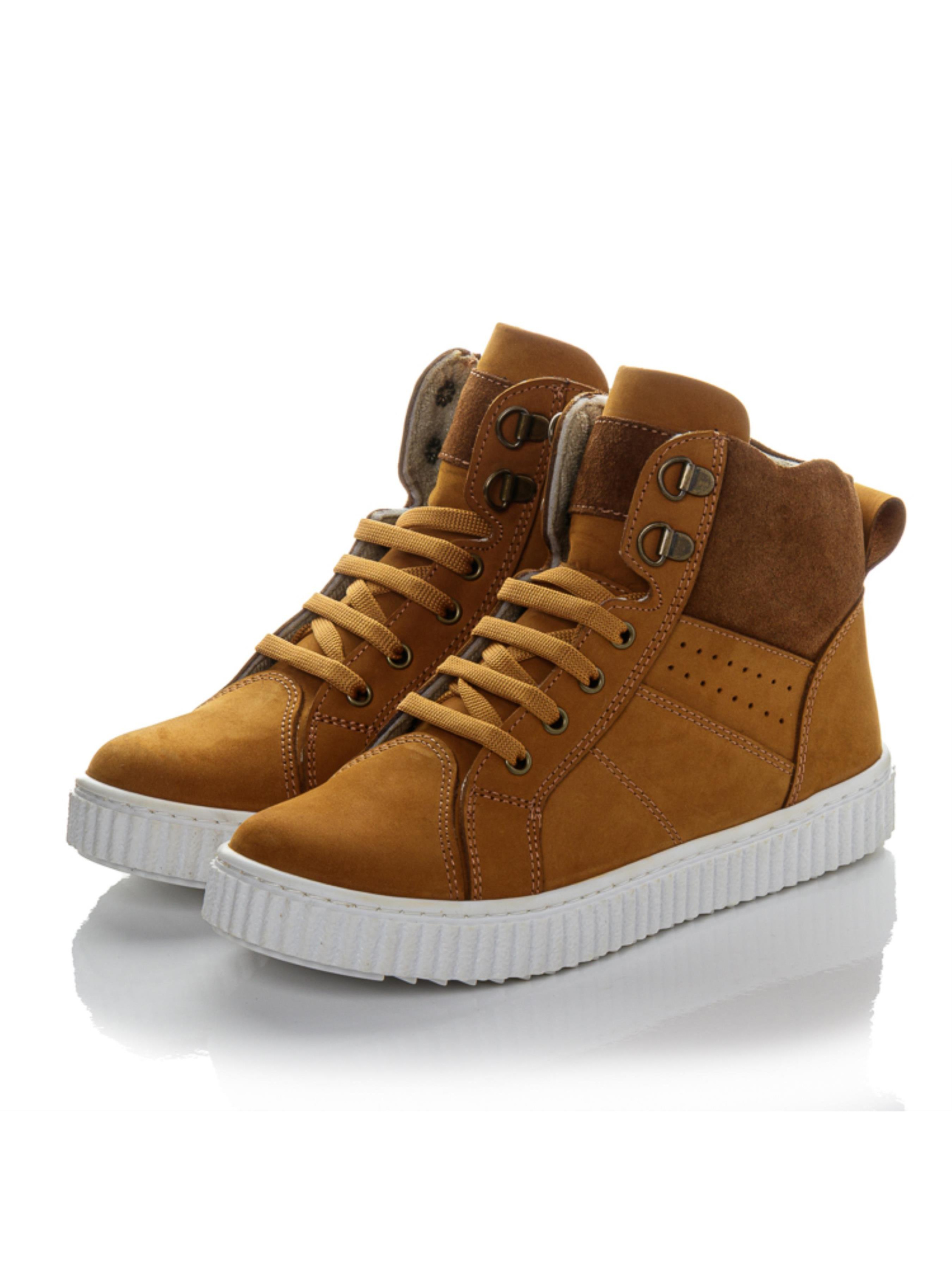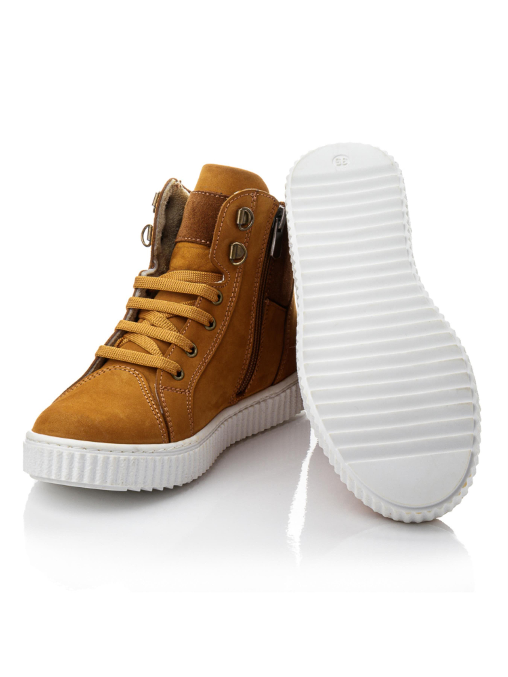 Тёплые, уютные, универсальные — подростковые ботинки, созданные для повседневного стиля. Изготовлены из натурального нубука карамельного цвета, они сочетают элегантность и практичность. Фиксация на шнуровку и боковую молнию обеспечивает плотную посадку и лёгкость обувания. Внутри — мягкий флис, анатомическая стелька с супинатором и жёсткий задник, поддерживающие правильное развитие стопы. Светлая рельефная подошва добавляет лёгкости шагу и гарантирует устойчивость. Эта демисезонная обувь из натурального нубука выпускается в размерах 33–40 — отличный выбор для школьников и подростков, предпочитающих тепло, комфорт и спокойный стиль.