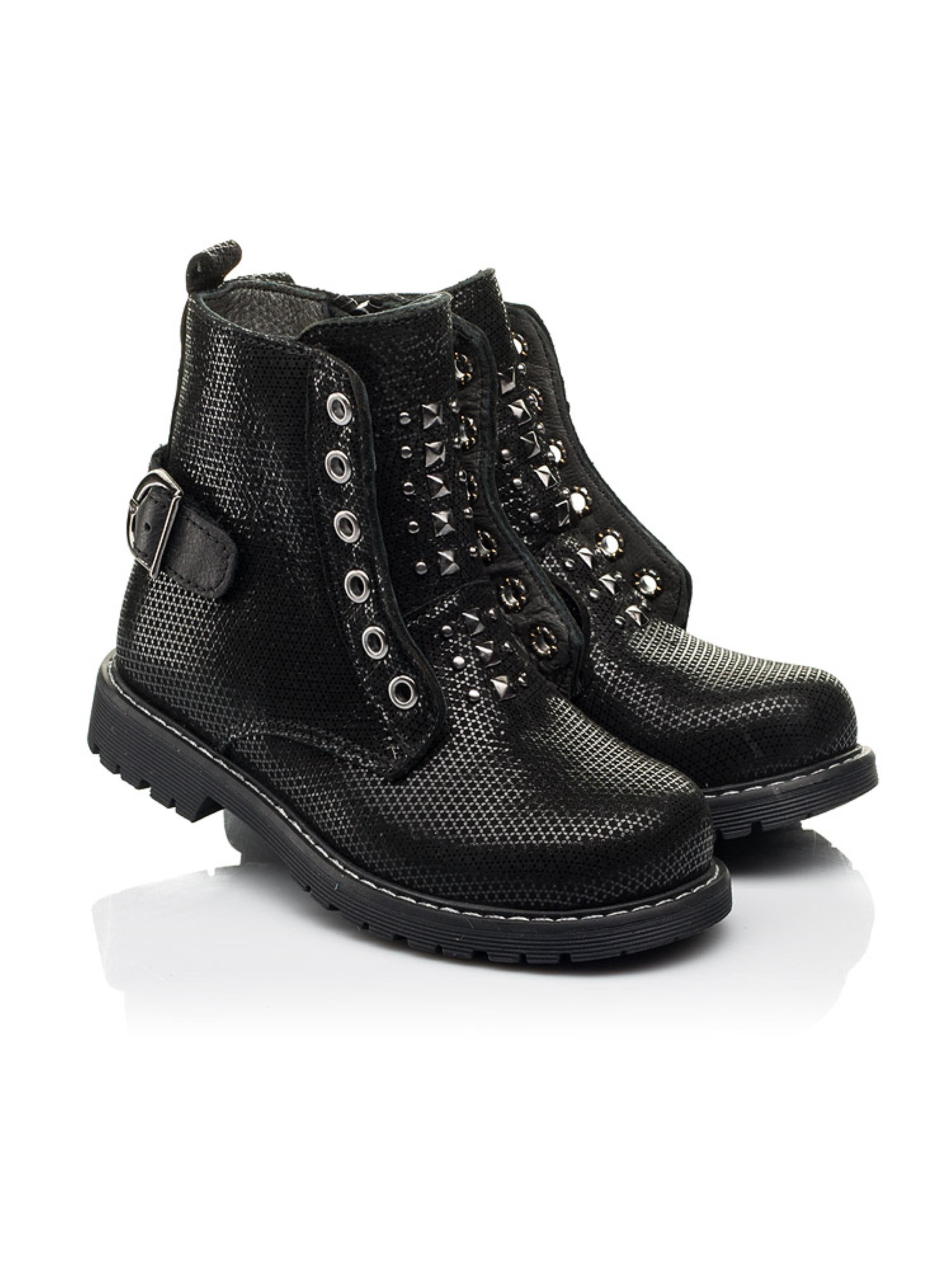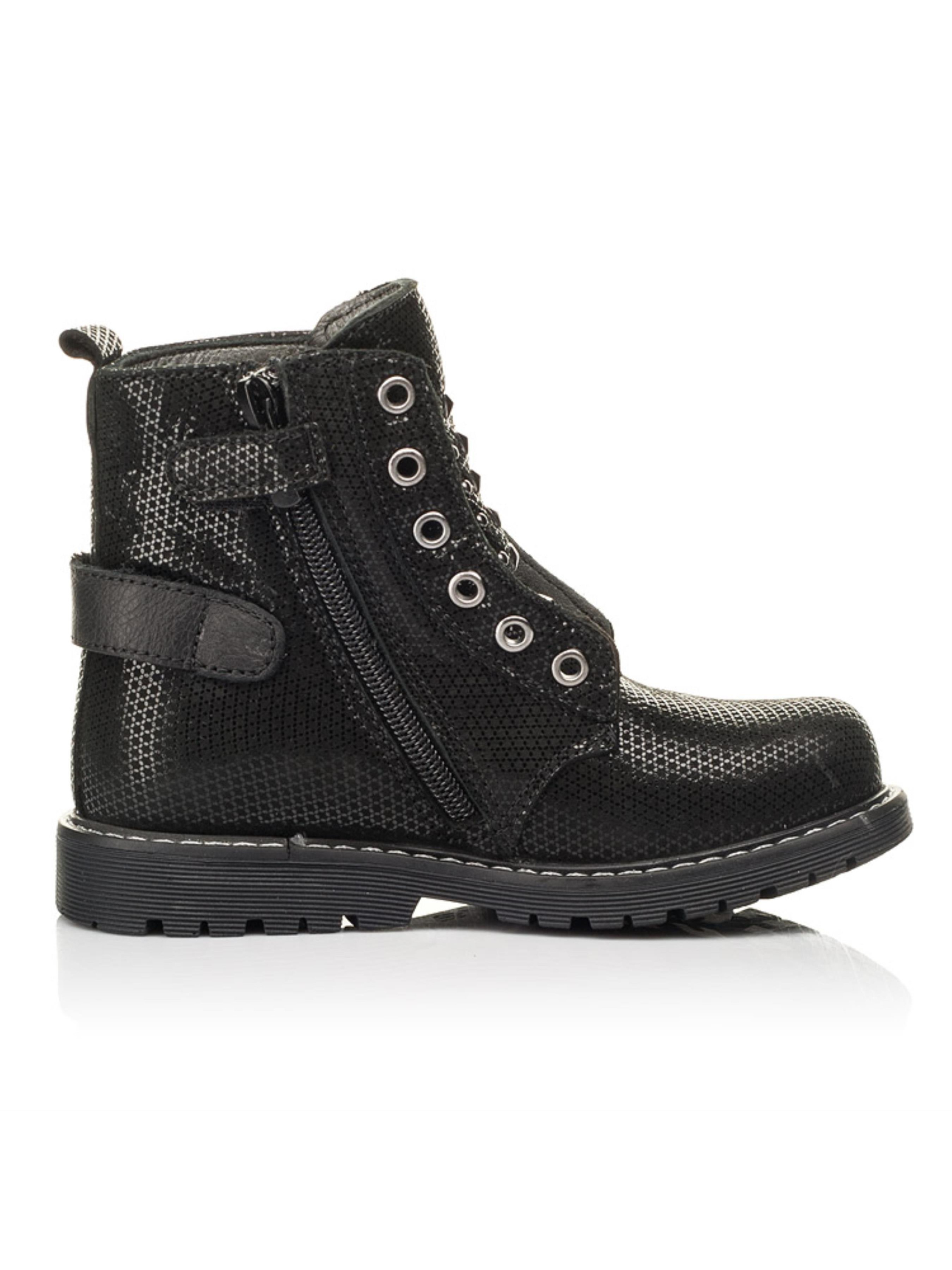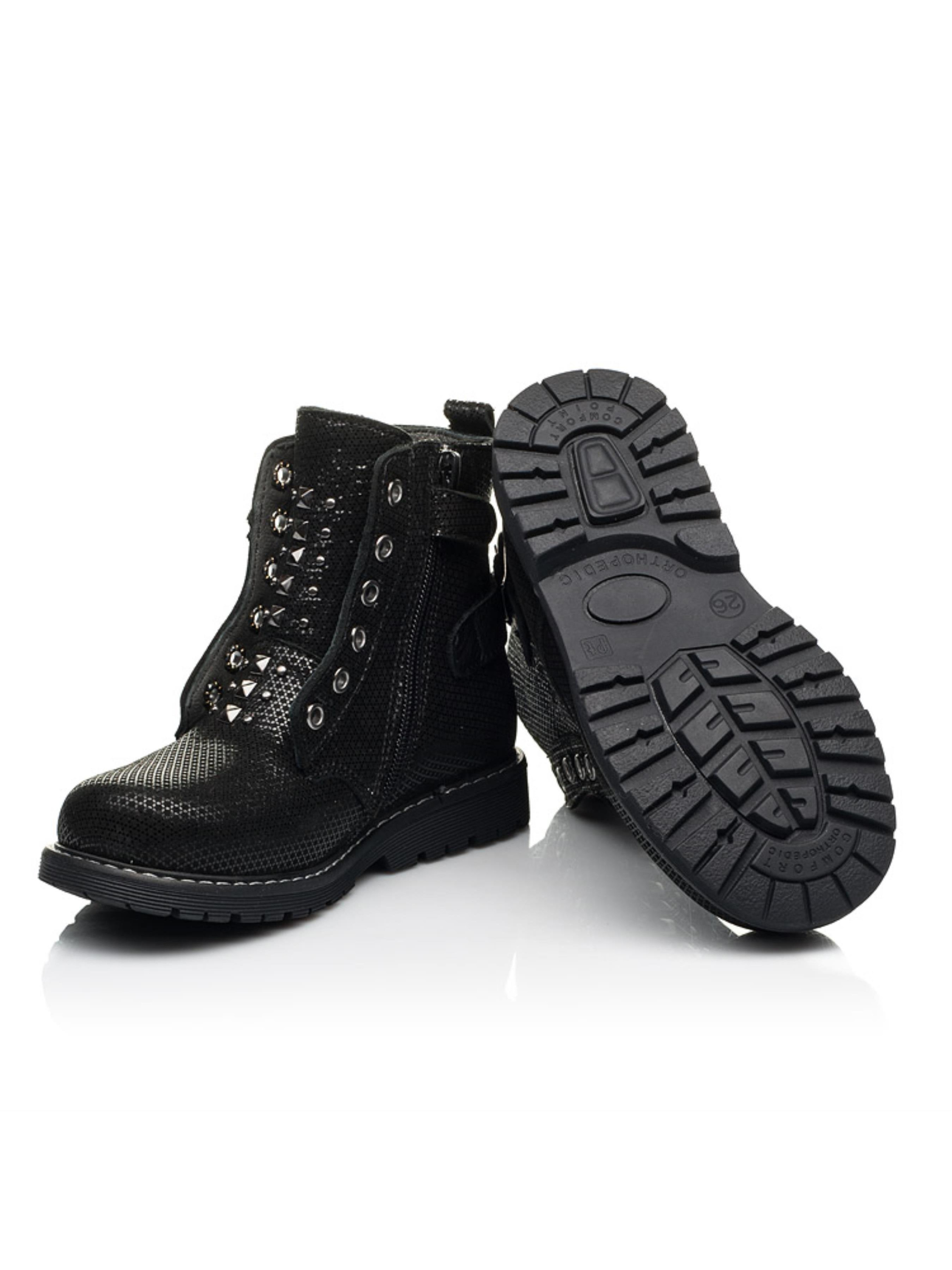 Детские демисезонные ботинки для девочки пошиты из натурального нубука черного цвета, материал подкладки - флис, стелька кожаная. Популярная модель демисезонной обуви для маленькой модницы поражает качеством пошива и комфортными деталями. Чтобы детским ножкам было максимально удобно такие демисезонные ботинки пошиты с учетом всех важных ортопедических элементов детской обуви. К ним мы можем отнести: каблук Томаса, жесткий задник, супинатор и анатомически правильную стельку. В качестве застежки для облегчения процесса обувания используется боковая молния. Визитной карточкой модели выступают декоративные металлические заклепки, петли и ремешок. Создавайте интересные образы с обувью бренда Woopy.