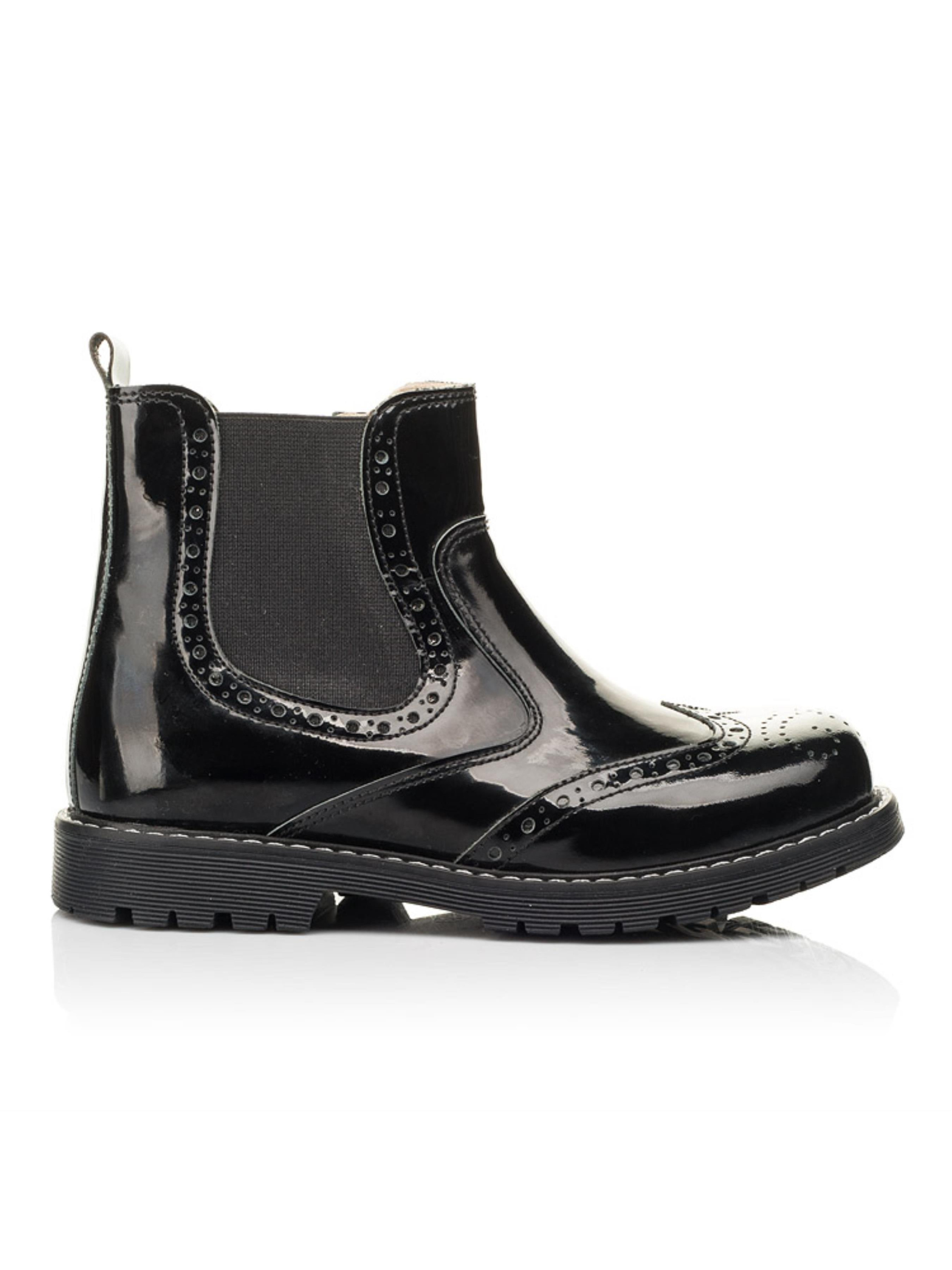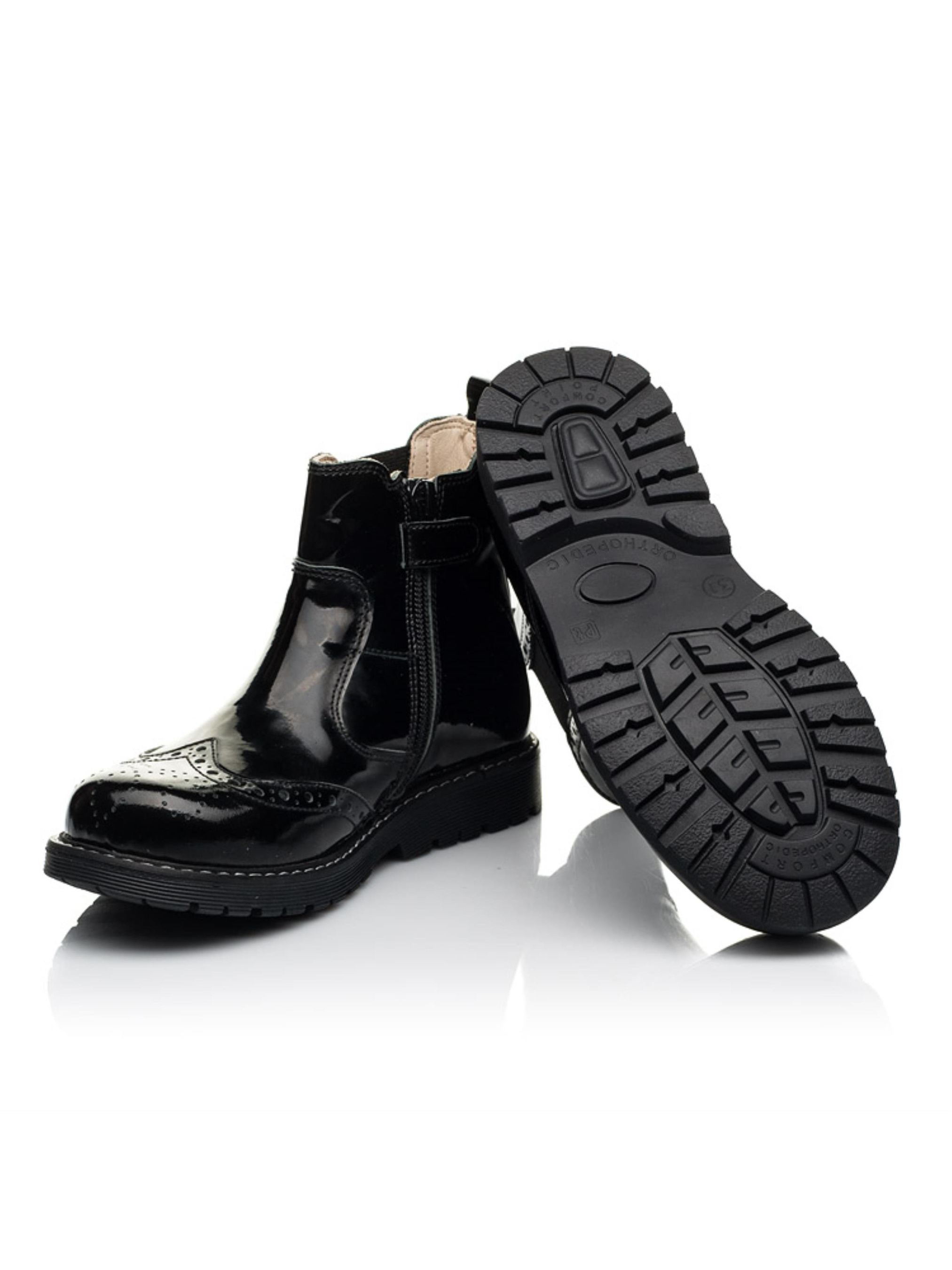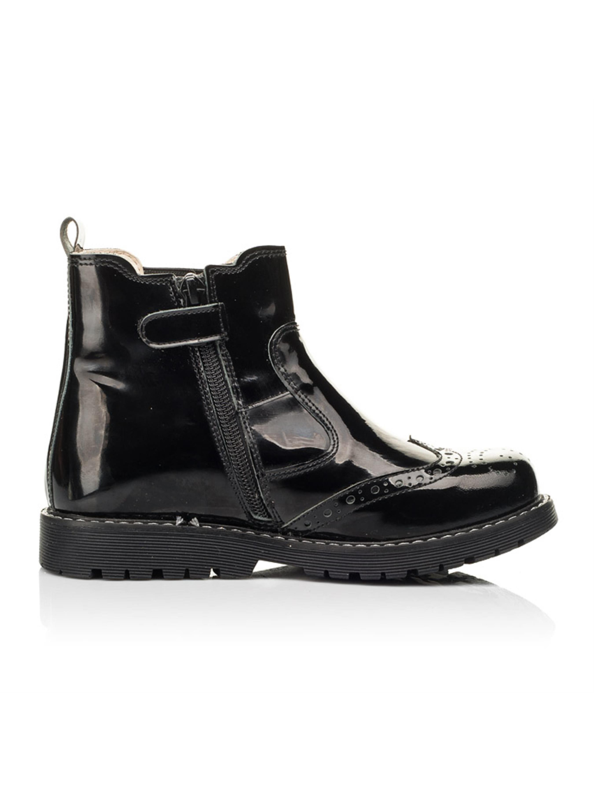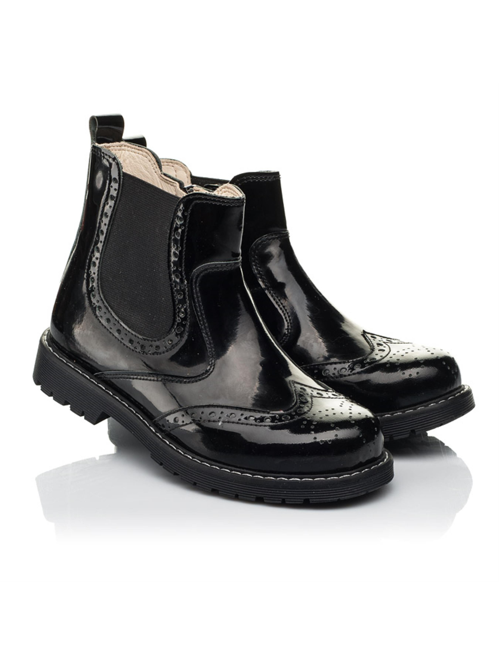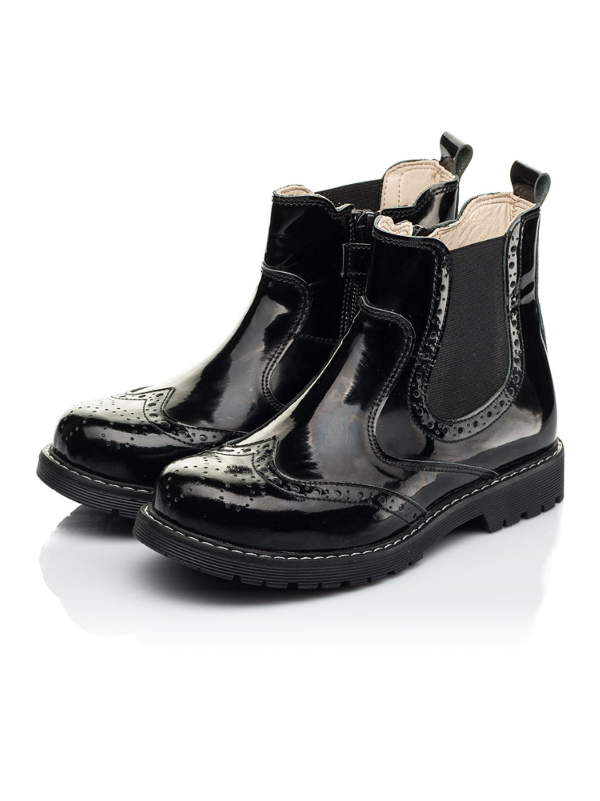 Невероятно универсальную и лаконичную модель демисезонных ботинок создано из натуральной лакированной кожи классического черного цвета. Материал подкладки и стельки - натуральная кожа. Детские демисезонные ботинки созданные с учетом таких важных элементов детской обуви: жесткий задник, супинатор и анатомическая стелька. Стильные челси для девочки на носовой части украшенные перфорированным узором и декоративными швами по поверхности обуви. В качестве застежки в такой модели предусмотрена боковая молния с фирменным фиксатором. Неоспоримым преимуществом модели является внешний вид и неповторимый дизайн.