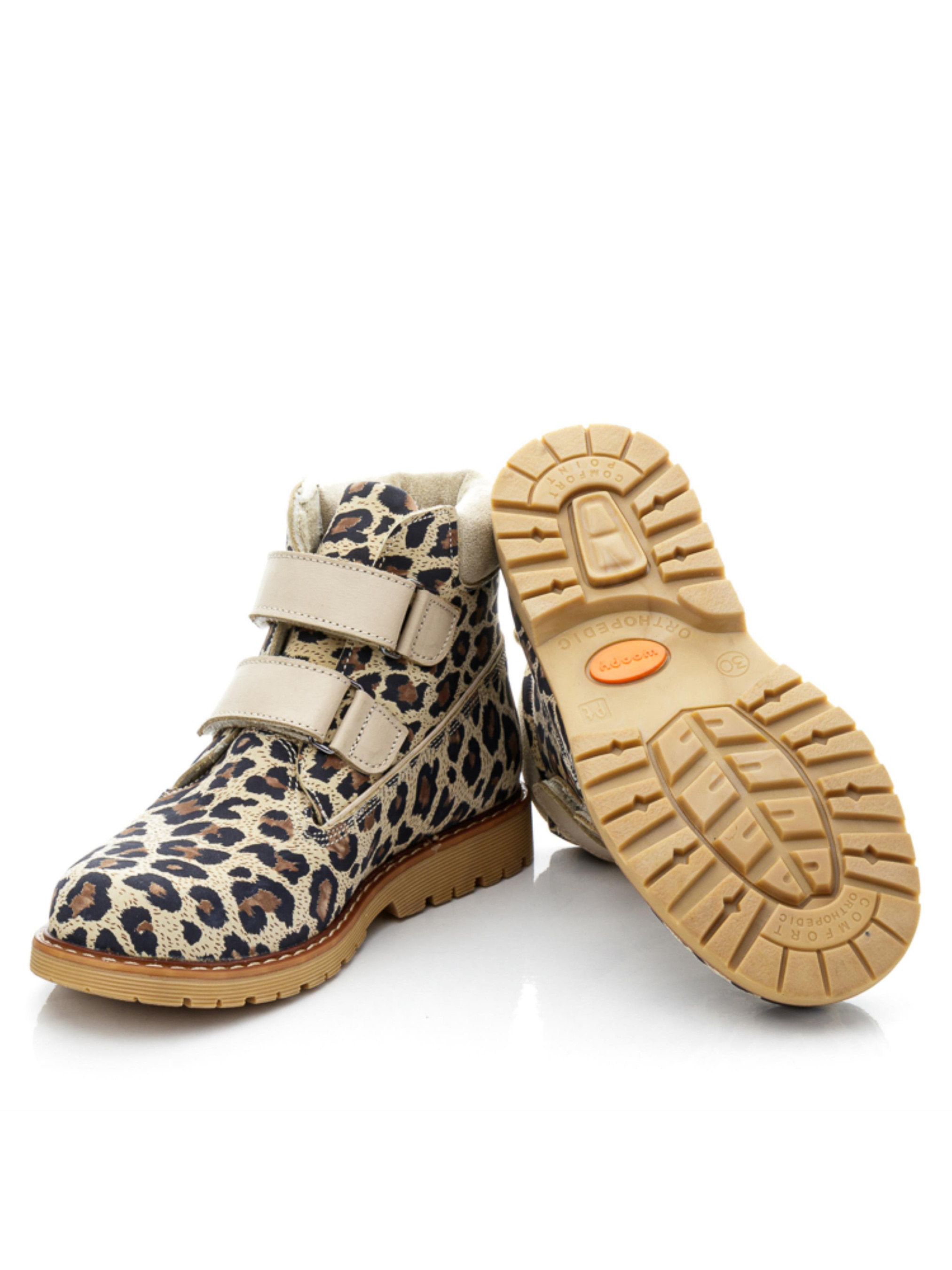 Элегантные демисезонные ботинки для девочек от бренда «Woopy» Если вы ищете идеальные демисезонные ботинки для девочки, обратите внимание на эту стильную модель, которая станет идеальным выбором для холодной погоды. Эти ботинки выполнены из натурального нубука с леопардовым принтом, что придаёт им неповторимый внешний вид. Внутри ботинки утеплены мягким флисом, а стелька изготовлена из натуральной кожи, что обеспечивает дополнительный комфорт и тепло. Особенности данной модели включают все важные ортопедические элементы, которые заботятся о здоровье и комфорте ног вашего ребенка: каблук Томаса, твердый задник, супинатор и анатомически правильная стелька. Для удобства обувания предусмотрены надежные липучки, которые позволяют легко фиксировать ботинки на ноге. Дизайн ботинок дополняет стильная застежка-липучка из гладкой кожи и мягкая подушечка из натуральной замши, что подчеркивает их элегантность. Эти ботинки не только обеспечивают тепло и комфорт, но и позволят вашей дочери выделяться и быть звездой осени. Не упустите возможность приобрести такие привлекательные ботинки для вашей модной девочки.