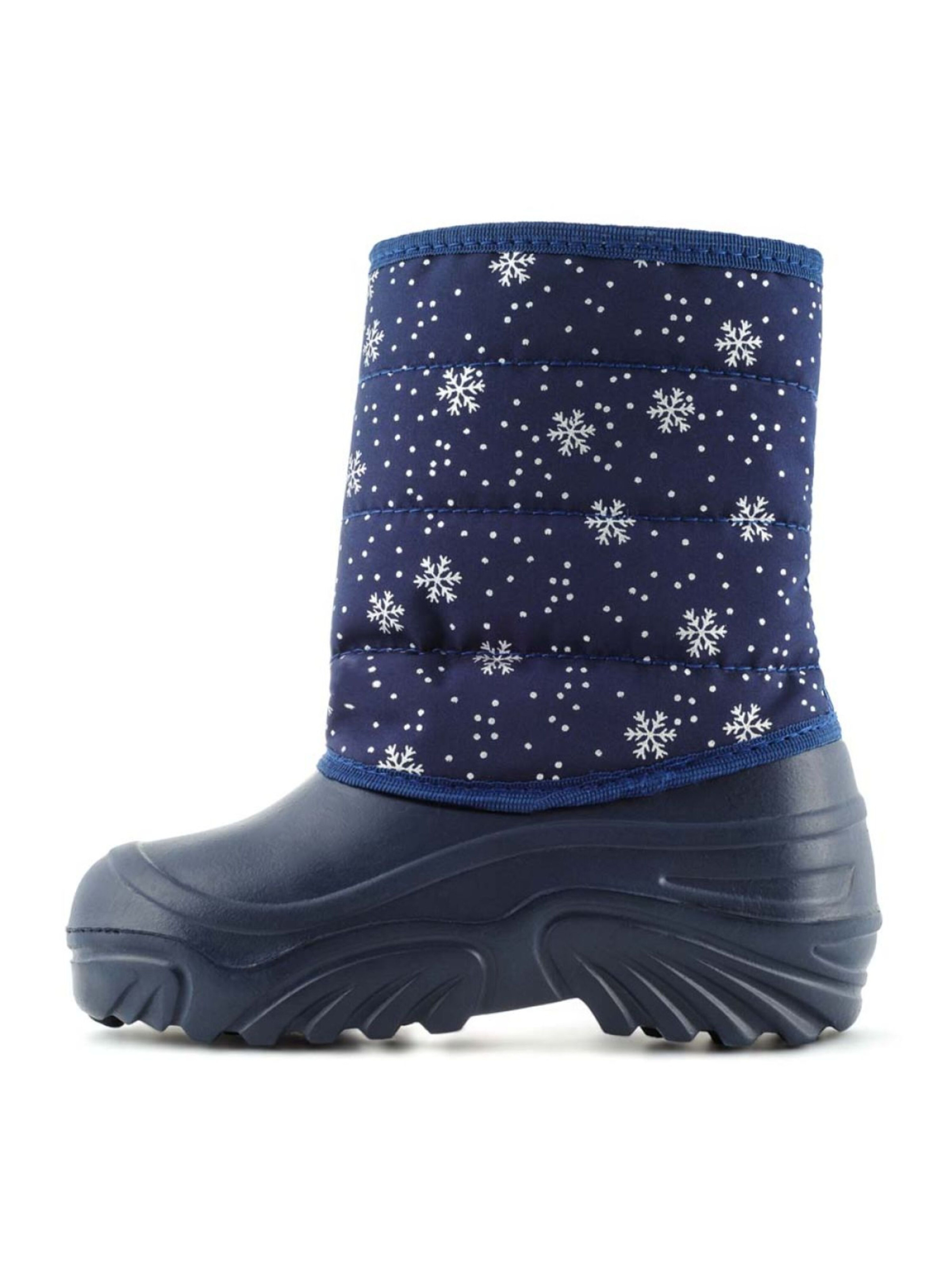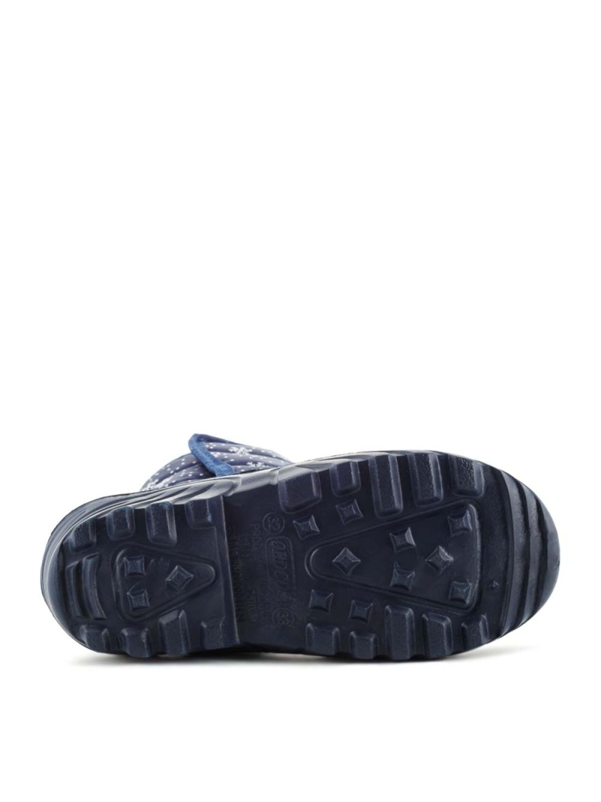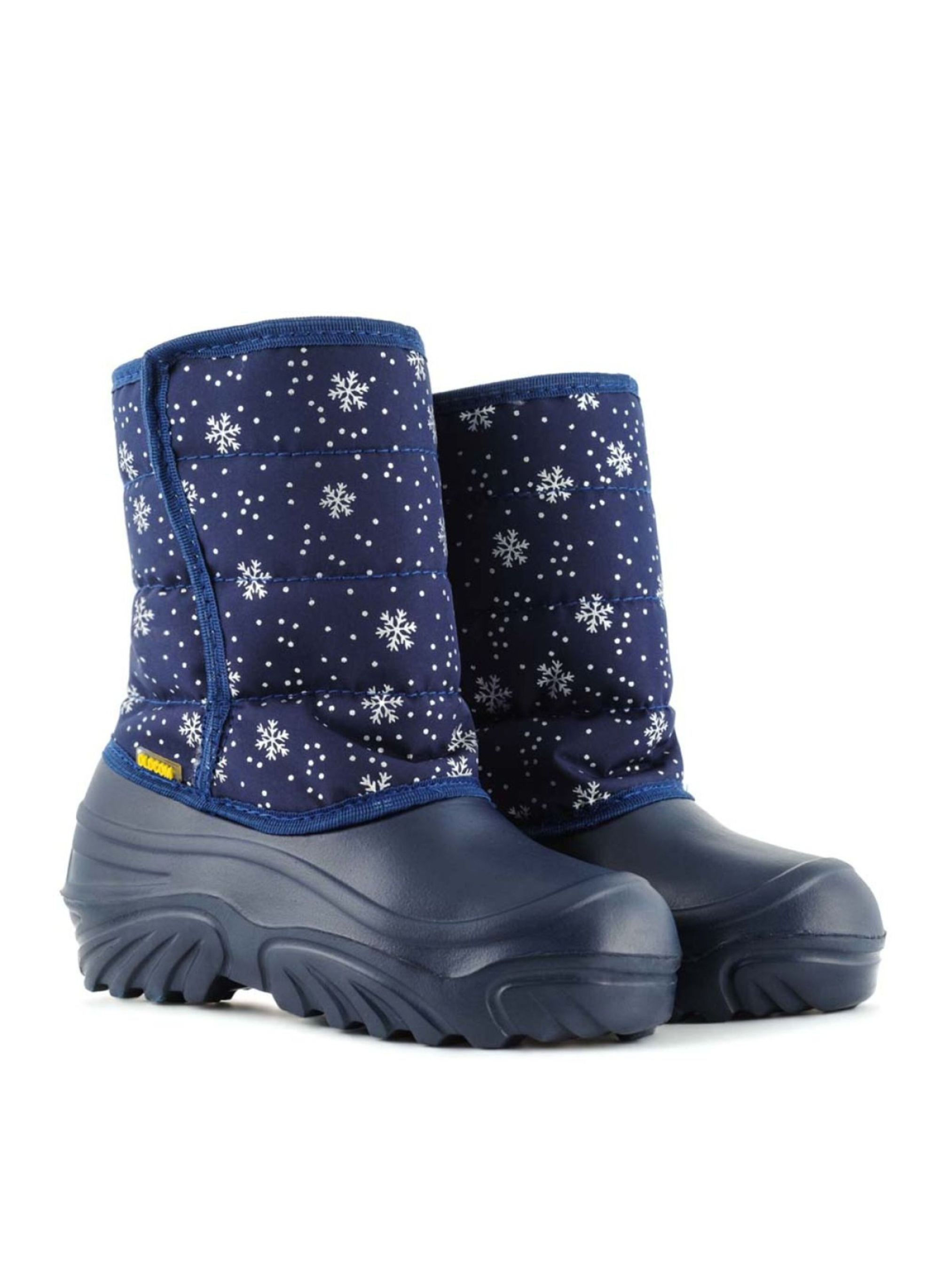 Дутики детские JUMPER Снежинки синие - удобная и теплая обувь для холодной погоды. Главное преимущество данной модели не только в оптимальном сохранении тепла, но и в полной изоляции детских сапог от влаги и холода. Рифленая подошва и верх обуви изготовлены из вспененного каучука. Это надежный и комфортный материал. Голенища сапог сделаны из 95-процентного нейлона, а в качестве утеплителя используется шерсть. Это лучший материал для зимних условий. В таких сапогах ребенку будет удобно, тепло и безопасно. 30/31 р. - 17.00 см. 32/33 р. - 18.50 см. 34/35 р. - 20.00 см. 36/37 р. - 21.50 см.
