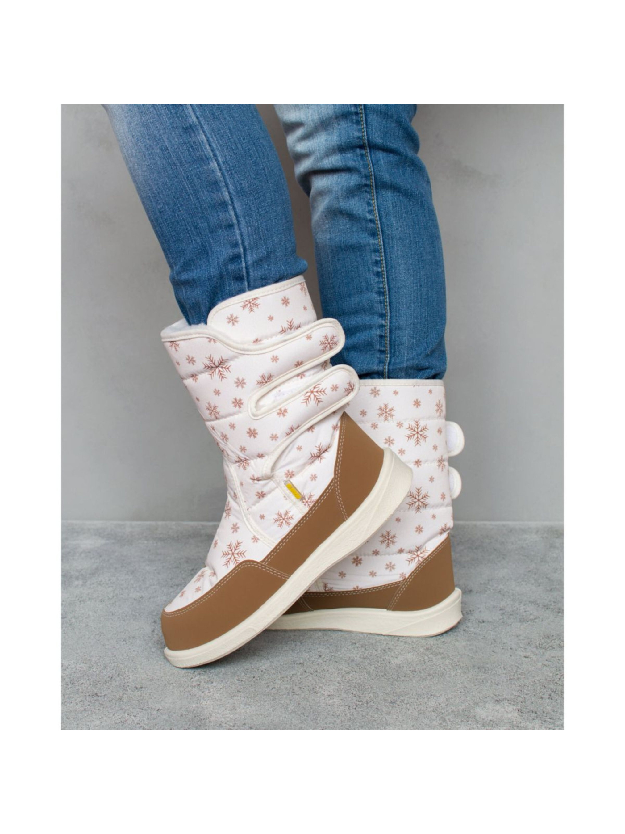 Дутики женские Aurora Снежинка айвори - стильные зимние сапоги со скандинавским узором. Изящное сочетание бежевого и коричневого оттенков делают модель стильным дополнением к любому образу. Сапоги рассчитаны на активную эксплуатацию в течение всего зимнего сезона, поэтому они прекрасно перенесут как сухую погоду, так и снег с дождем. За счет подошвы из ПВХ обеспечивается отличная морозостойкость. Сапоги зимние женские имеют утеплитель из шерсти и искусственного меха, поэтому ваши ножки всегда будут теплыми при любой погоде! 36 р. - 21.50 см. 37 р. - 22.80 см. 38 р. - 23.50 см. 39 р. - 24.30 см. 40 р. - 25.20 см. 41 р. - 26.40 см.