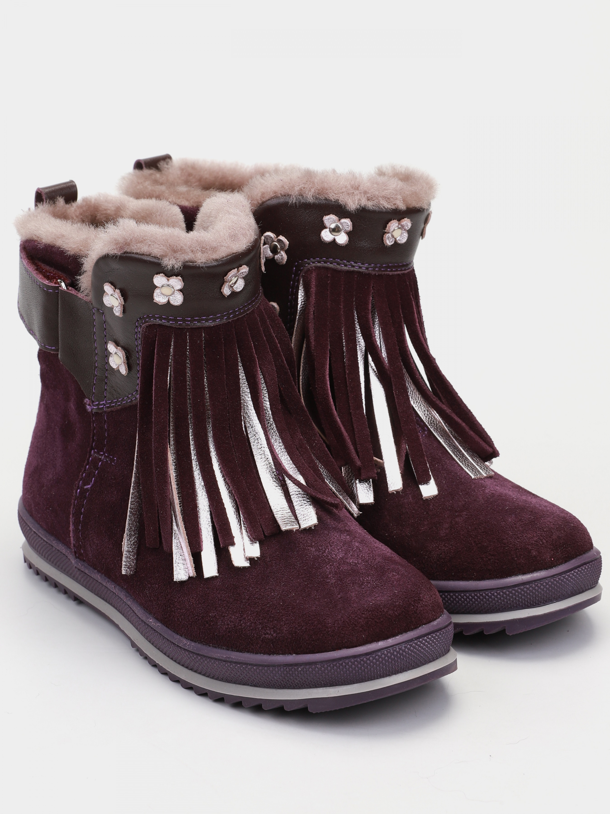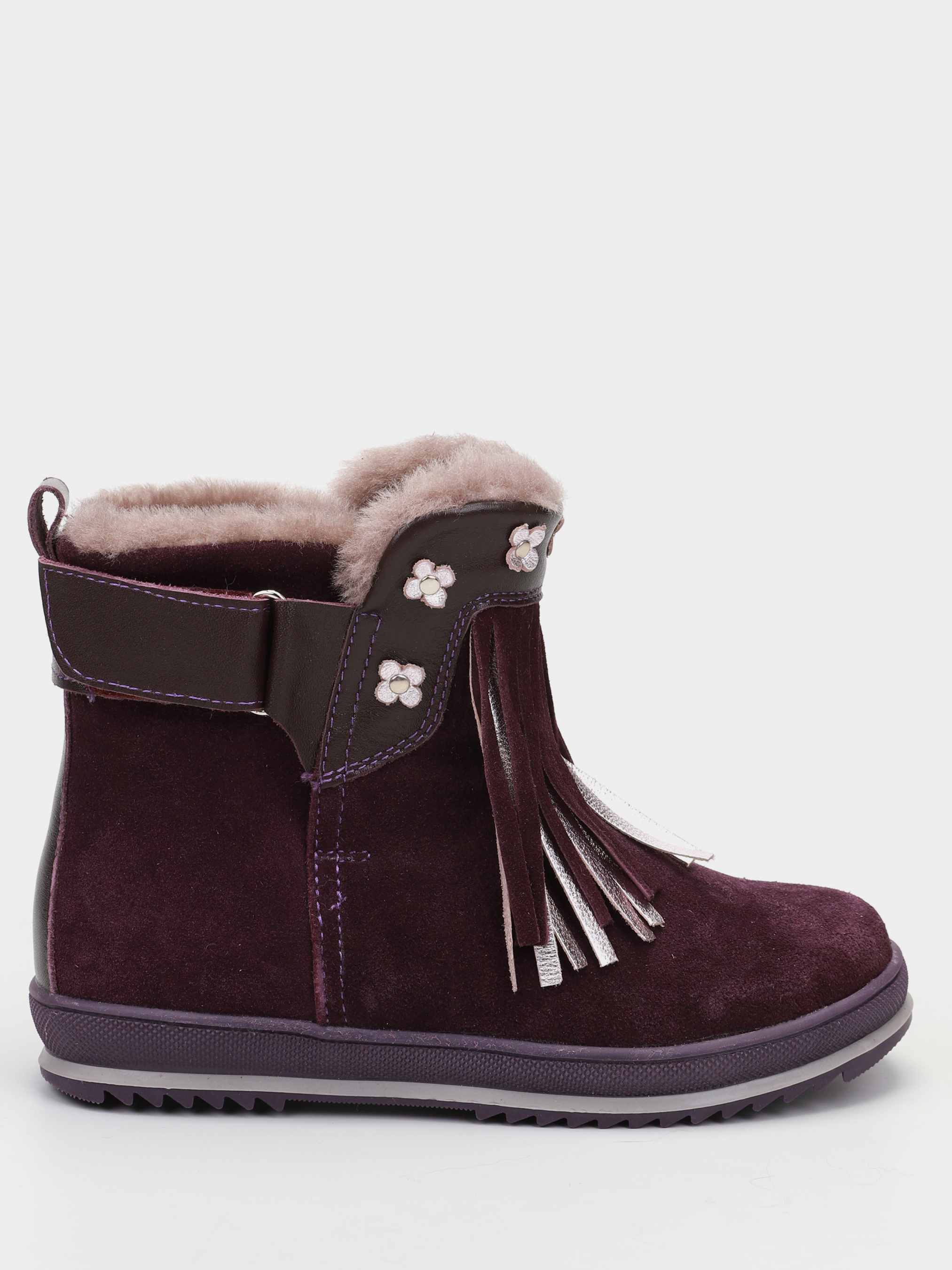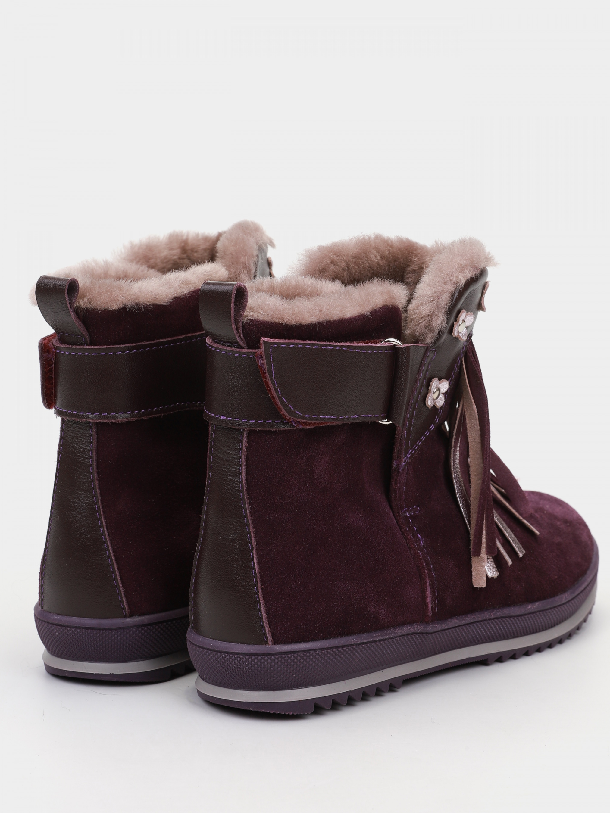 Завышенные ботинки для девочки из натурального спилка фиолетового цвета – это качественный и надёжный вариант на холодную зиму. В данной модели имеется натуральный мех цигейка, которая выдерживает низкие температуры и защищает от промокания на время всей прогулки.