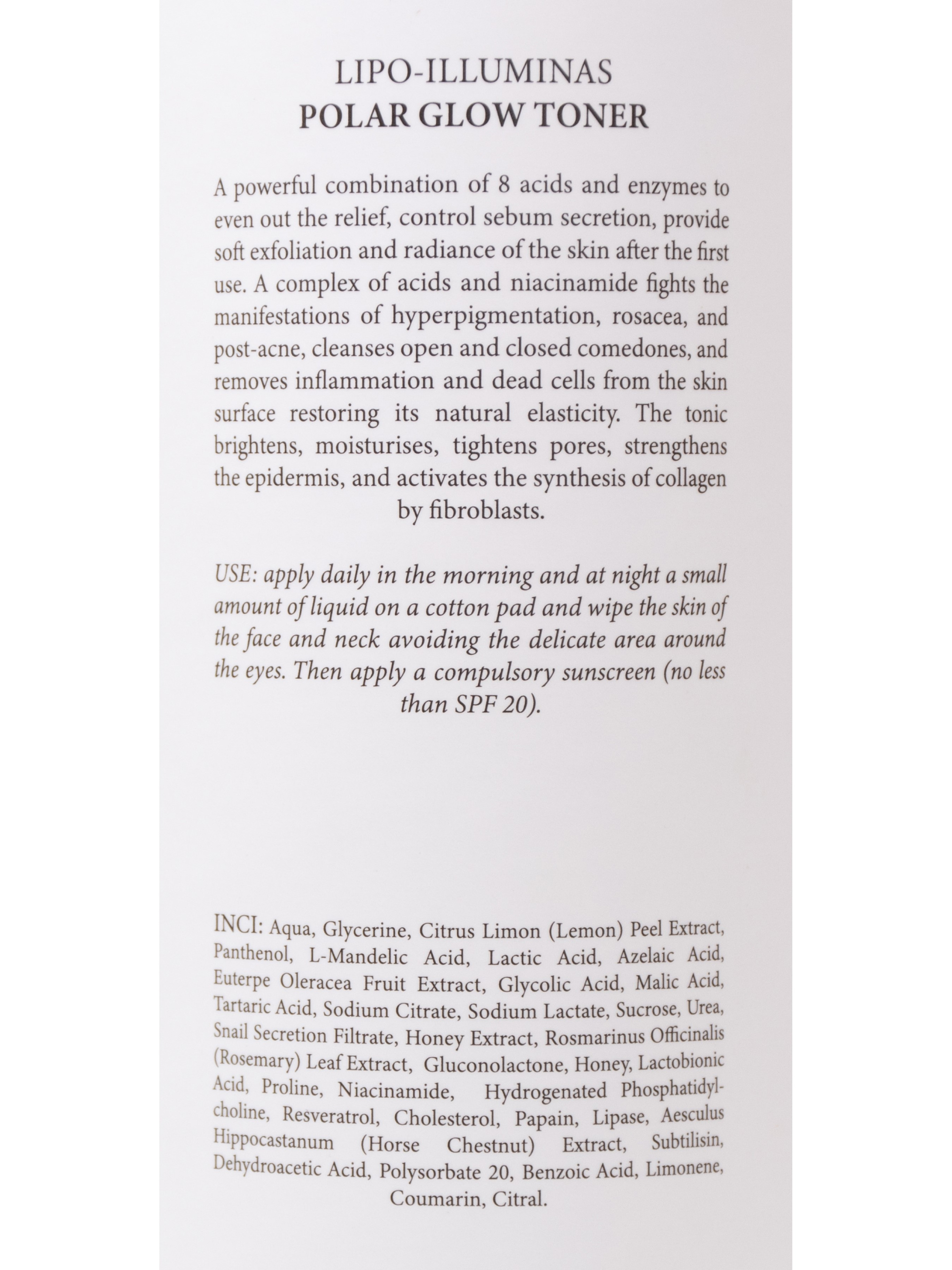 Мощное сочетание 8 кислот и энзимов для выравнивания рельефа, контроля выделения себума, мягкого отшелушивания и сияние кожи с первого использования. Комплекс кислот и ниацинамид борется с проявлениями гиперпигментации, розацеа и пост-акне, очищают открытые и закрытые комедоны, снимает воспаление и отмершие клетки с поверхности кожи, восстанавливая природную эластичность. Тоник освещает, увлажняет, сужает поры, укрепляет эпидермис и активизирует синтез коллагена фибробластами.