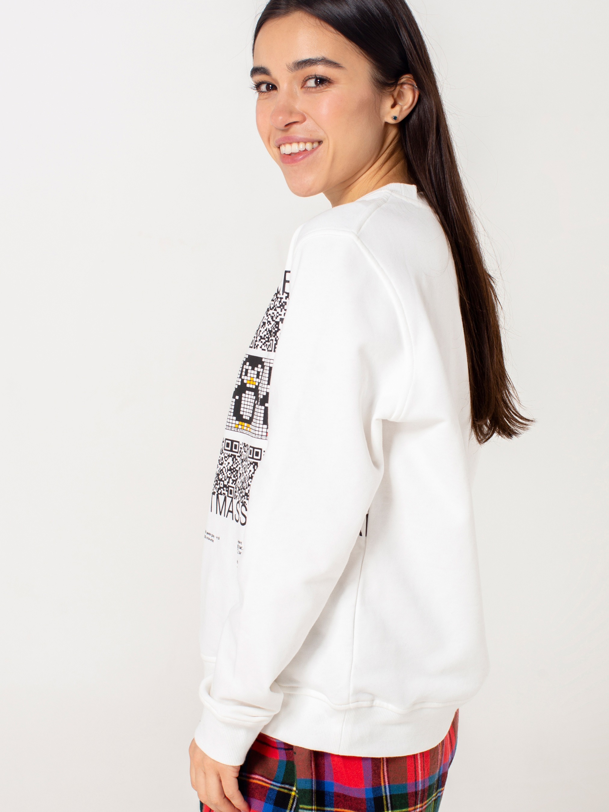 - Свитшот свободного кроя изготовлен из хлопкового трикотажа (футера). Имеет манжеты на рукавах и снизу изделия. Свитшот из трикотажа — более плотного материала, он лучше держит форму, в нем тепло зимой и не жарко при теплой погоде; - Свитшот с принтом — пингвинами; - Манжеты, горловина и низ в свитшота выполнены на вязаных резинках с добавлением эластана, такая обработка не сковывает движений, и гарантирует комфорт и свободу во всех активностях.
