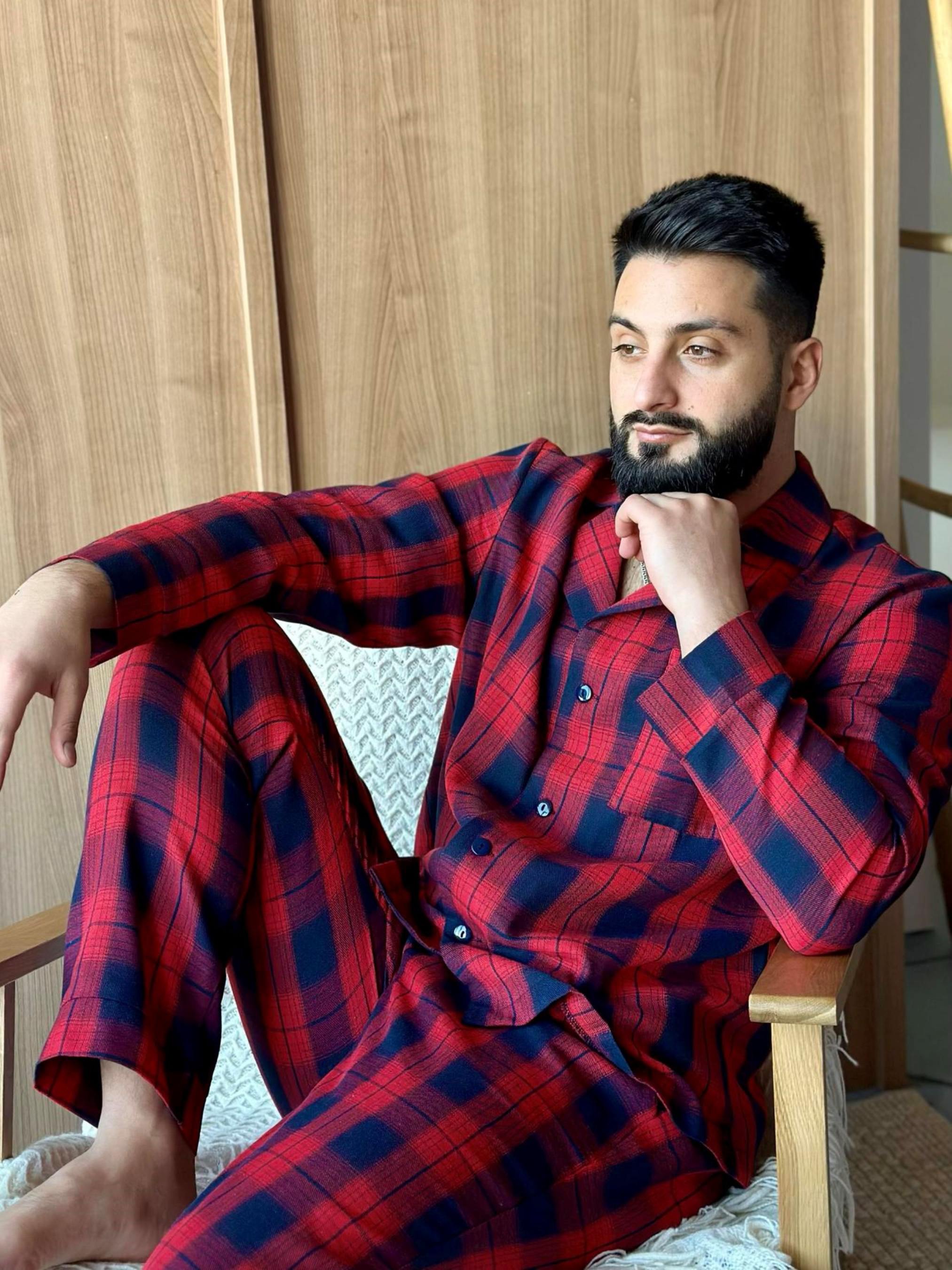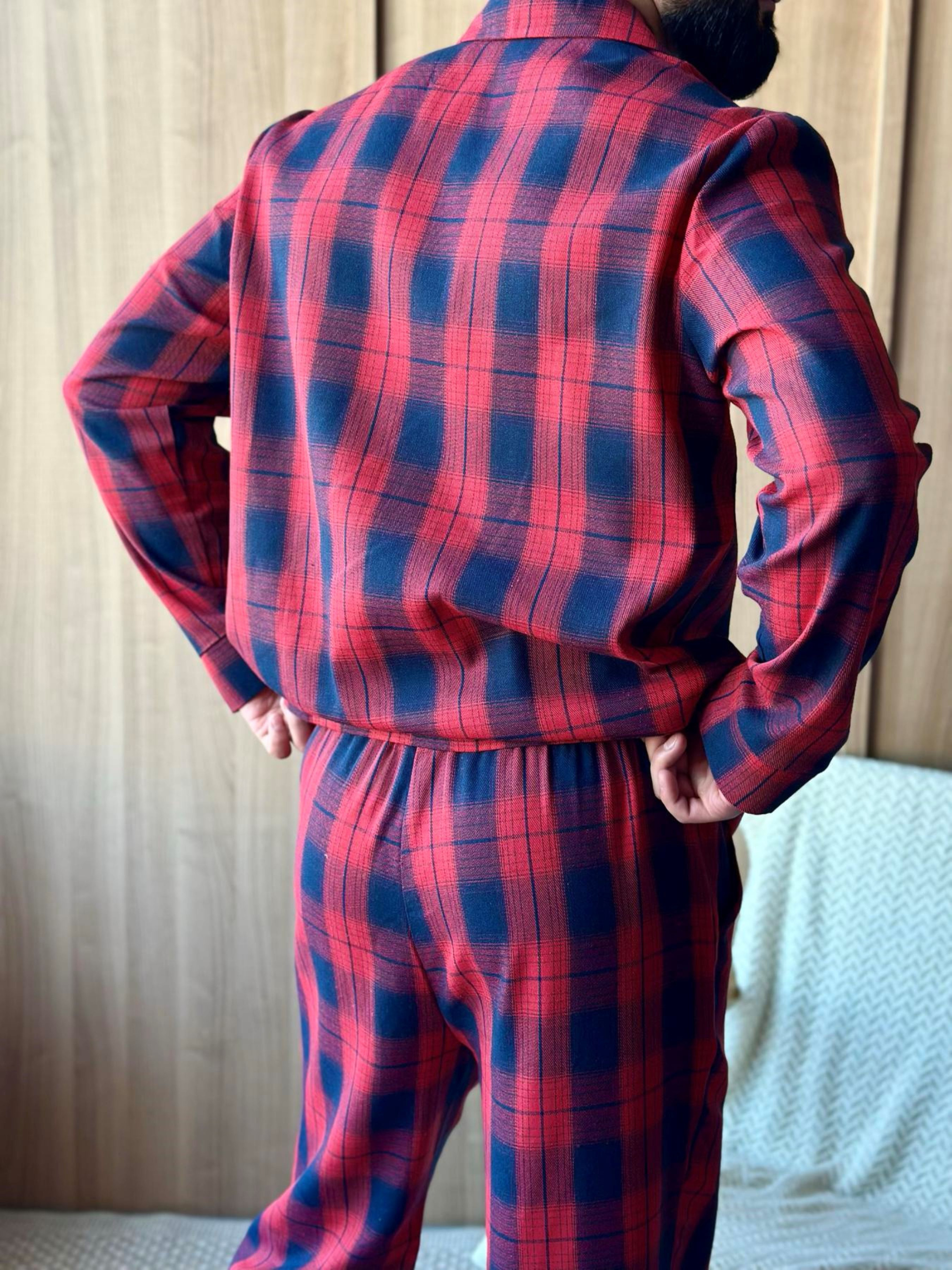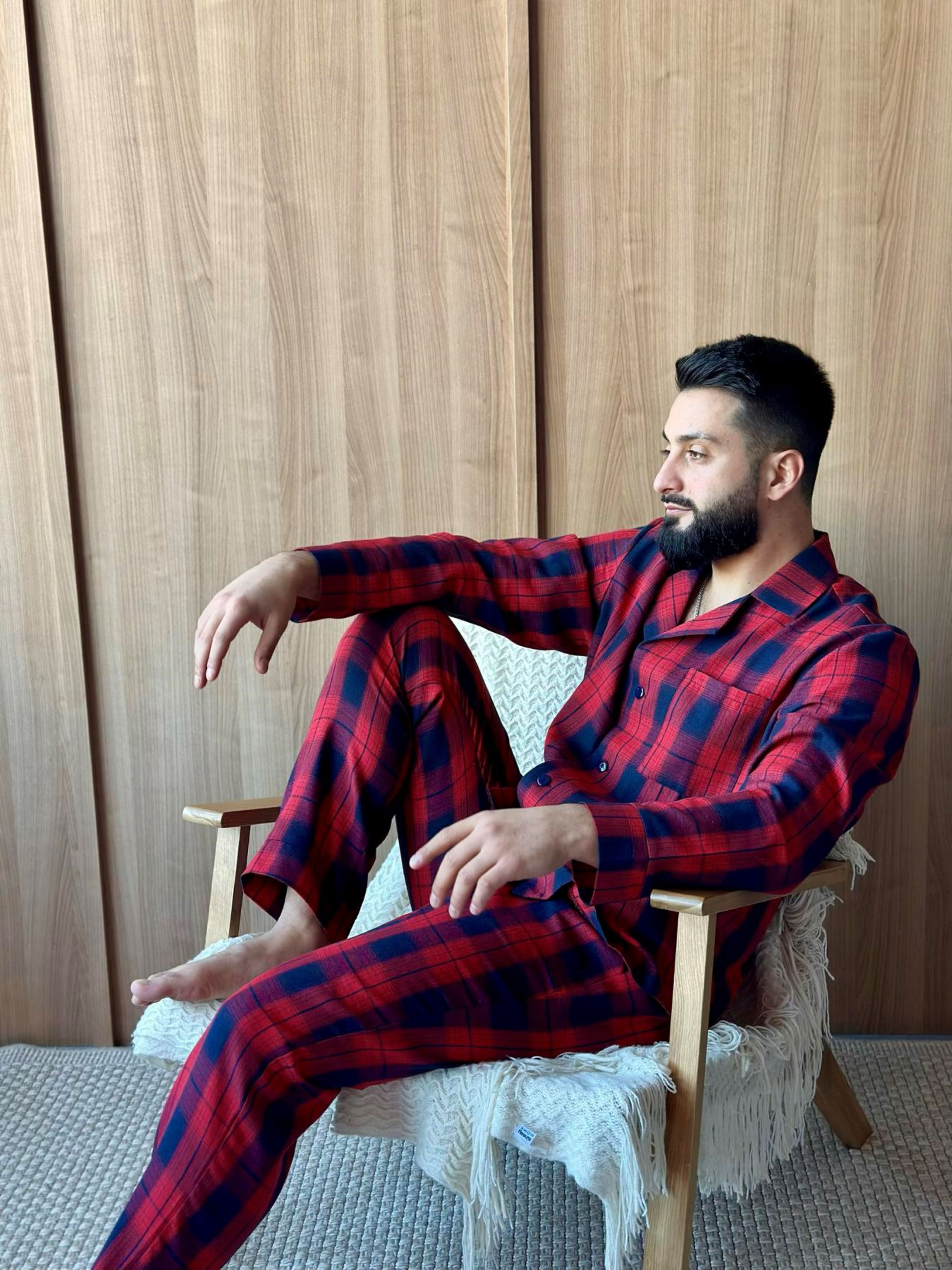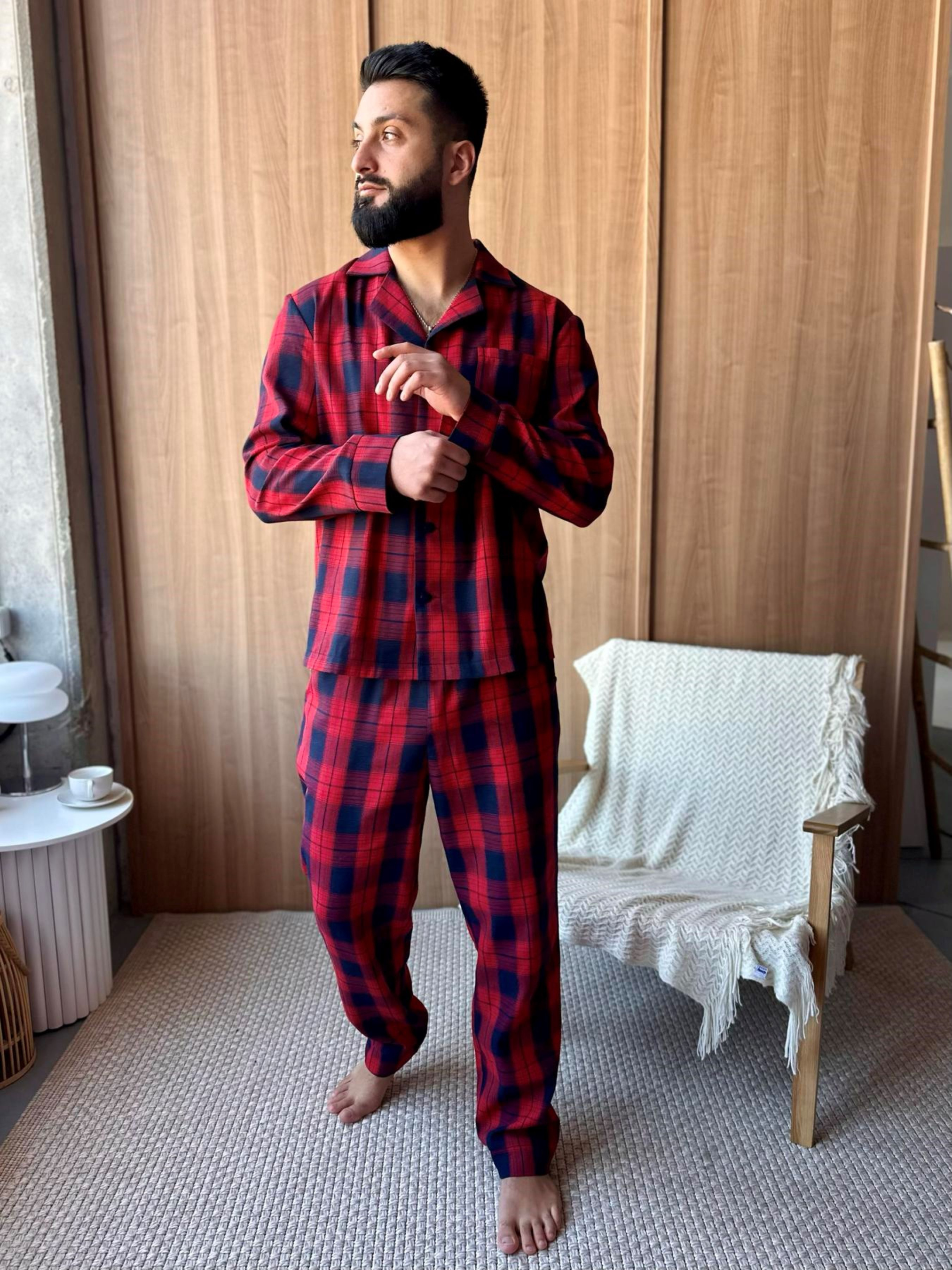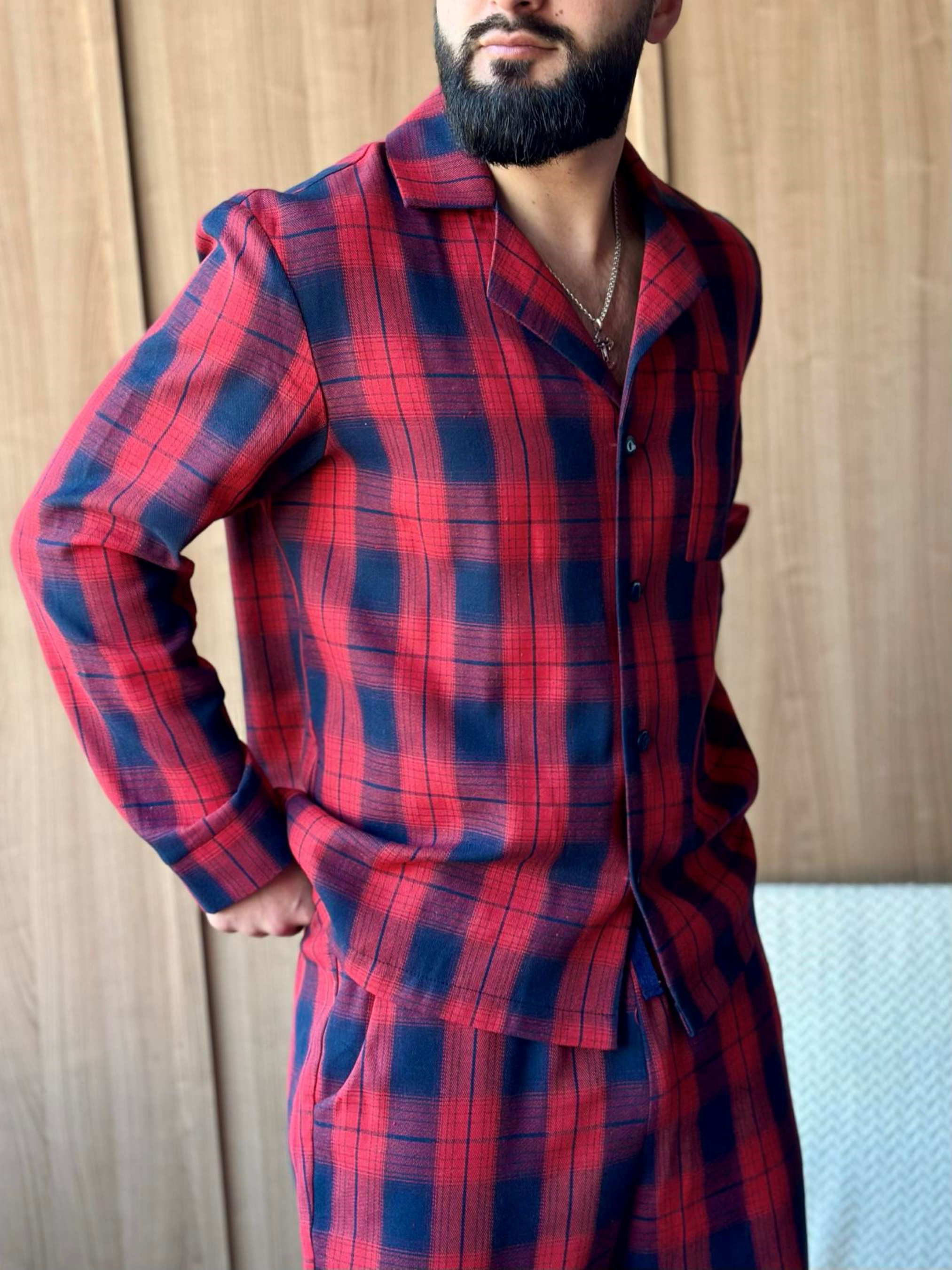 Мужской пижамный комплект "Глен" – это сочетание стиля, практичности и настоящего комфорта. Сорочка на пуговицах и классические брюки создают универсальный образ для дома, отдыха или даже утреннего кофе на террасе. Брюки удобные, с карманами и поясом на резинке с регулируемой кулиской. Ткань мягкая, приятная к телу, хорошо держит форму даже после многочисленных стирок. Принт — яркая красно-синяя клетка, придающая характеру и мужской шарм. Состав: 70% хлопок, 30% полиэстер Комплект Глен станет твоим любимым вариантом для домашних вечеров, выходных в стиле slow life или спокойного отдыха после насыщенного дня. Почувствуй гармонию стиля и уюта!