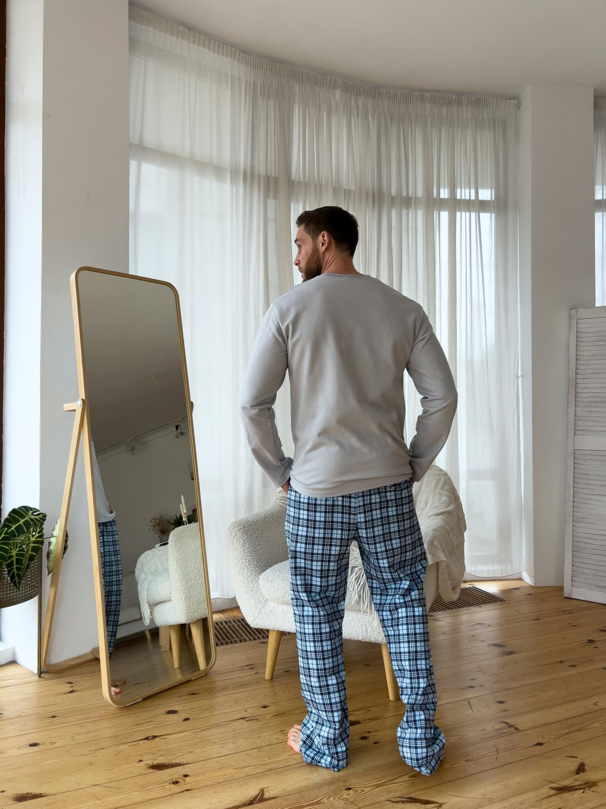 Комфортный домашний комплект Sunday от COSY: пижамные брюки+лонгслив. Пижамный комплект – это не только одежда для сна, но и удобная теплая одежда для дома. Цвет: клетка серо-голубая Ткань трикотаж с начесом, 100% хлопок. Утепленный трикотаж отличается особой мягкостью и способностью удерживать тепло, не перегревая при этом тело и выводя на поверхность естественные испарения. Плотный трикотаж с гладкой лицевой стороной и теплым ворсистым изнанкой. Эффект: начес с внутренней стороны Размер: M; L; XL; 2XL Как ухаживать за изделием: Ручная или машинная стирка при температуре не более 30 градусов. Перед машинной стиркой вещь должна быть вывернута наизнанку (лицевой стороной внутрь). Можно использовать любые моющие средства, но лучше отдать предпочтение гелям для стирки. Отжимайте на минимальных оборотах 400. Сушить изделие необходимо в расправленном виде в горизонтальном положении, вдали от нагревательных приборов и прямых солнечных лучей. Гладить не требует, при необходимости гладить с внутренней стороны.