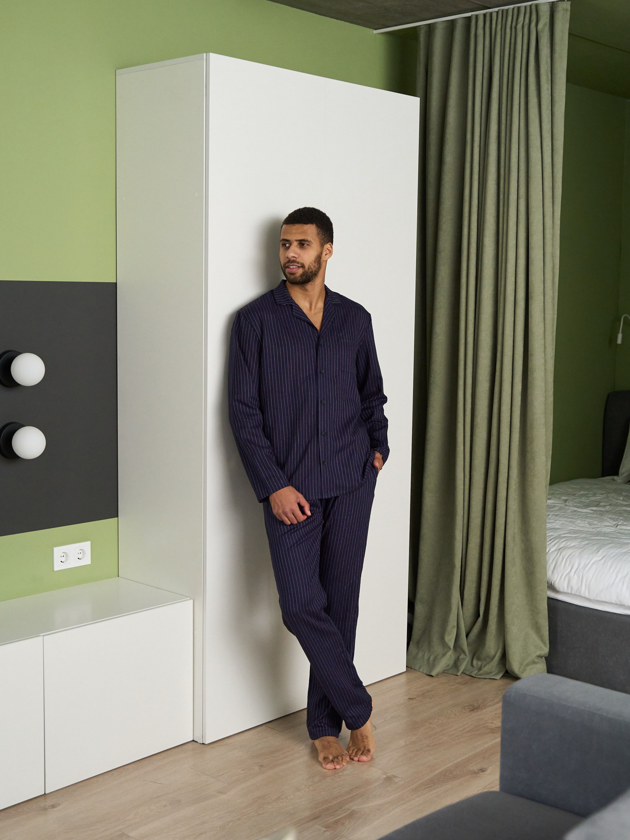 Наш вариант домашней одежды на все сезоны. Натуральный склад позволяет чувствовать себя удобно и комфортно в любое время года. Органический льняной материал, пропускающий воздух, гипоаллергенный. Рубашка прямого кроя, застегивающаяся на пуговицы, есть нагрудный карман. Брюки на резинке с хлопковым плетеным шнурком. Доступна в цветах: синий, мокко