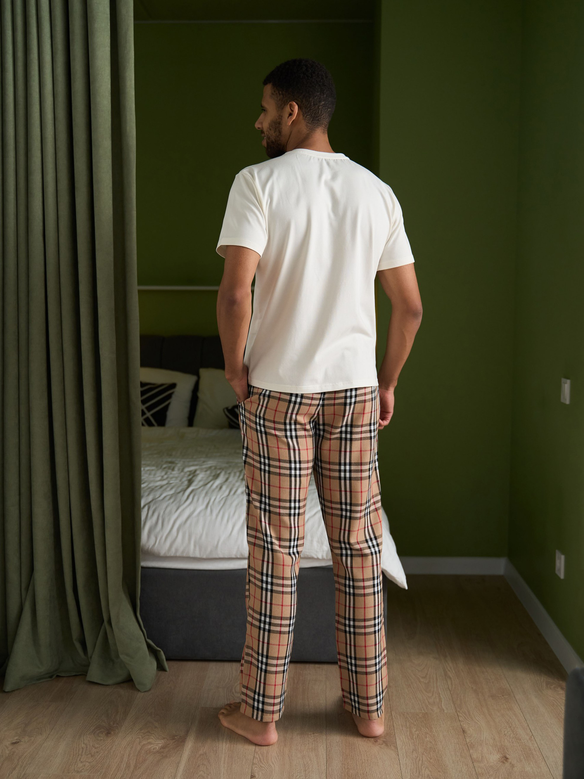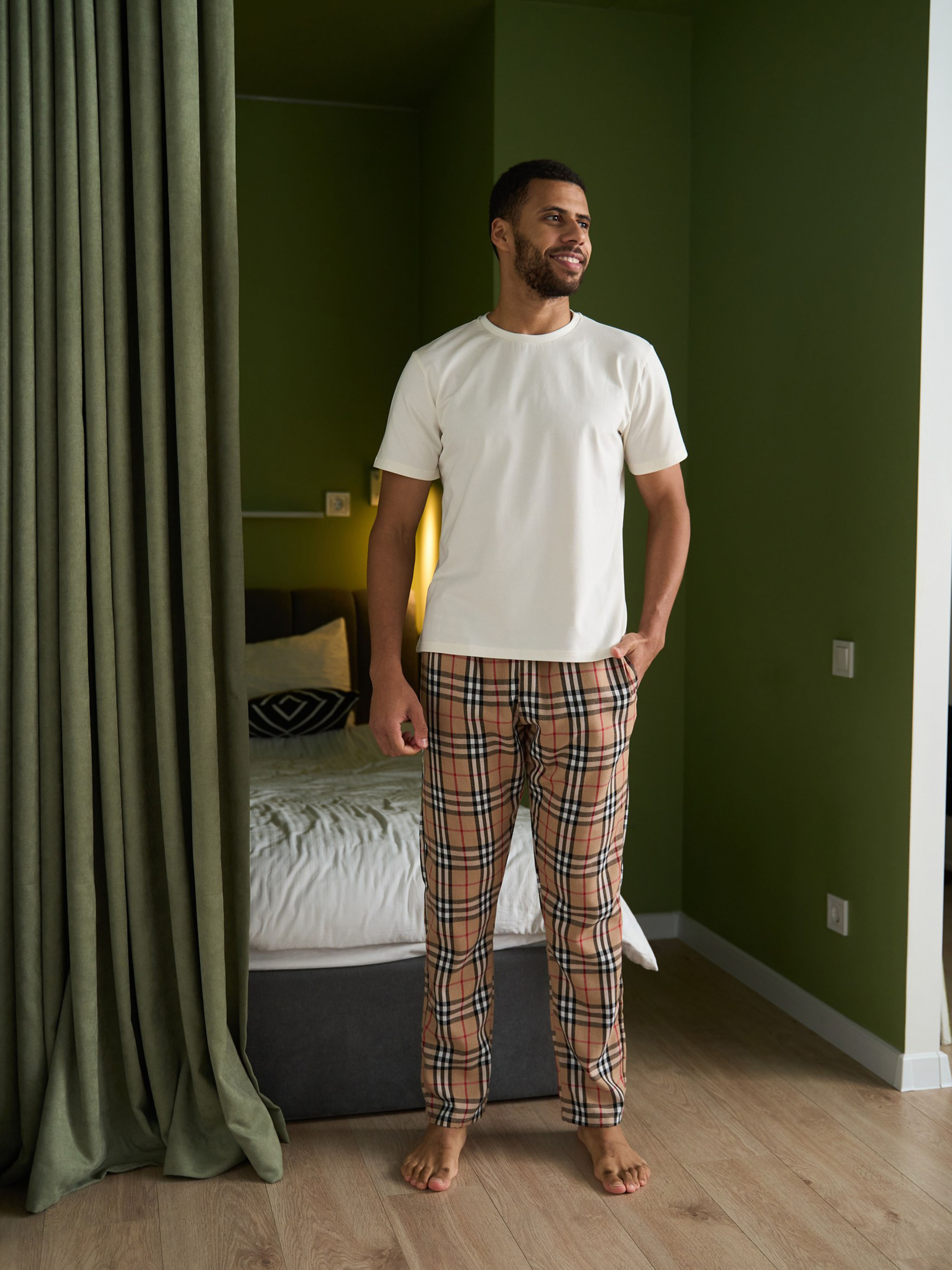 Что для дома удобнее всего? Приятная к телу футболка с натуральным составом и брюки свободного фасона. Красивый цвет, проверенный материал, удобный фасон. К штанам можно подобрать футболку или лонгслив (футболка с длинным рукавом). Для тех, кто думает, что не любит пижамы, или что пижамы – это не удобно, советуем попробовать это сочетание домашней одежды.