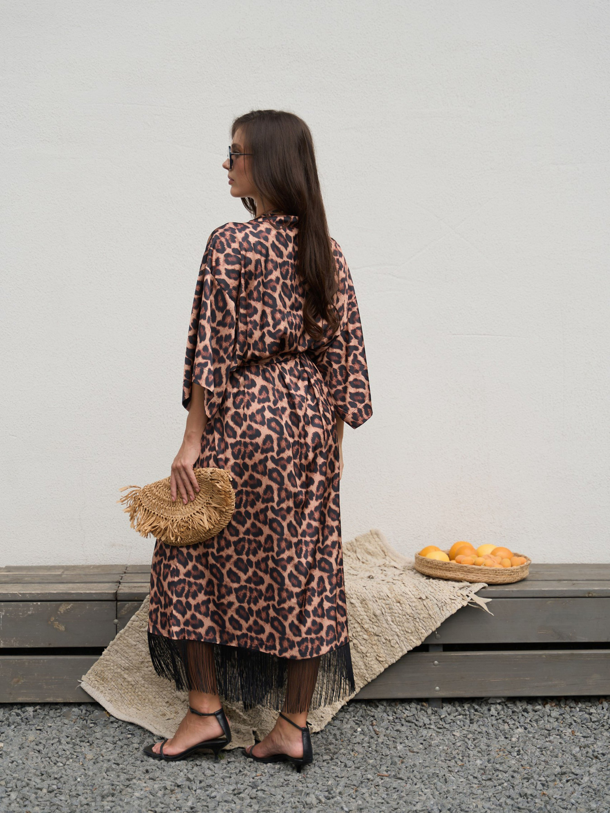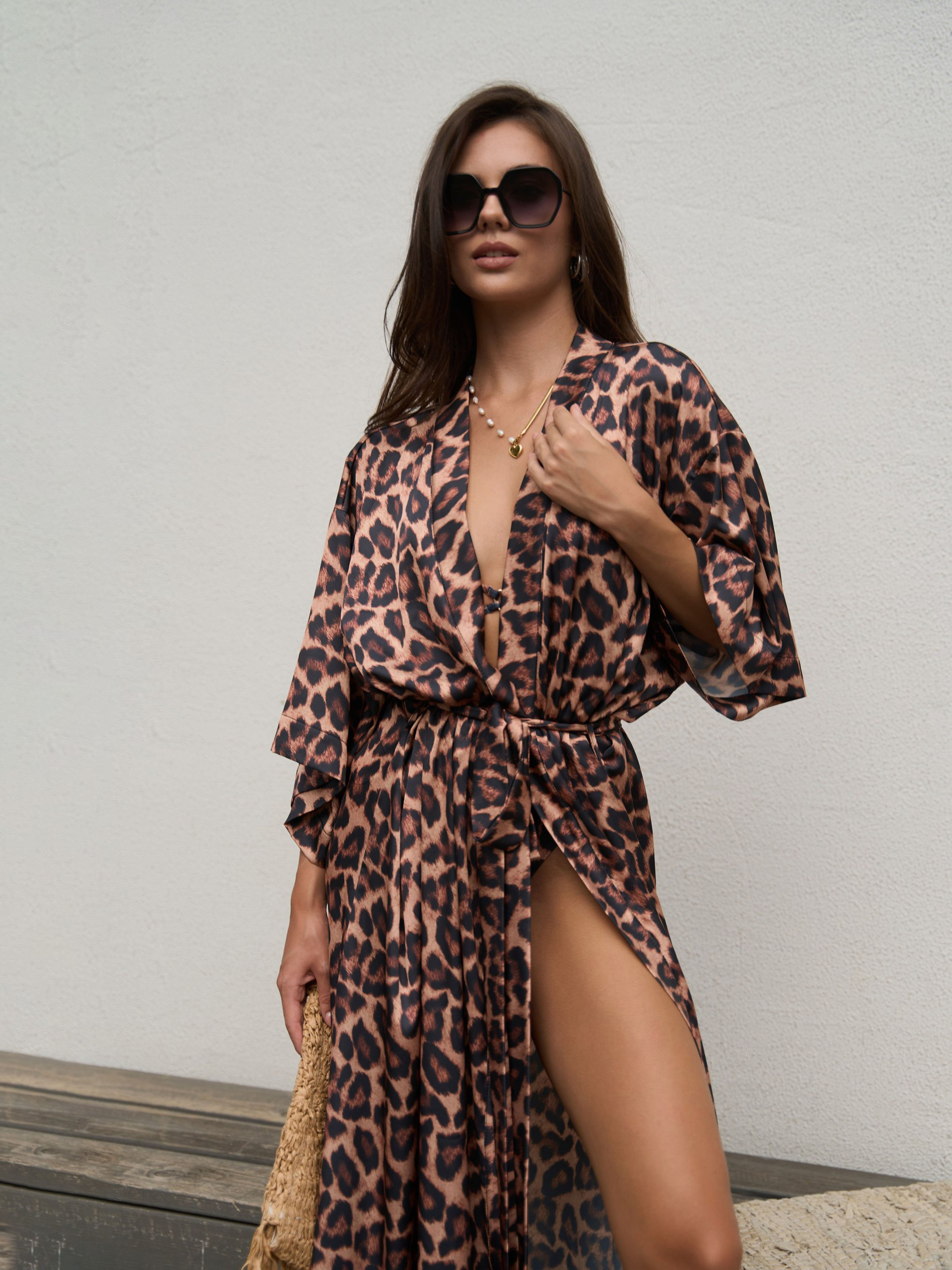 Ощутите роскошь и комфорт с халатом Safari, сочетающим в себе элегантный стиль и удобство. Модный леопардовый принт придаст вашему образу выразительности и изысканности. Халат изготовлен из легкой и мягкой ткани, обеспечивающей приятные ощущения на коже. Пояс позволяет подчеркнуть талию, создавая женственный силуэт. Халат Safari идеально подходит для утренних ритуалов, отдыха на дому или даже как стильный пляжный аксессуар.