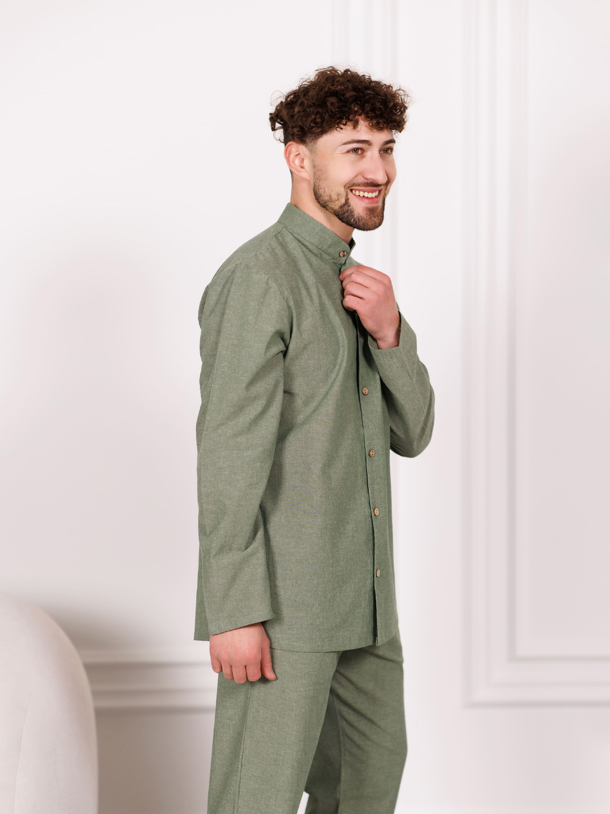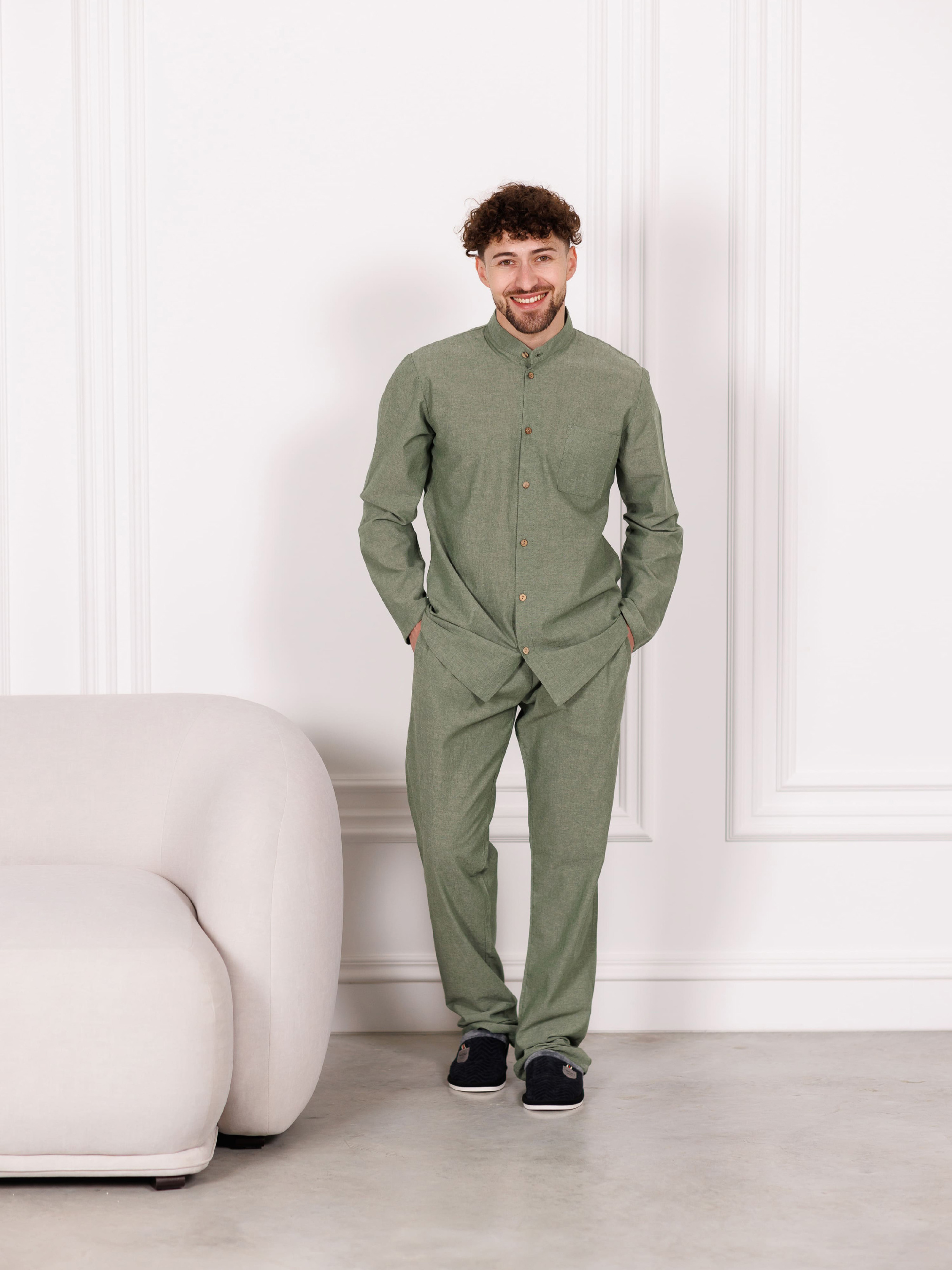 Наша новинка – комплект из вареного хлопка. Washed Cotton (вареный хлопок) – это ткань, которая прошла специальный процесс обработки горячей водой (варка), благодаря чему стала невероятно мягкой и бархатистой на ощупь. Самое главное преимущество такой пижамы – она отлично смотрится без глажки. При производстве ткань обробатывают особым образом, поэтому сначала она выглядит слегка помятой. В этом ее фишка: такая пижама создает впечатление стильной небрежности, расслабленности, домашнего уюта без труда. Благодаря натуральному составу такая пижама подойдет как на зиму, так и на лето – натуральный материал хорошо дышит и испаряет влагу в теплую погоду. Пижама имеет усадку после стирки, учитывайте это во время примерки.