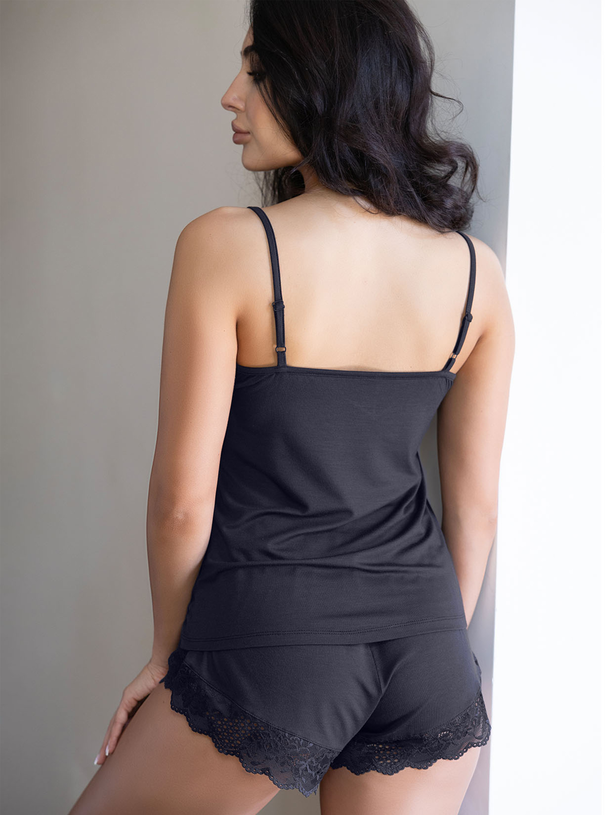 95% viscose, 5% elastane Жіноча піжама, що створена для міксу комфорта та сексуальності. Вона складається з шортиків та майки, стане чудовим вибором для якщо ви полюбляєте таке поєднання. Виготовлена з гарної, м'якої тканини, піжама забезпечує приємне відчуття на шкірі та максимальний комфорт. Особливості жіночої піжами - тканина гарна, м'яка, приємна до тіла, бретелі тонкі, регульовані для ідеальної посадки. Майка - оздоблена чарівним мереживом, шорти - з окантовкою та мережевним дизайном.