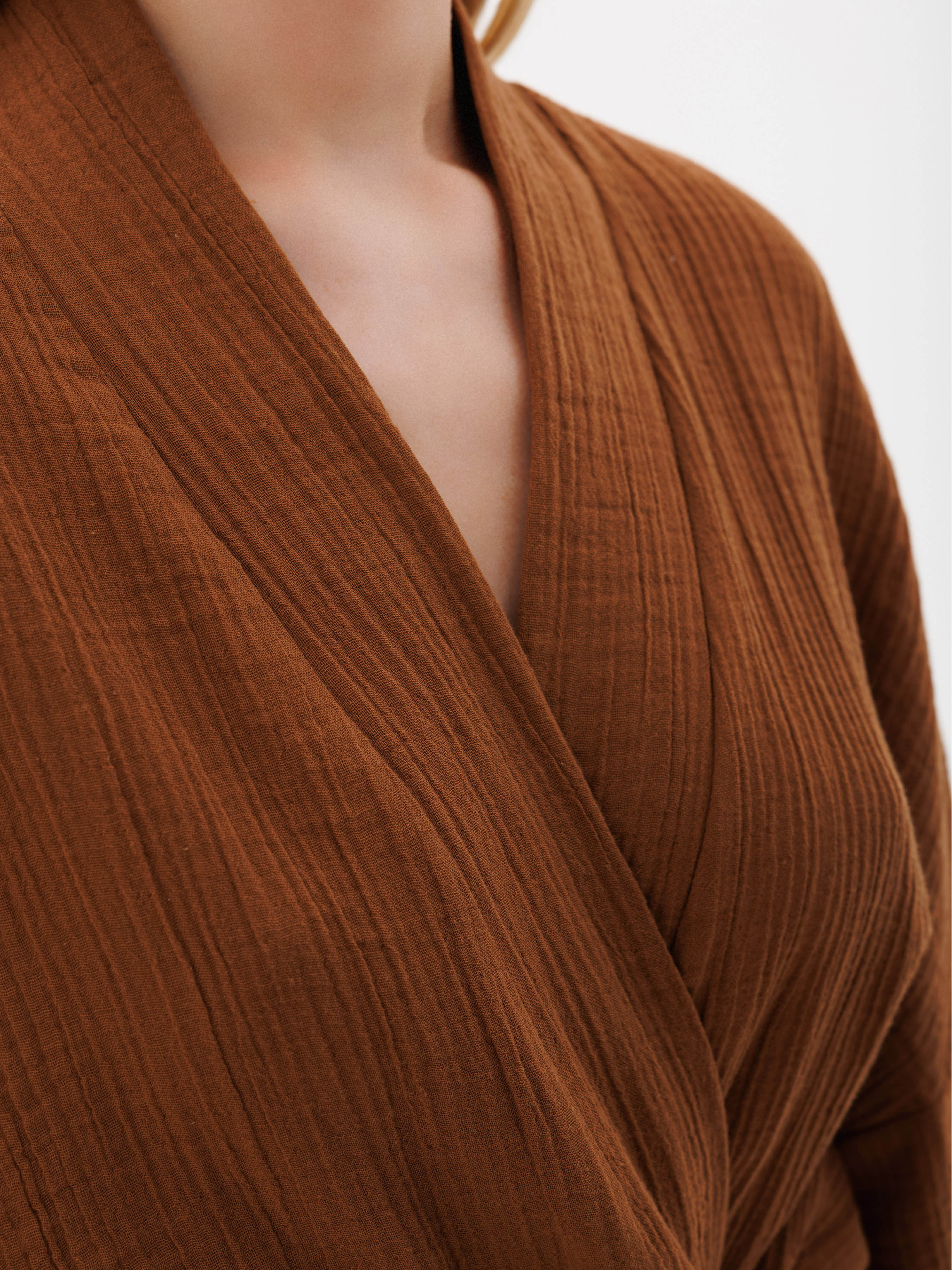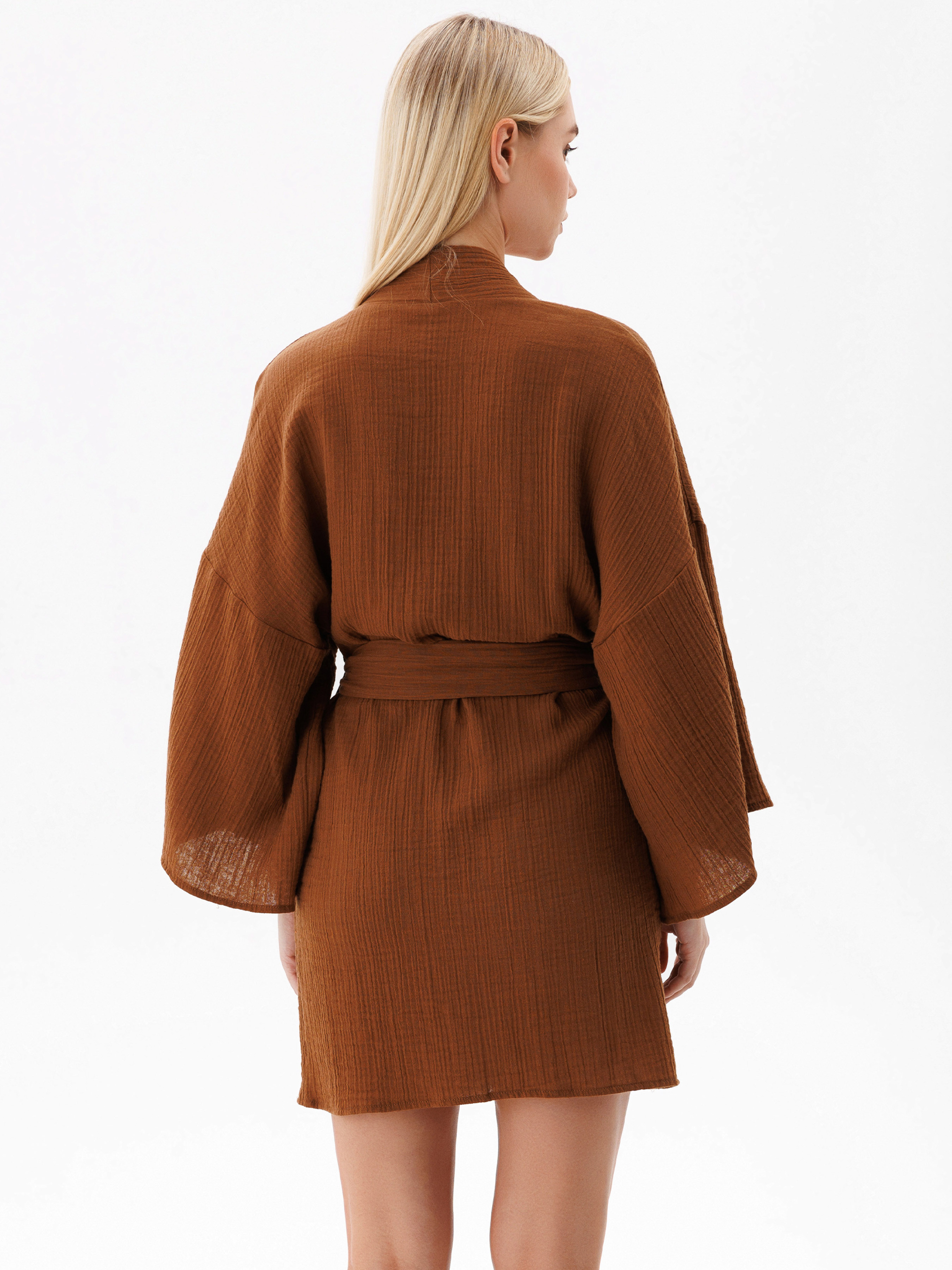 100% cotton. Жіночий халат з мусліну в стилі кімоно — це поєднання стилю та функціональності. Широкі рукави і запах роблять його не тільки зручним, а й дуже елегантним. Легкий та повітряний матеріал дарує відчуття комфорту та свободи рухів. Такий халат стане чудовим вибором для спокійних вечорів вдома або як частина вашого домашнього гардеробу для створення розслабленого, але стильного вигляду.