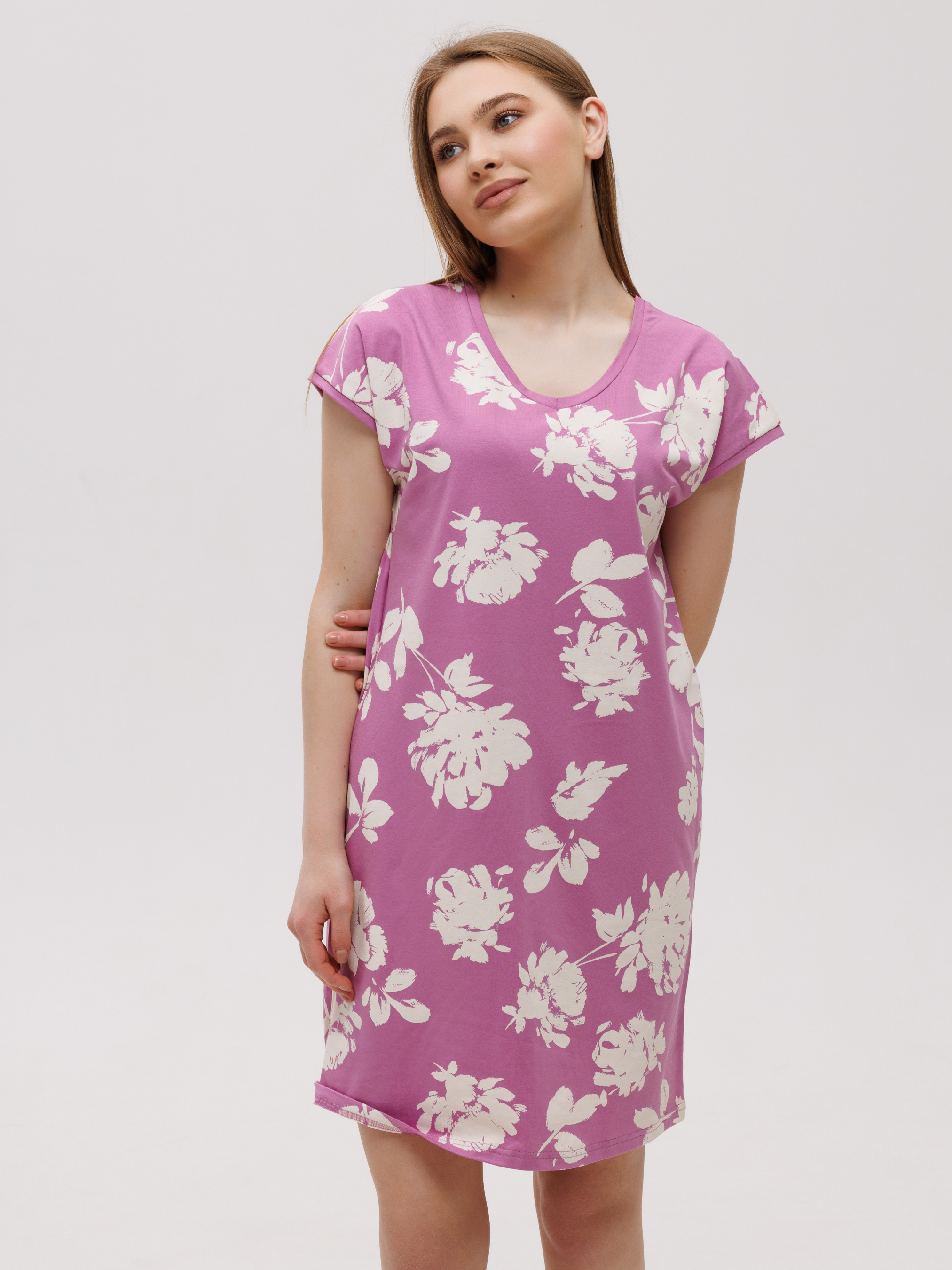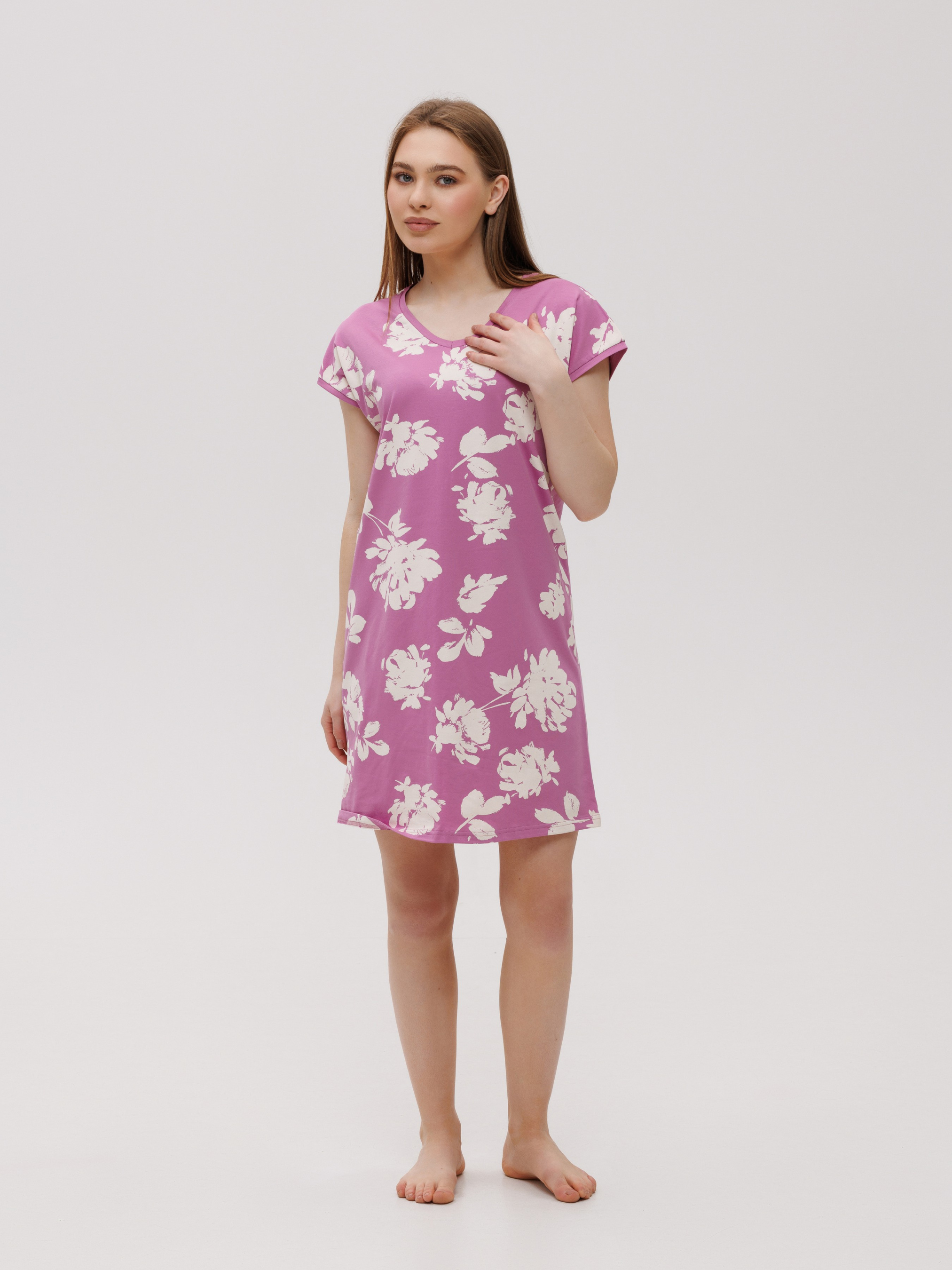 Наслаждайтесь безмятежным сном в нашей изысканной ночной рубашке. Мягкая хлопчатобумажная ткань с добавлением эластана обеспечит вам непревзойденный комфорт и свободу движений в течение всей ночи. Почему вам понравится эта ночная рубашка: * Естественная мягкость хлопка: Позволяет коже дышать, даря ощущение свежести и уюта. * Эластичность для идеальной посадки: Эластан в составе ткани обеспечивает мягкое облегание и не сковывает движения. * Очаровательный цветочный принт: Нежный узор придает женственности и романтичности вашему домашнему образу. * Удобный крой: Простой и элегантный фасон обеспечивает максимальный комфорт во время сна. * Легкость в уходе: Ткань не требовательна в уходе, хорошо стирается и сохраняет свой вид. Окунитесь в мир сладких сновидений в этой прекрасной ночной рубашке. Закажите ее уже сегодня, чтобы почувствовать нежность и комфорт в любой момент!