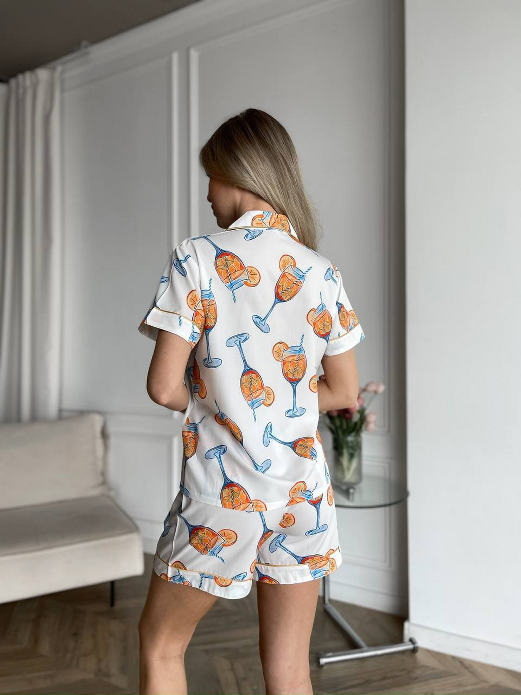 Женская пижама Nova Vega. В комплект входит рубашка и шортики. Рубашка на пуговицах с коротким рукавом. Удобные шортики на высокой посадке. Комплект выполнен из приятного материала софт, который нежно ощущается на теле. Идеальный вариант для сна, отдыха или домашнего вайба с эстетикой. Пижама украшена милым принтом. S: грудь 80-86, бедра 86-93 см M: грудь 87-92, бедра 94-99 см L: грудь 93-98, бедра 99-104 см XL: 98-104 cc, слегка 105-111 см