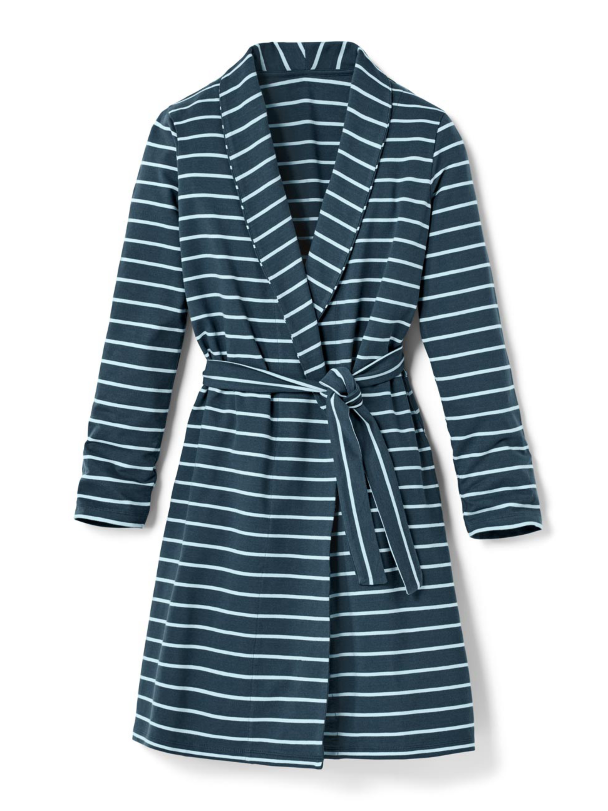 Мягкая смесь хлопка и эластана С воротником и ремешком Длина до колена Качественный фирменный эластан обеспечивает долговечность и высокую стойкость изделия во время стирки. Этот халат способствует поддержке фермеров. Проверено содержание вредных веществ внешними аккредитованными учреждениями Цвет С темно-сине-голубыми полосами материал 96% хлопок, 4% эластан Размер 40/42: ПОГ: 54 см, Полуобхват бедер: 60 см, Длина рукава: 61 см, Длина: 103 см, Товары бренда Tchibo обычно не имеют бумажных этикеток. В большинстве случаев внутренние бирки с составом ткани, названием бренда или размером срезаны частично или полностью.