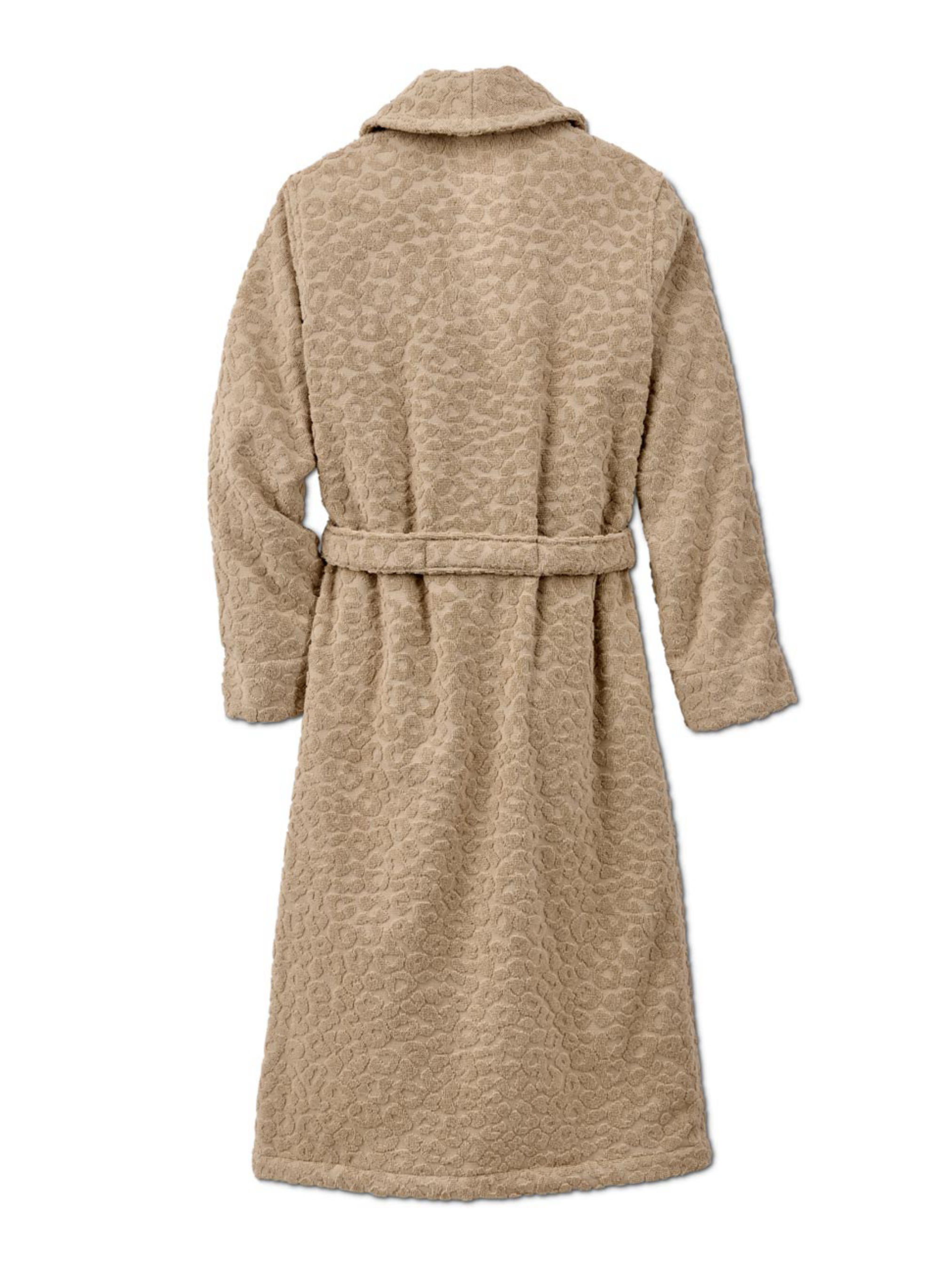 Чрезвычайно мягкая и впитывающая влагу, идеально подходит после душа или купания. Наружная часть с жаккардовым леопардовым принтом в текстуре "high-low" Внутри: особенно уютная и мягкая махровая ткань. Высококачественный органический хлопок С поясом-завязкой 2 накладных кармана Петля для подвешивания внутри Сертифицировано GOTS Кросс Приталенный крой Цвет Бежево-натуральный белый Материал 100% органический хлопок ПОГ: 50 см, Полуобхват бедер: 53 см, Длина рукава: 59 см, Длина: 108 см, Товары бренда Tchibo обычно не имеют бумажных этикеток. В большинстве случаев внутренние бирки с составом ткани, названием бренда или размером срезаны частично или полностью.