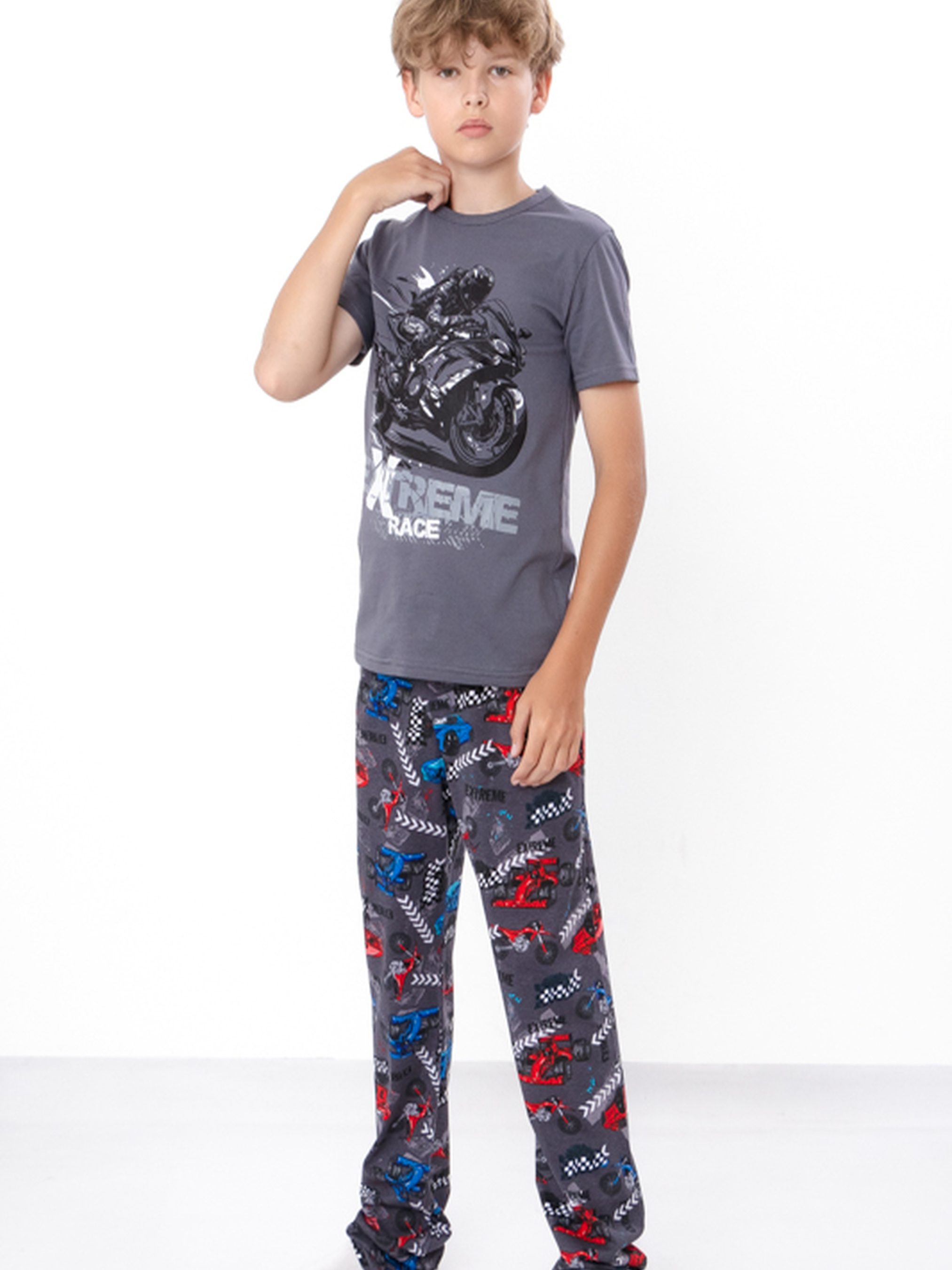 Полотно: кулір принтований, кулір однотонний Склад полотна: 100% бавовна Зріст: 140-170 Забезпечте своєму хлопчику максимальний комфорт і стиль з підлітковою піжамою. Ця піжама для хлопчика виготовлена з м'якого і дихаючого матеріалу, що гарантує зручність та тепло протягом ночі. Вона має сучасний дизайн та комфортний крій, що підходить для спокійного сну та домашнього відпочинку. Піжама зручна для носіння і легка в догляді, що робить її ідеальним вибором для кожного дня. Замовте цю піжаму для вашого хлопчика і подаруйте йому якісний відпочинок.