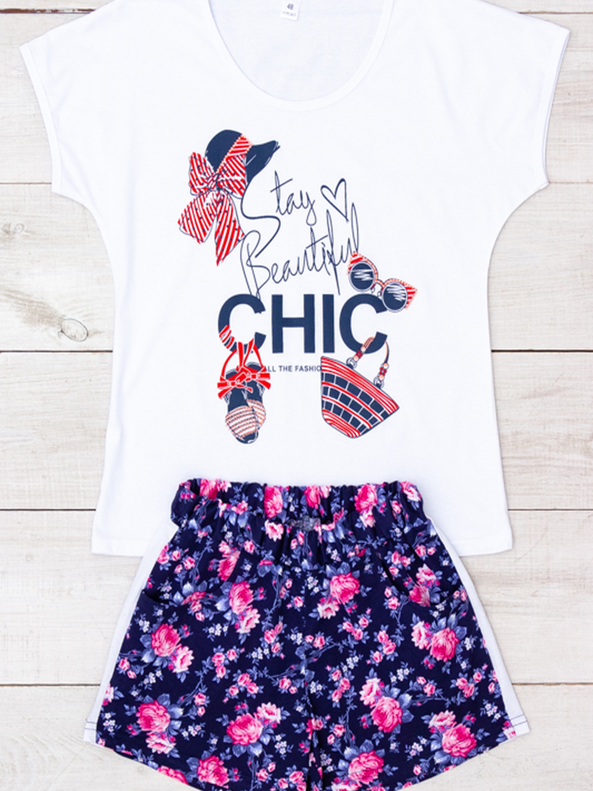 Полотно: кулір принтований, кулір однотонний Склад полотна: 100% бавовна Розмір: 42-54 Жіноча піжама (футболка + шорти) — це комфорт і стиль для домашнього відпочинку та сну. М’яка трикотажна тканина приємна до тіла, добре дихає та не сковує рухів. Футболка з коротким рукавом має вільний крій і яскравий принт, що додає настрою. Шорти на резинці — зручні, легкі та ідеальні для літніх ночей. Піжама легко переться, не втрачає кольору й форми.
