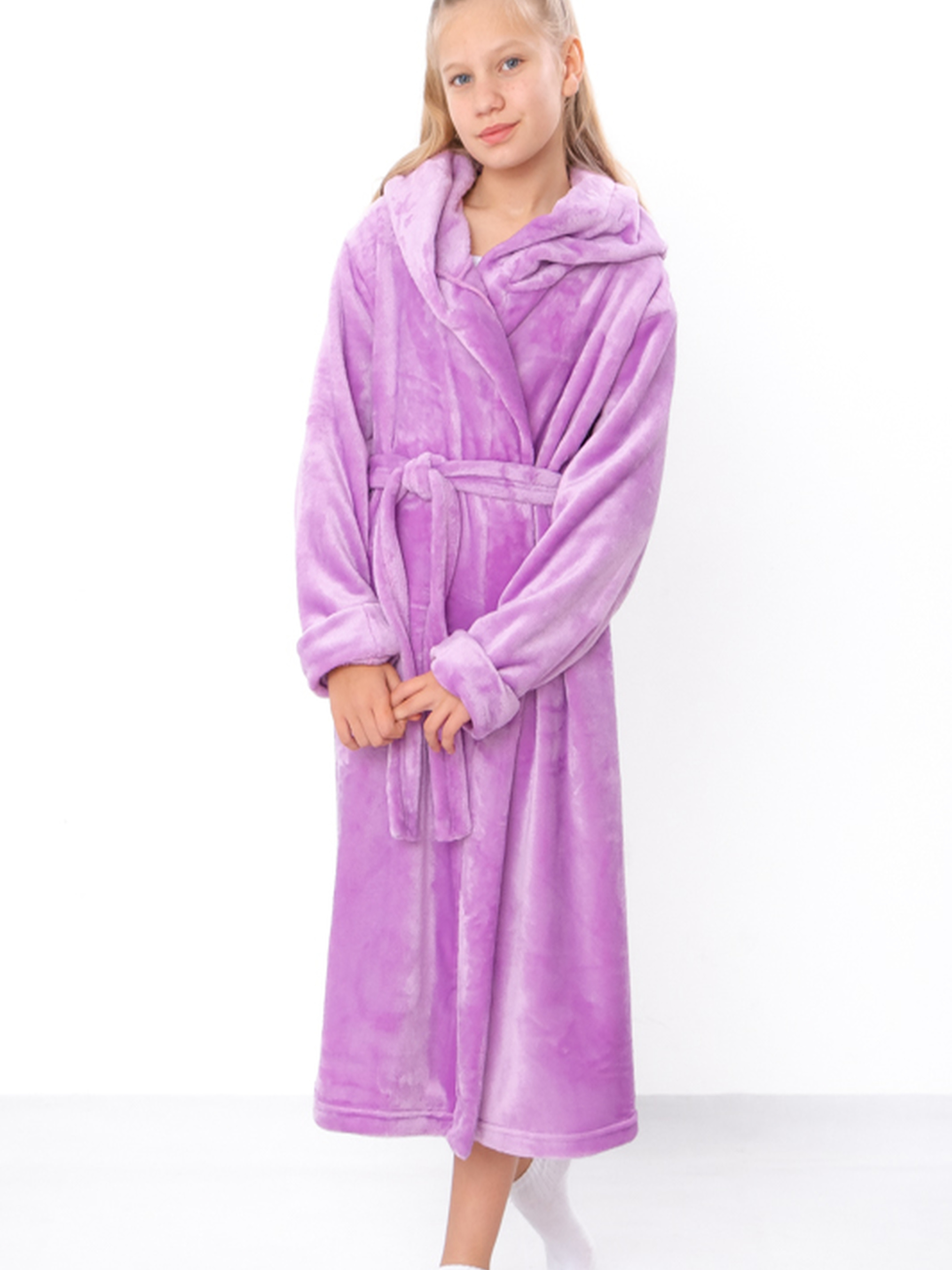 Полотно: махра однотонна Склад полотна: 100% поліестер Розмір: 104-170 Махровий халат для дівчинки з капюшоном — це поєднання затишку, практичності та ніжного стилю. Виготовлений із м’якої, приємної на дотик махри, він чудово вбирає вологу та забезпечує комфорт після купання або під час домашнього відпочинку. Модель має зручний запах, капюшон і пояс у комплекті, що дозволяє легко регулювати посадку та надійно фіксувати халат. Однотонний дизайн виглядає стильно та акуратно, підходить для щоденного використання. Висока якість матеріалів і пошиття гарантують довговічність навіть після частих прань. Цей халат подарує дитині тепло, комфорт і відчуття турботи щодня.