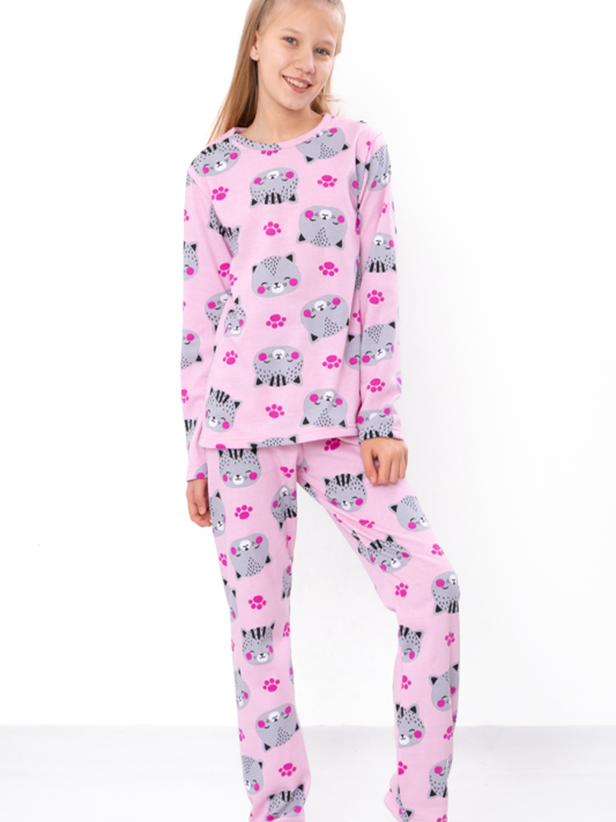 Полотно: начос принтований, начос однотонний Склад полотна: 100% бавовна Зріст: 140-170 Піжама для дівчинки-підлітка – комфортний одяг для сну та відпочинку вдома. М'яка тканина забезпечує приємні відчуття на шкірі, а вільний крій дозволяє вільно рухатись під час сну. Ідеальна для щоденного використання, піжама має стильний дизайн, що сподобається підліткам. Піжама легко доглядається і не втрачає форму після прання, що робить її чудовим вибором для батьків. Ідеально підходить для прохолодних ночей та комфортного відпочинку.