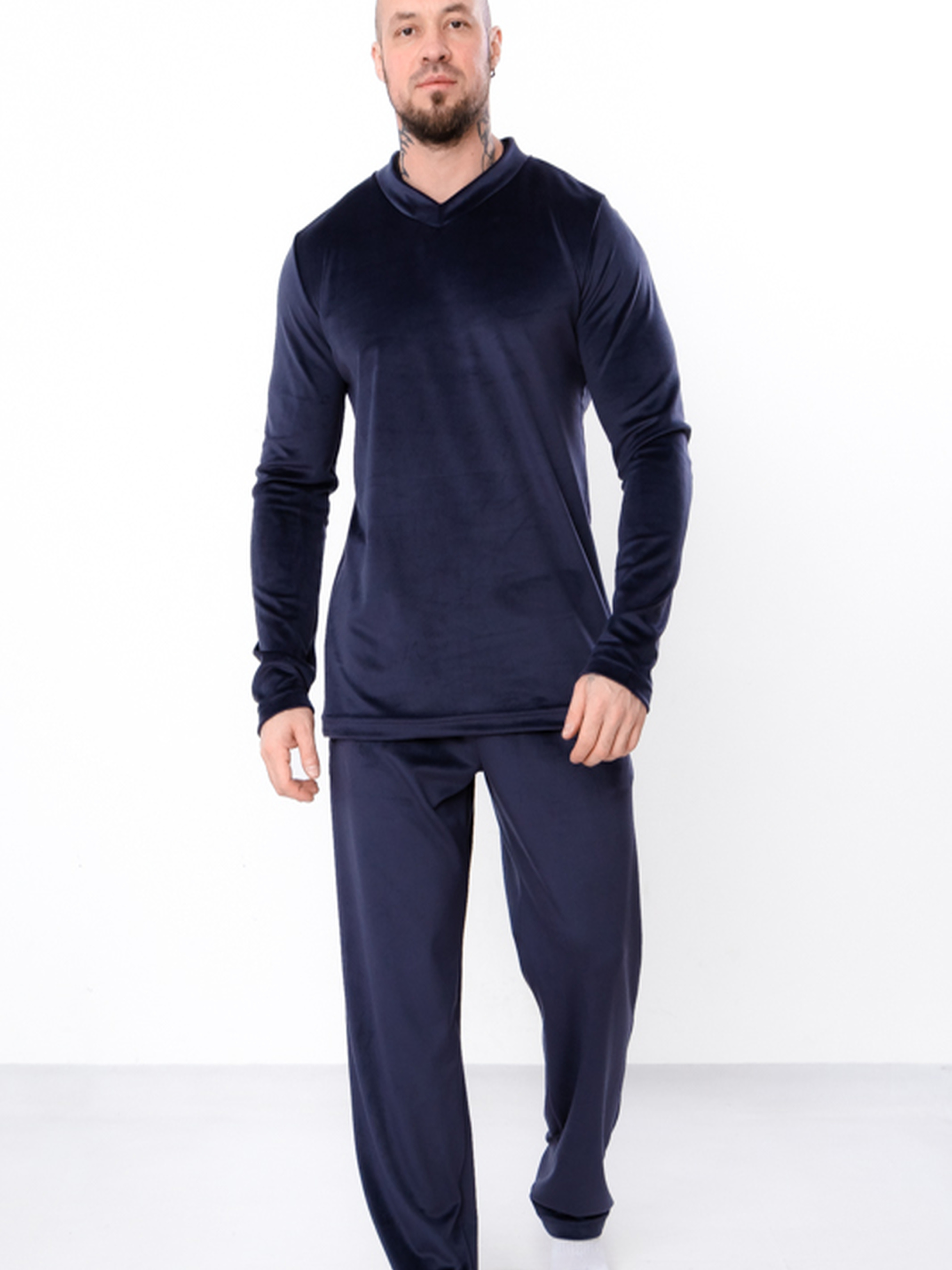 Полотно: велюр плюш Склад полтна: 80% бавовна, 20% поліестер Розмір:44-62 Стильна чоловіча піжама або домашній костюм - прекрасний подарунок чоловікові. Це дуже зручна річ, яка дає відчуття затишку і комфорту. У такій піжамі буде зручно не тільки спати в прохолодні ночі міжсезоння, а й цілком комфортно займатися домашніми звичними справами, перебуваючи вдома. Костюм пошитий з трикотажного полотна преміум класу - велюр, склад 90% бавовна 10% лайкра. Піжама не має гудзиків, блискавок та інших застібок, її зручно і швидко надягати. Складається комплект з двох частин: верхня частина - це пуловер з V-подібним вирізом, нижня частина - штани прямого крою, злегка завужені до низу. Піжама упакована у фірмову упаковку. Зробіть чудовий подарунок собі або своїм близьким! Догляд: прати одяг з велюру можна в машинці, проте в делікатному режимі при температурі 30 градусів. Рекомендуємо використовувати м'які миючі засоби без різних хімічних добавок. Щоб не пошкоджувати однорідність ворсу і його напрямків, велюр краще дбайливо віджимати руками.