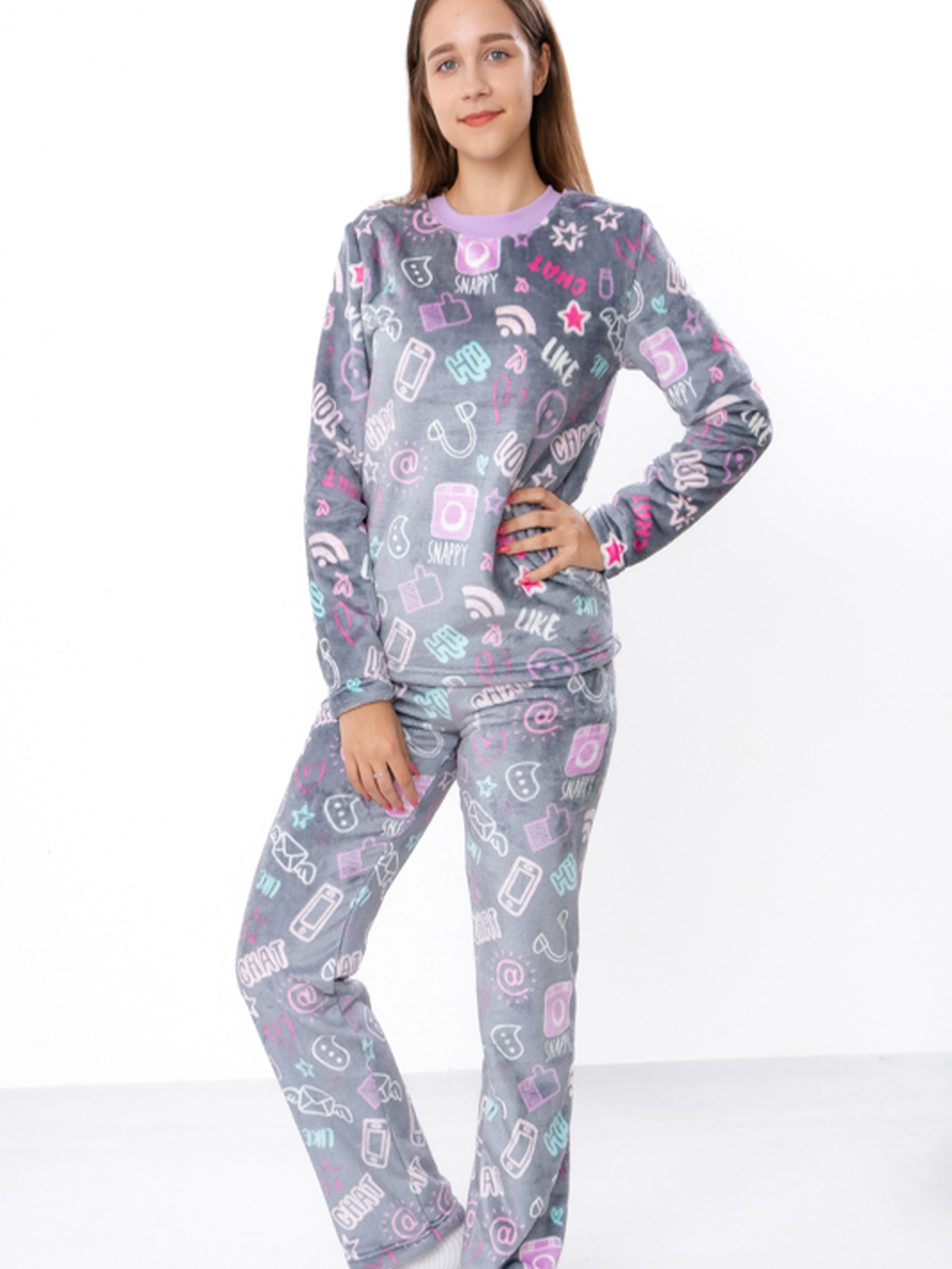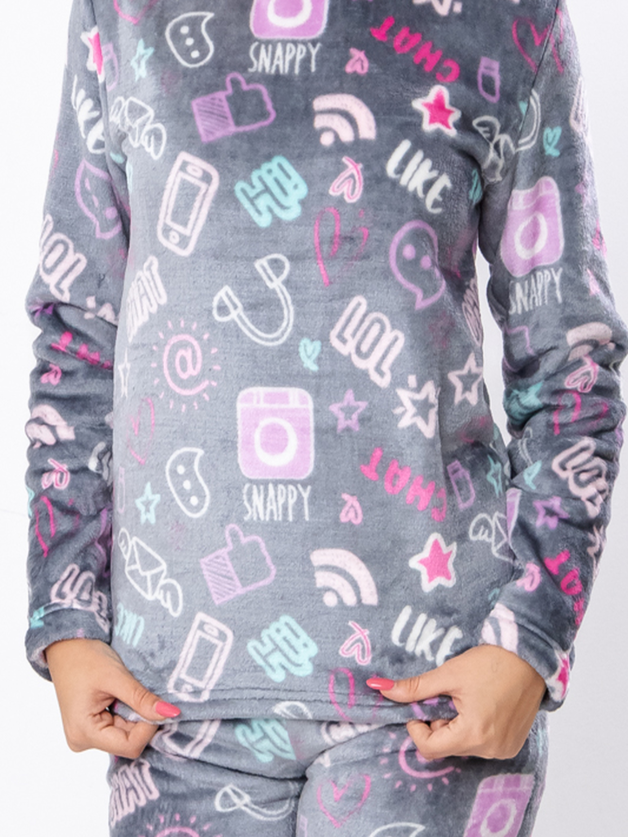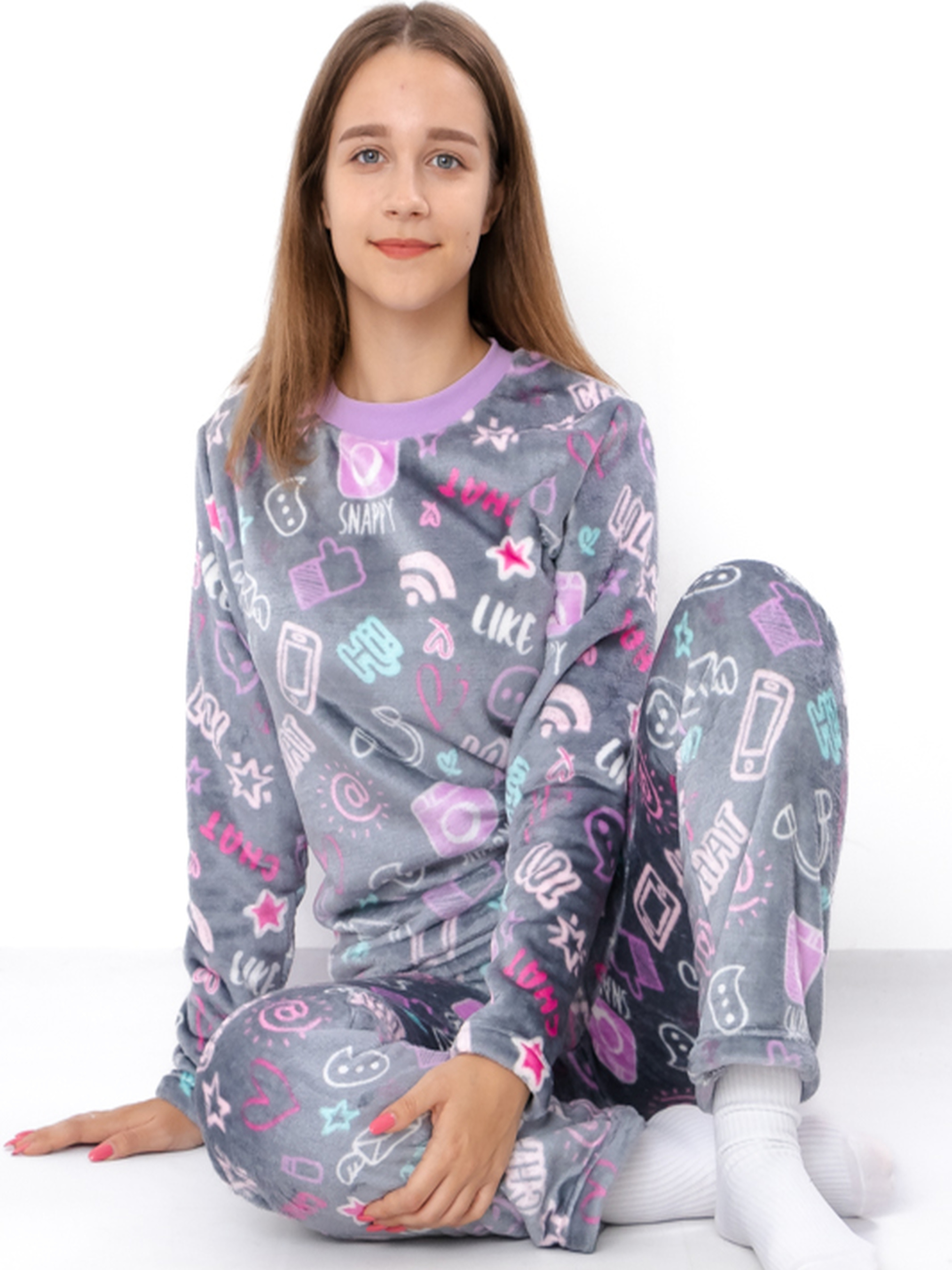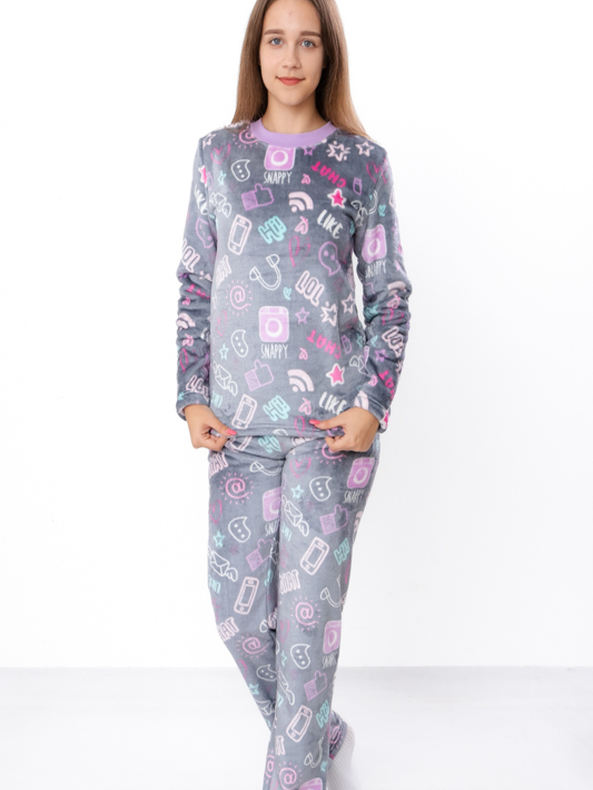 Полотно: махра принтована Склад полотна: 100% поліестер Рост: 140-170 Зимова піжама для дівчинки-підлітка з принтом, виготовлена з м'якого полотна велсофт (махра). Склад 100% поліестер гарантує високу зносостійкість, швидке прийняття температури тіла та відмінну терморегуляцію. Цей теплий костюм багатофункціональний: його можна використовувати як піжаму для сну або як зручний повсякденний одяг для відпочинку вдома. Яскравий принт створює гарний настрій. Крій кофта та штани забезпечує максимальний комфорт. Доступна на зріст 140-170.