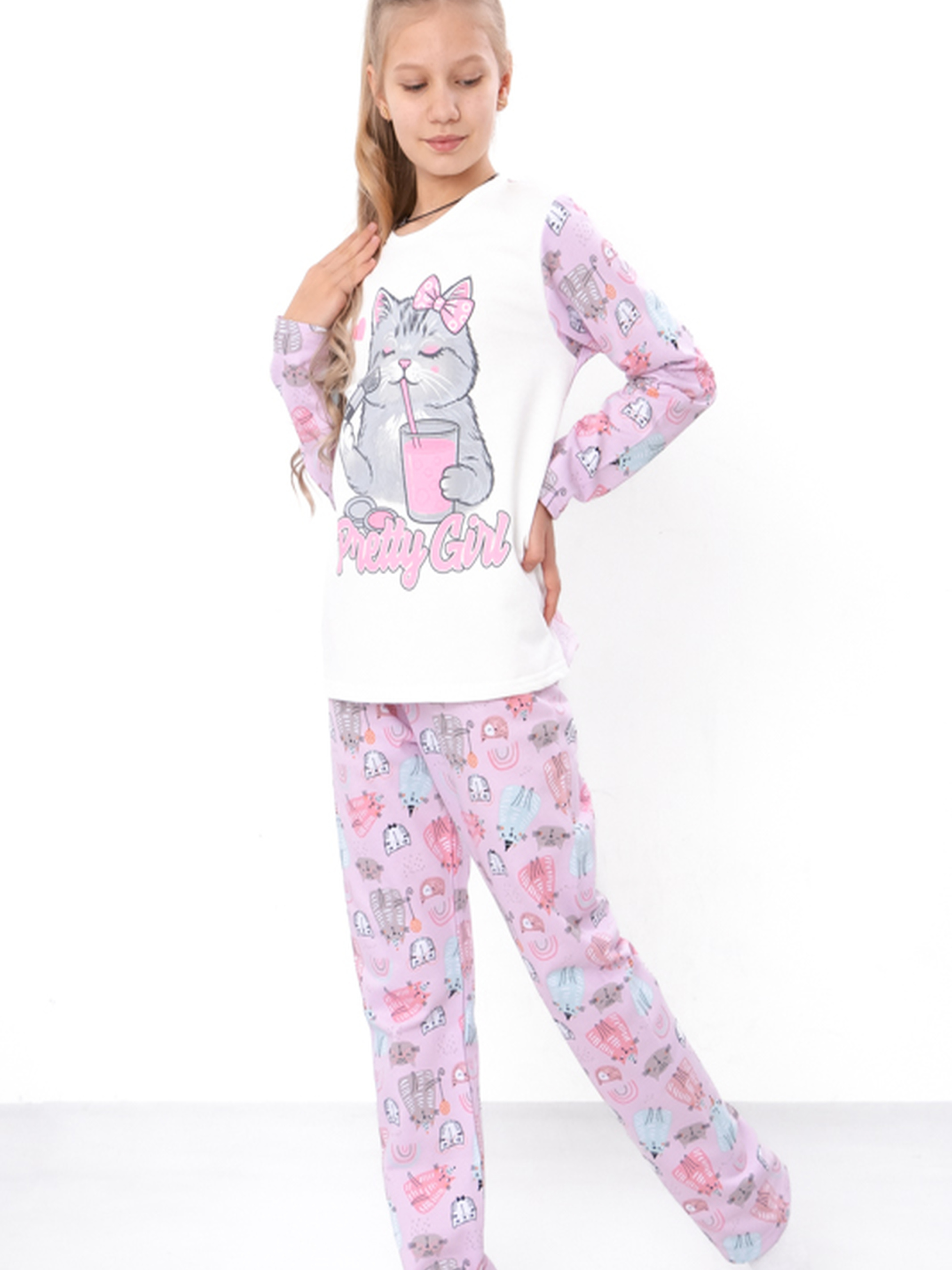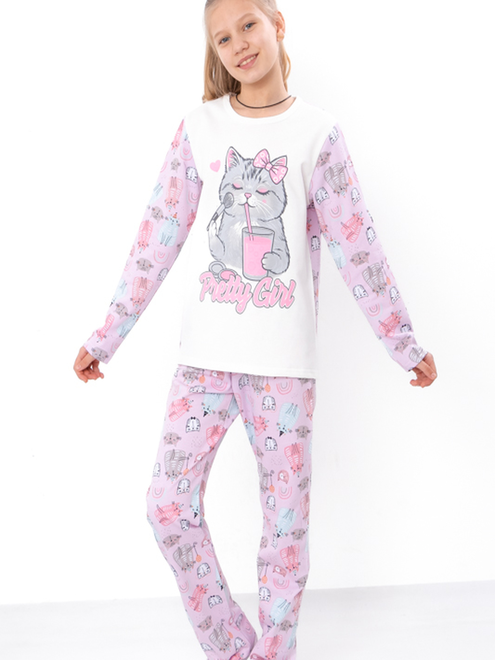 Полотно: начос принтований, начос однотонний Склад полотна: 100% бавовна Зріст: 140-170 Ця чудова піжама для підліткової дівчинки - ідеальний вибір для комфортного сну та відпочинку вдома. Виготовлена з м'якої, дихаючої тканини, вона забезпечить затишок і зручність під час нічного сну та прогулянок по дому. Завдяки своєму яскравому дизайну та привабливому малюнку, ця піжама стане улюбленою річчю в гардеробі кожної дівчинки. Ідеальний варіант для вечірніх посиденьок або вечірок з подружками. Придбайте зараз, щоб забезпечити вашій підлітковій принцесі найкращий сон та наймодніший вигляд!