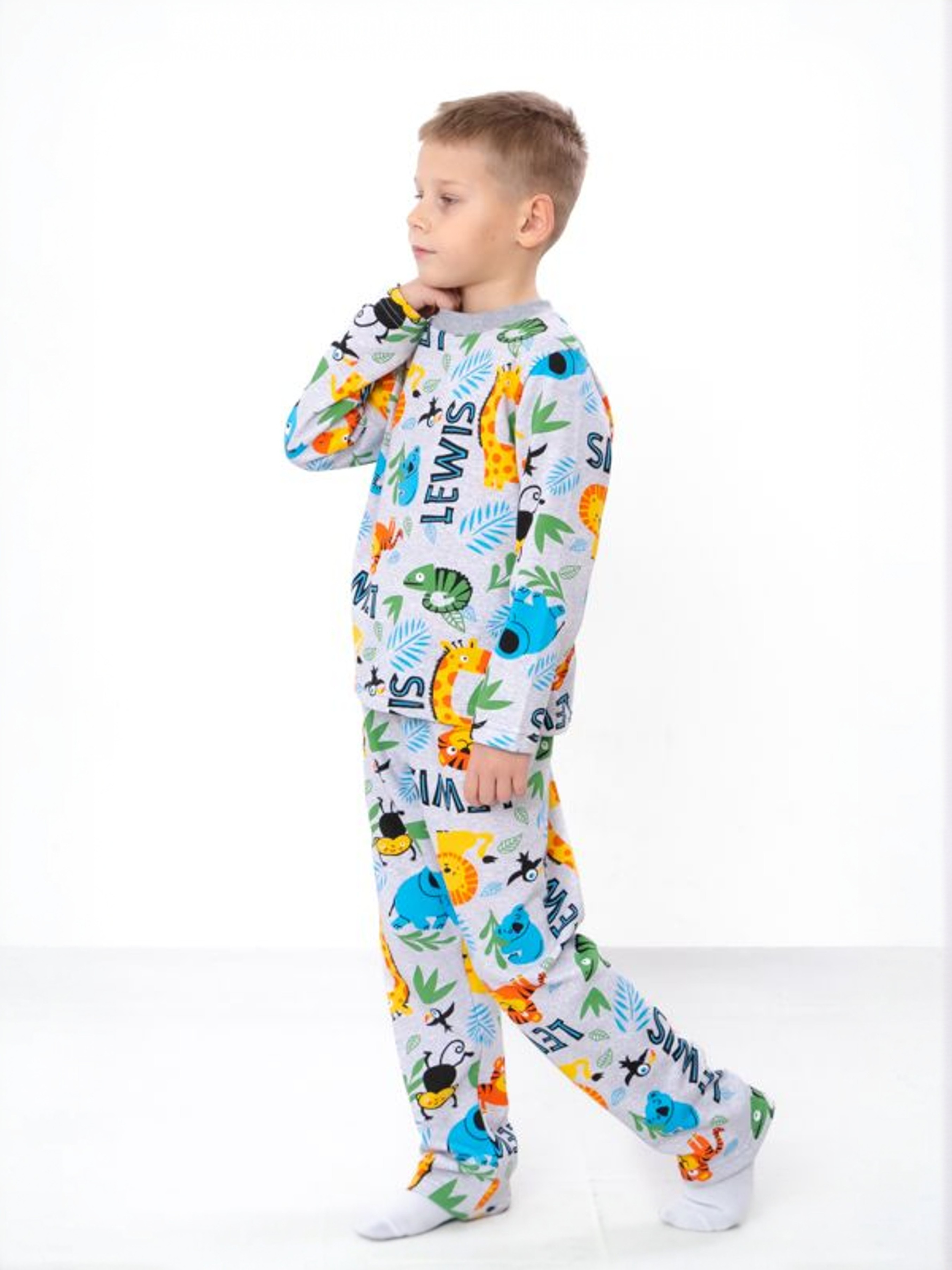 Тепла піжама для хлопчика (кофта та штани) на манжетах з принтом, Світло-сірий Носи Своє (6076-024-4) модель 6076-024-4-zvrqta-na-sromu