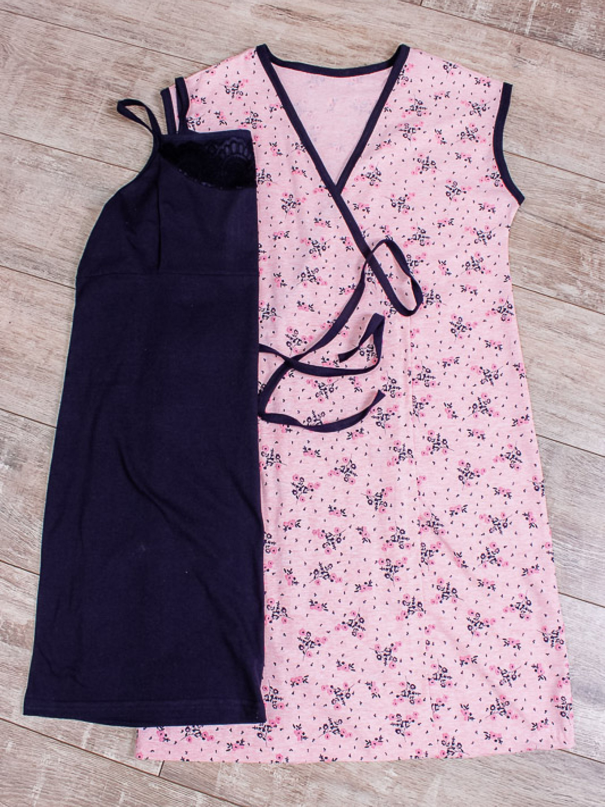 Полотно: кулір набивний кулір однотонний Склад полотна: 100% бавовна Розмір: 42-52 Для максимального відпочинку прекрасній половині людства потрібно не тільки розкішні меблі відповідна обстановка і постільні приналежності. Важливим предметом гардероба вважаються жіночі комплекти для дому. Цю річ можна носити практично в будь-який час підібравши відповідну модель. ТМ Носи Своє пропонує чергову новинку для милих дам прекрасний набір для відпочинку. Халатик і сорочка доповнюють один одного. Сорочечка підійде і для нічного відпочинку а халатик можна накидати зверху коли ви знаходитесь вдома. А також комплект можна використовувати для санаторіїв будинків відпочинку або брати з собою у відпустку. Дуже приємний до тіла м'який і практичний комплект невибагливий в догляді чудово переться! Догляд: прати при температурі 30 ° вручну або при делікатному режимі в пральній машині. Слабке віджимання. Сушка на свіжому повітрі без потрапляння прямих сонячних променів. Прасувати речі слабо нагрітою праскою з виворітного боку. Візьміть собі за правило виглядати бездоганно цілодобово і тоді вас ніхто не застане зненацька. Головне підберіть домашній костюм по фігурі стилю і сезону.