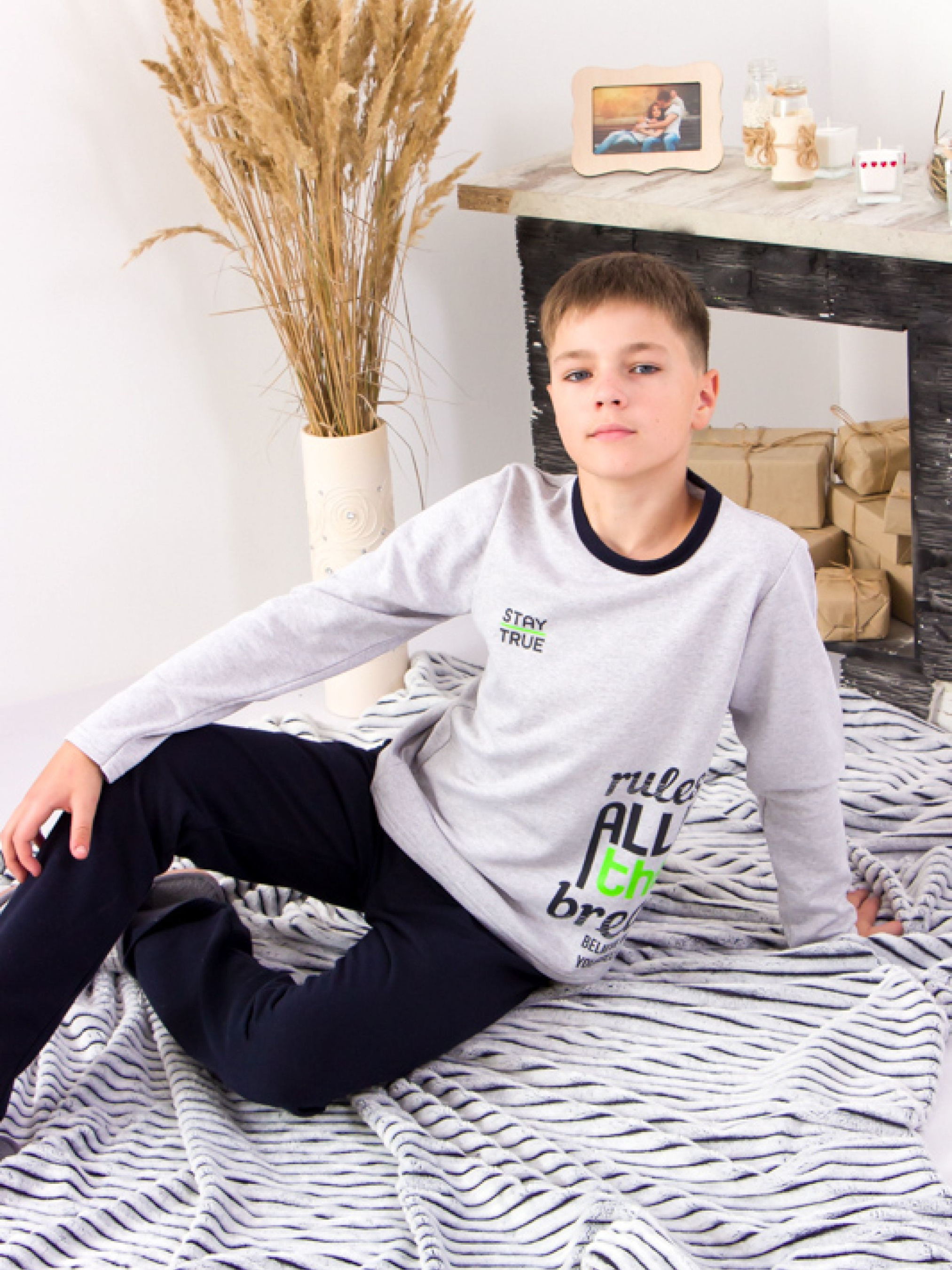 Полотно: начос однотонний Склад полотна: 100% бавовна Зріст: 140-164 Солодкий сон дитини багато в чому залежить від якості обраного нічного одягу. Забезпечить максимальний комфорт під час відпочинку піжама для хлопчика від відомого українського бренду Носи Своє. Що складається з штанів і кофти з круглим вирізом і довгими рукавами. Комплект виконаний в контрастних тонах а кофта в свою чергу прикрашена оригінальним принтом. Завдяки вільному крою якісному пошиттю та натуральной тканиниі відчувати себе в піжамі дитина буде комфортно - ніщо не потривожить її сон. Виготовлений одяг з матеріалу що складається з натуральних бавовняних волокон - він дуже приємний на дотик має гарну повітропроникність і гігроскопічність. Оцінять батьки також зносостійкість тканини - вона не втрачає яскравість кольору і первинні властивості навіть після численних прасувань. Догляд: дбайливе прання при t не більше 40С; прасувати при t не більше 110С з вивороту сушка без віджиму. Весь одяг вироблений фабрикою строго відповідає розмірній сітці. На бірочці вказано орієнтовний зріст дитини а в таблиці - реальні виміри які зробили наші менеджери. Приємних Вам покупок!