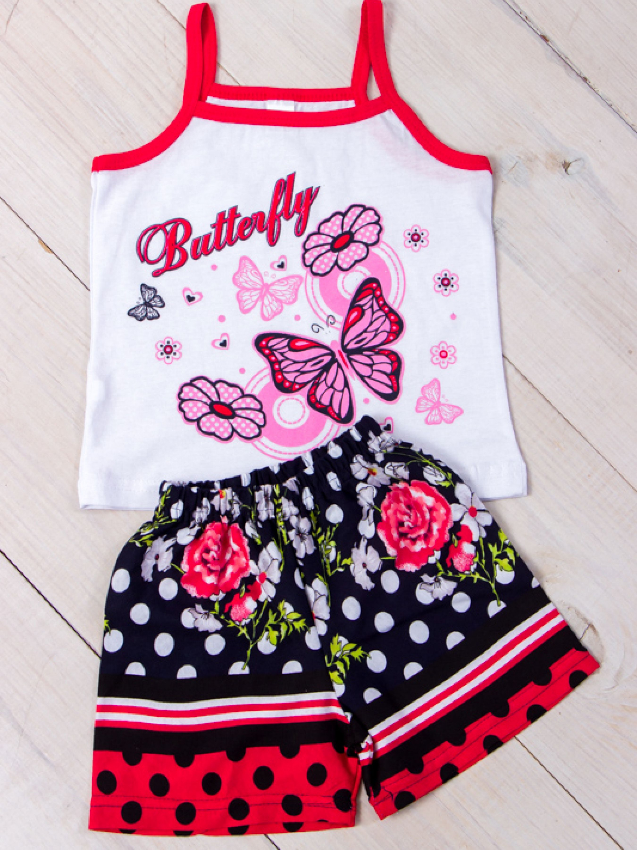 Комплект дівочковий виконаний з тонкого трикотажного полотна. Це "двієчка" що складається з шорт і топа. Топ виконаний з однотонного полотна на тонких брителях. Обробкою є кольорова бейка. Аплікація розташована на поличці топа надає ошатність і красу. Шорти короткі кольорові прямі. Комплект дуже зручний при носінні повітропроникний м'який комфортний.