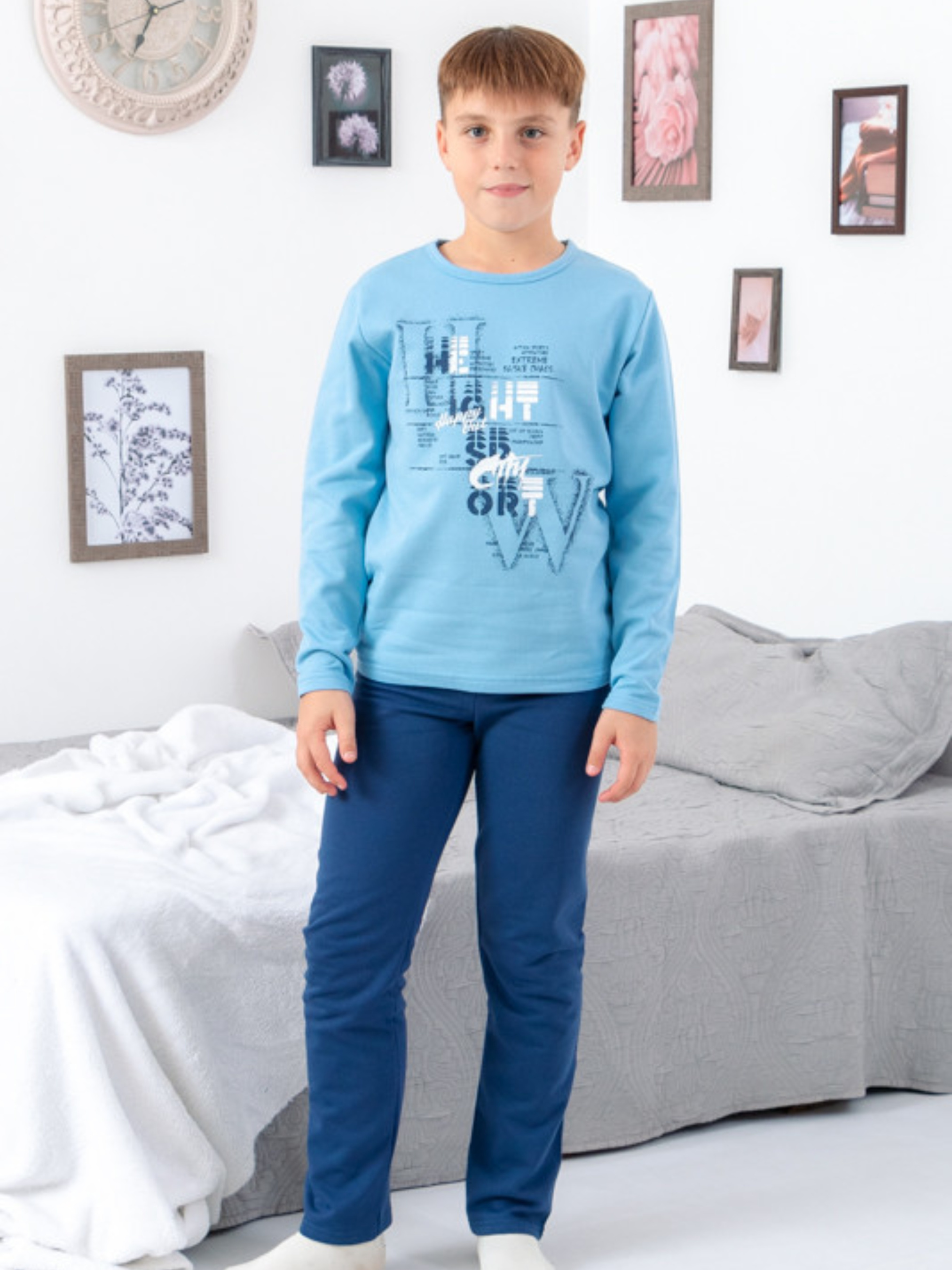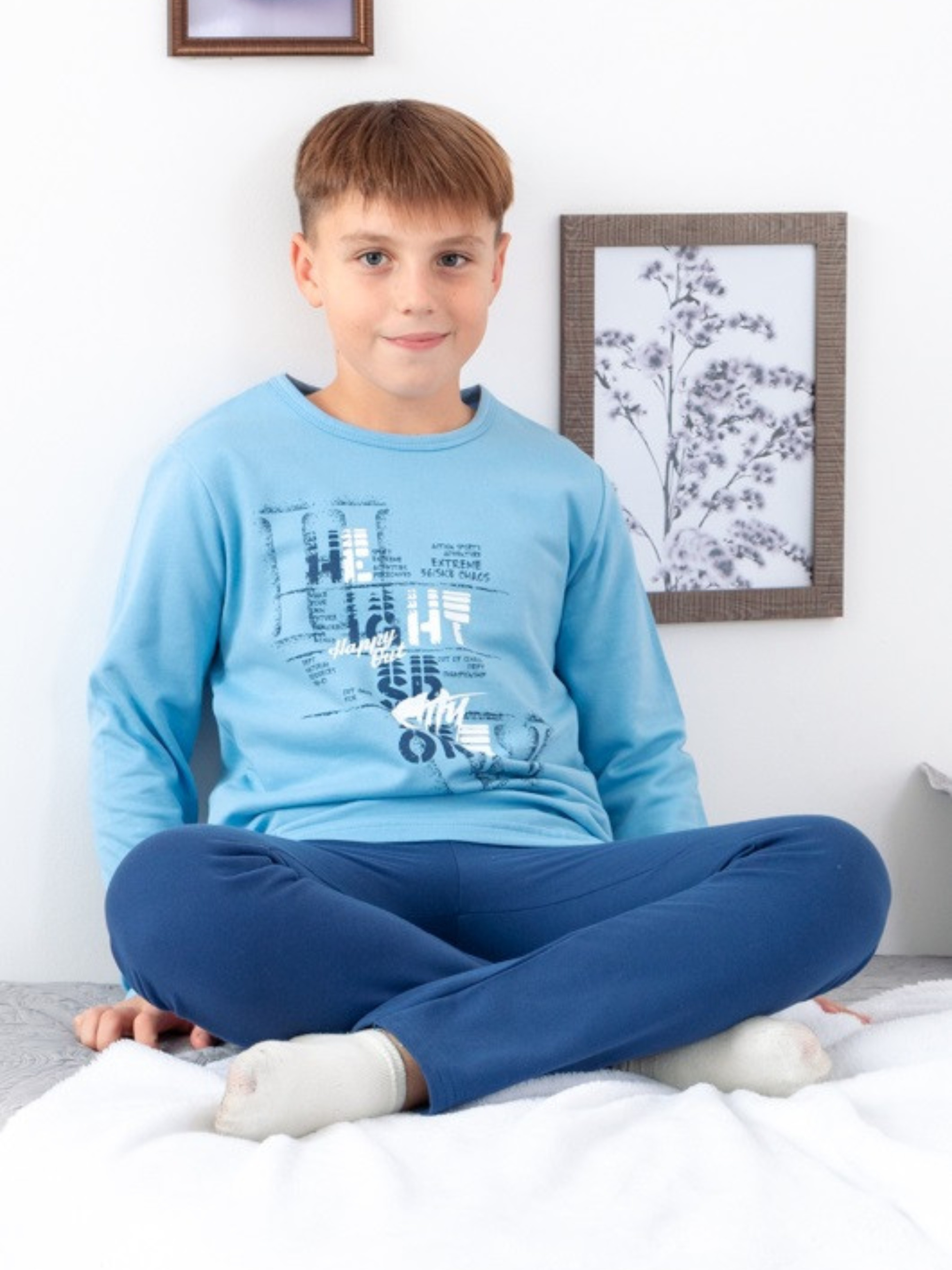 Полотно: начос однотонний Склад полотна: 100% бавовна Зріст: 140-164 Солодкий сон дитини багато в чому залежить від якості обраного нічного одягу. Забезпечить максимальний комфорт під час відпочинку піжама для хлопчика від відомого українського бренду Носи Своє. Що складається з штанів і кофти з круглим вирізом і довгими рукавами. Комплект виконаний в контрастних тонах а кофта в свою чергу прикрашена оригінальним принтом. Завдяки вільному крою якісному пошиттю та натуральной тканиниі відчувати себе в піжамі дитина буде комфортно - ніщо не потривожить її сон. Виготовлений одяг з матеріалу що складається з натуральних бавовняних волокон - він дуже приємний на дотик має гарну повітропроникність і гігроскопічність. Оцінять батьки також зносостійкість тканини - вона не втрачає яскравість кольору і первинні властивості навіть після численних прасувань. Догляд: дбайливе прання при t не більше 40С; прасувати при t не більше 110С з вивороту сушка без віджиму. Весь одяг вироблений фабрикою строго відповідає розмірній сітці. На бірочці вказано орієнтовний зріст дитини а в таблиці - реальні виміри які зробили наші менеджери. Приємних Вам покупок!