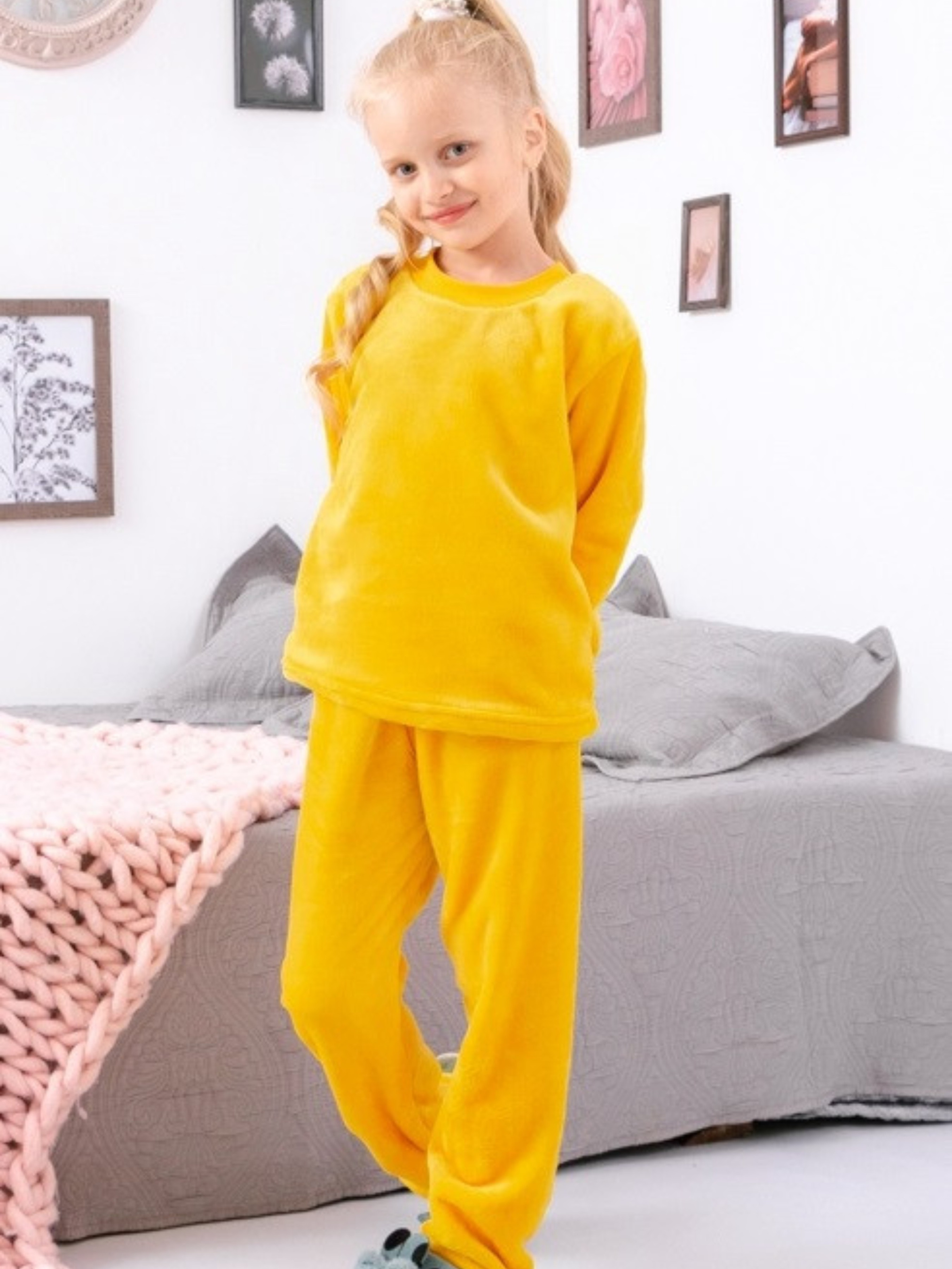 Полотно: махра однотонна Склад полотна: 100% поліестру Зріст: 104-134 Відмінним вибором одягу для сну дівчаток стане піжама від українського виробника Носи Своє. У пошитті виробу використовується полотно - велсофт (махра). Тепла і зручна піжама гарантія міцного і здорового сну вашої дитини а яскраві кольори допомагають створити гарний настрій. Багатофункціональна річ яку можна одягати як теплий костюм для повсякденного відпочинку так і як піжаму яка зігріє вашу дитину в холодні осінні і зимові вечори. Полотно велсофт має відмінну терморегуляцією швидко приймає температуру тіла і зберігає тепло не втрачає форму і колір після численних прань. P.S. Прати вироби в машині або вручну в прохолодній воді (не вище 30 С). При пранні користуватися нейтральними миючими засобами. Не застосовувати пральні порошки що містять хлор або відбілювачі. Вироби можна не прасувати. Прим'яти ворс для відновлення форми потримати над парою. Весь одяг вироблений фабрикою відповідає розмірній сітці. Знайти розмірну сітку Ви зможете на кожній сторінці з товаром. На етикетці вказано орієнтовний ріст дитини а в таблиці - реальні виміри які зробили наші менеджери. Приємних Вам покупок!