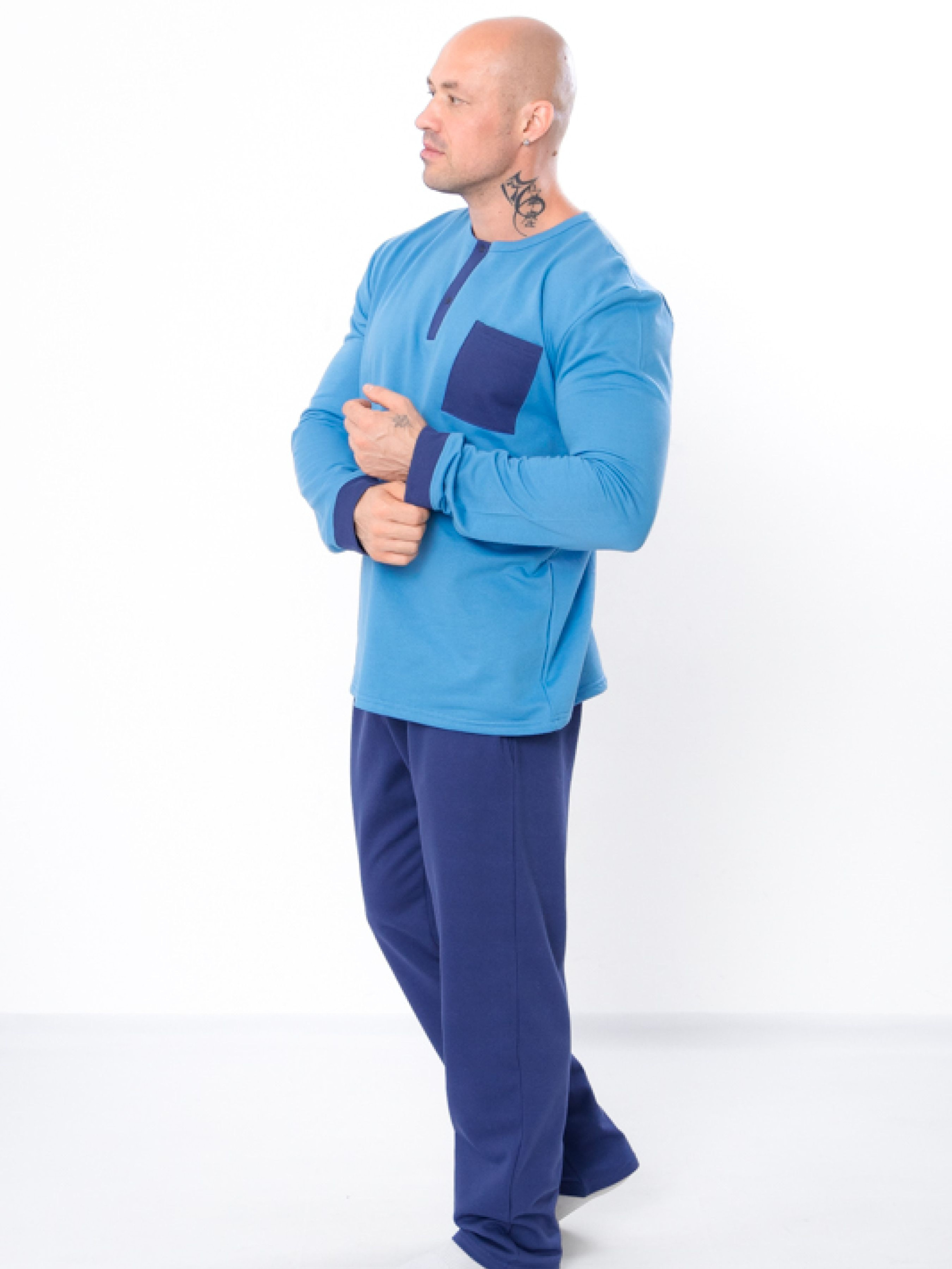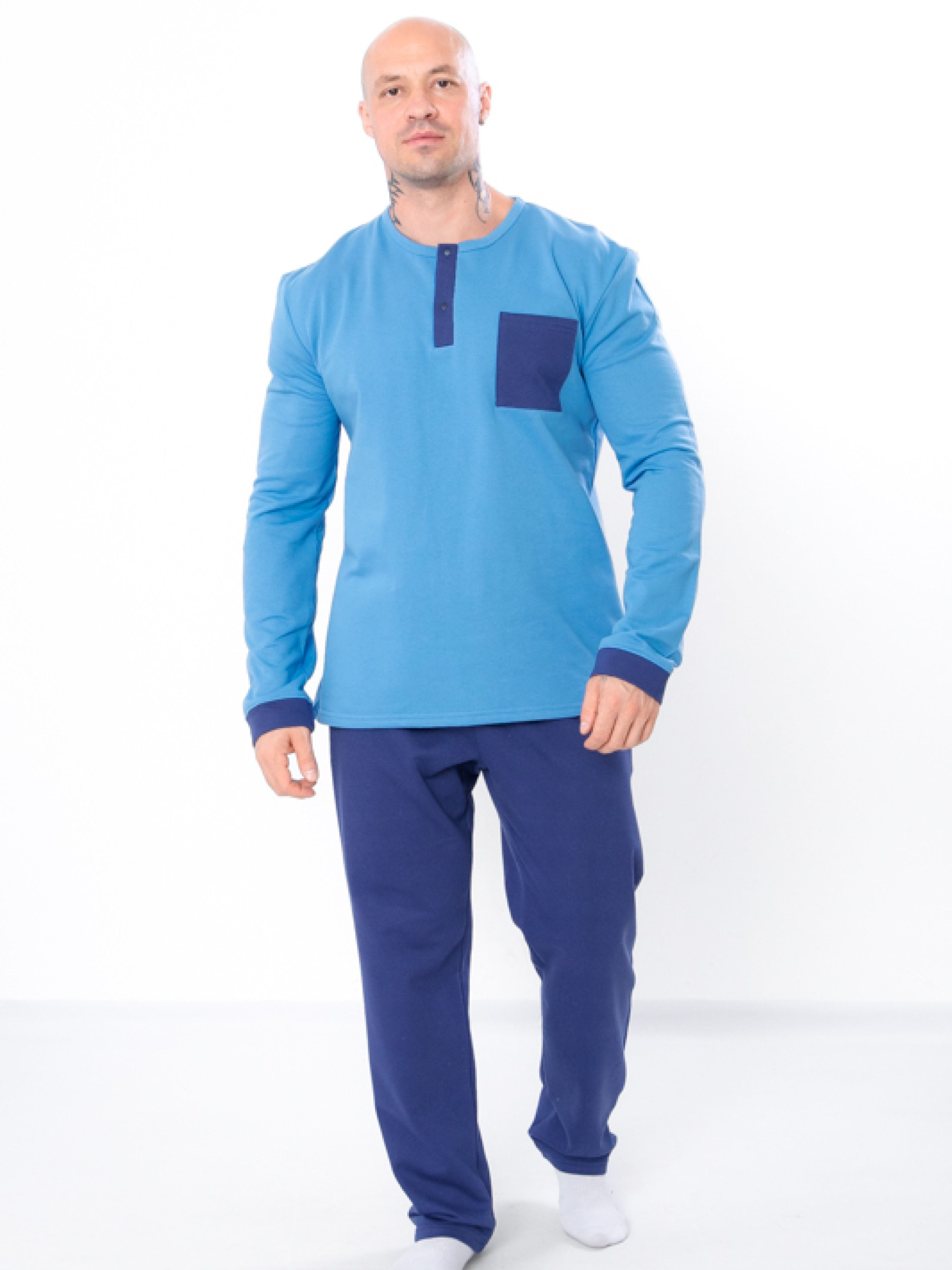 Полотно: начос однотонний Склад полотна: 100% бавовна Розмір: 46-58 Чоловіча піжама з м'якого однотонного і набивного начосу. У наборі - зручні штани на резинці, доповнені кишенями, і кофта з довгим рукавом. Кофта декорована кишенею на грудях, на планці застібається на кнопки. Якісний легкий матеріал забезпечить максимально комфортний і приємний сон. Стильний чоловічий комплект не тільки дуже зручний, але і виконаний в ефектному дизайні. Цей комплект добре підходить для сну і домашнього відпочинку.