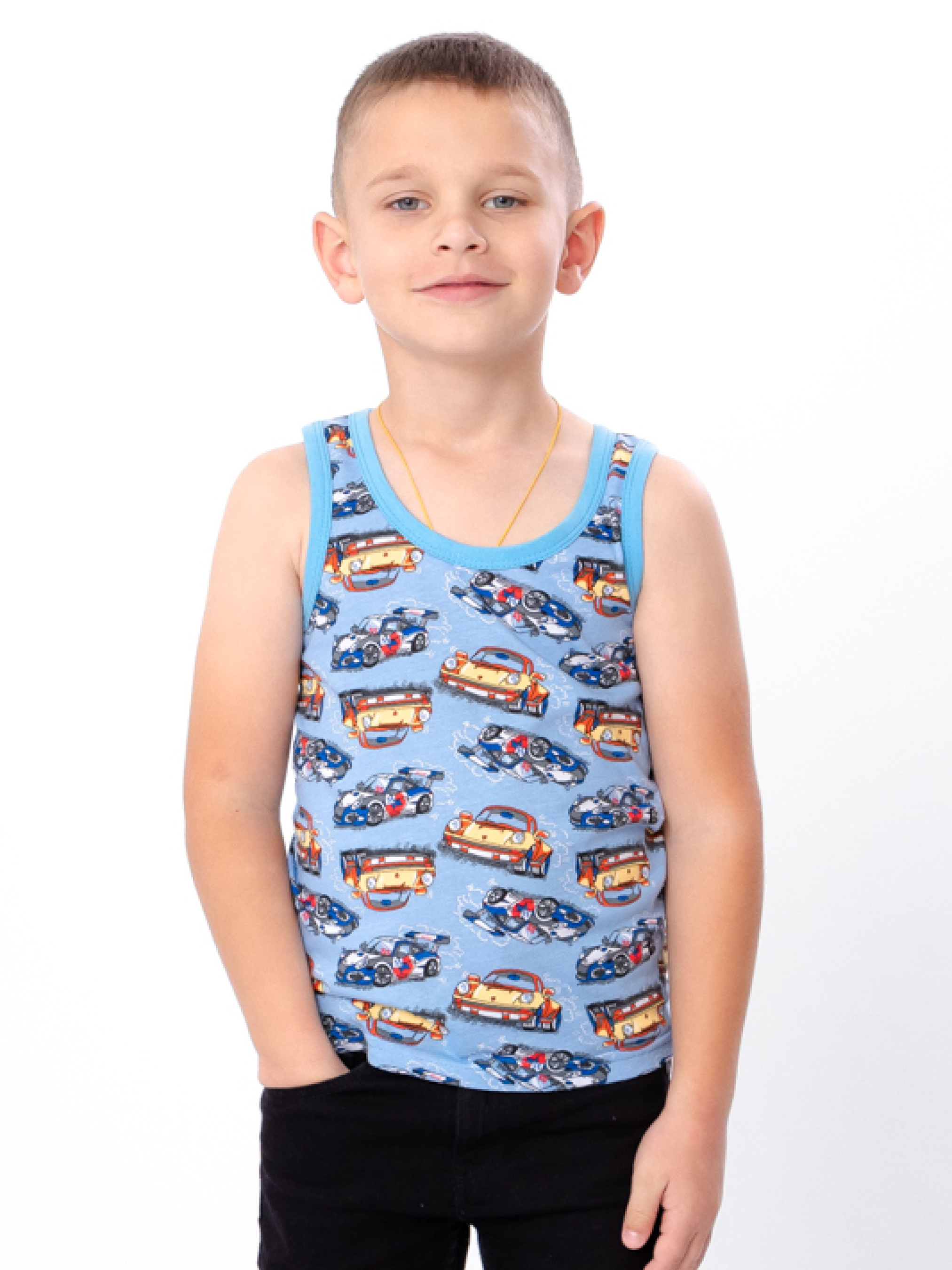 Полотно: кулір принтований Склад полотна: 100% бавовна Зріст: 92-134 Майка для хлопчика - це ідеальне рішення для стильного і комфортного повсякденного носіння. Виготовлена з м'якої, дихаючої тканини, вона забезпечує відмінний комфорт і свободу рухів. Ця майка підходить для школи, спортивних занять або активного відпочинку. Її простий дизайн і різноманітність кольорів дозволяють легко поєднувати з джинсами, шортами чи спортивними брюками. Обирайте цю майку для вашого хлопчика і забезпечте йому комфортний і сучасний вигляд кожного дня.