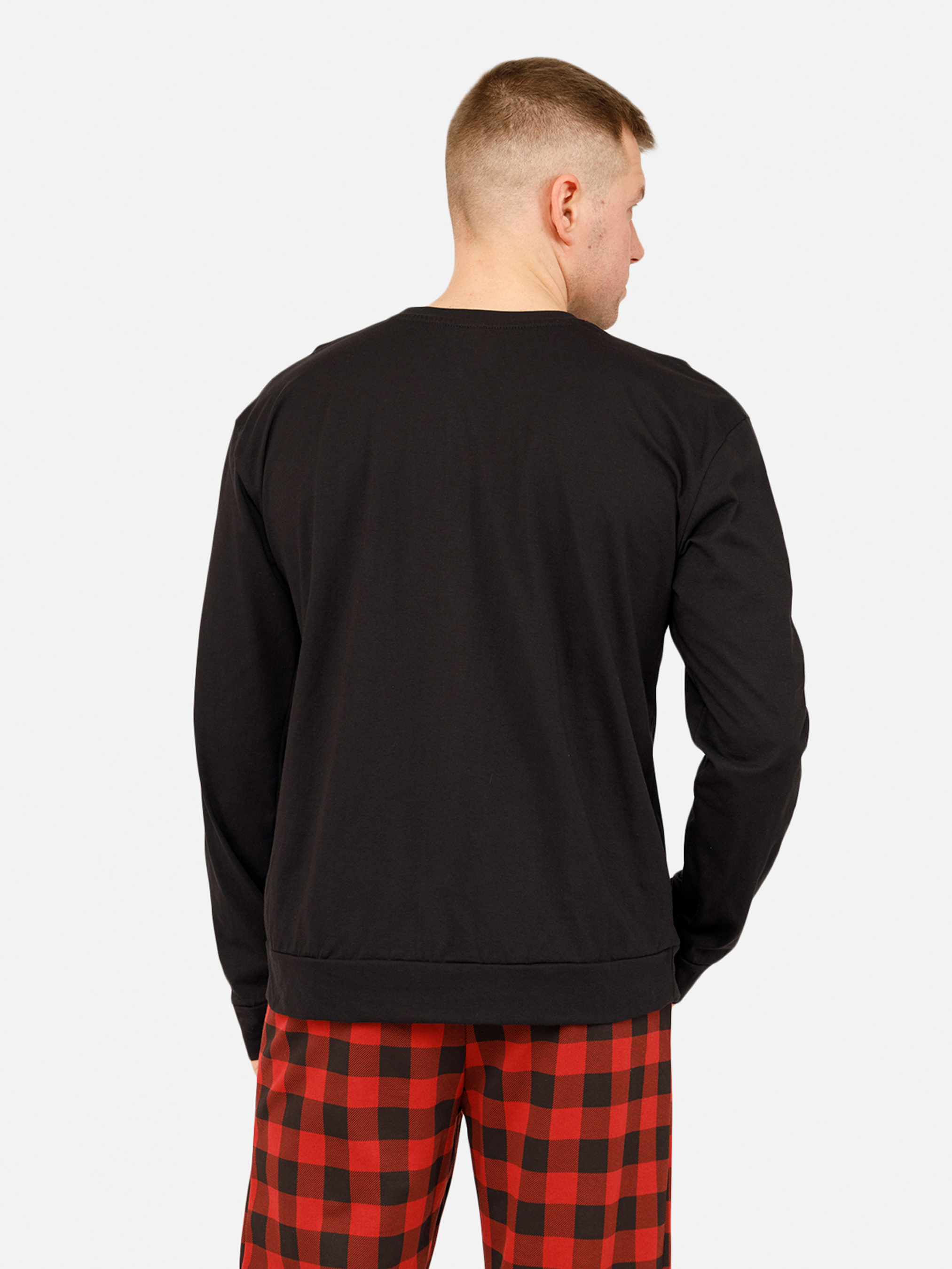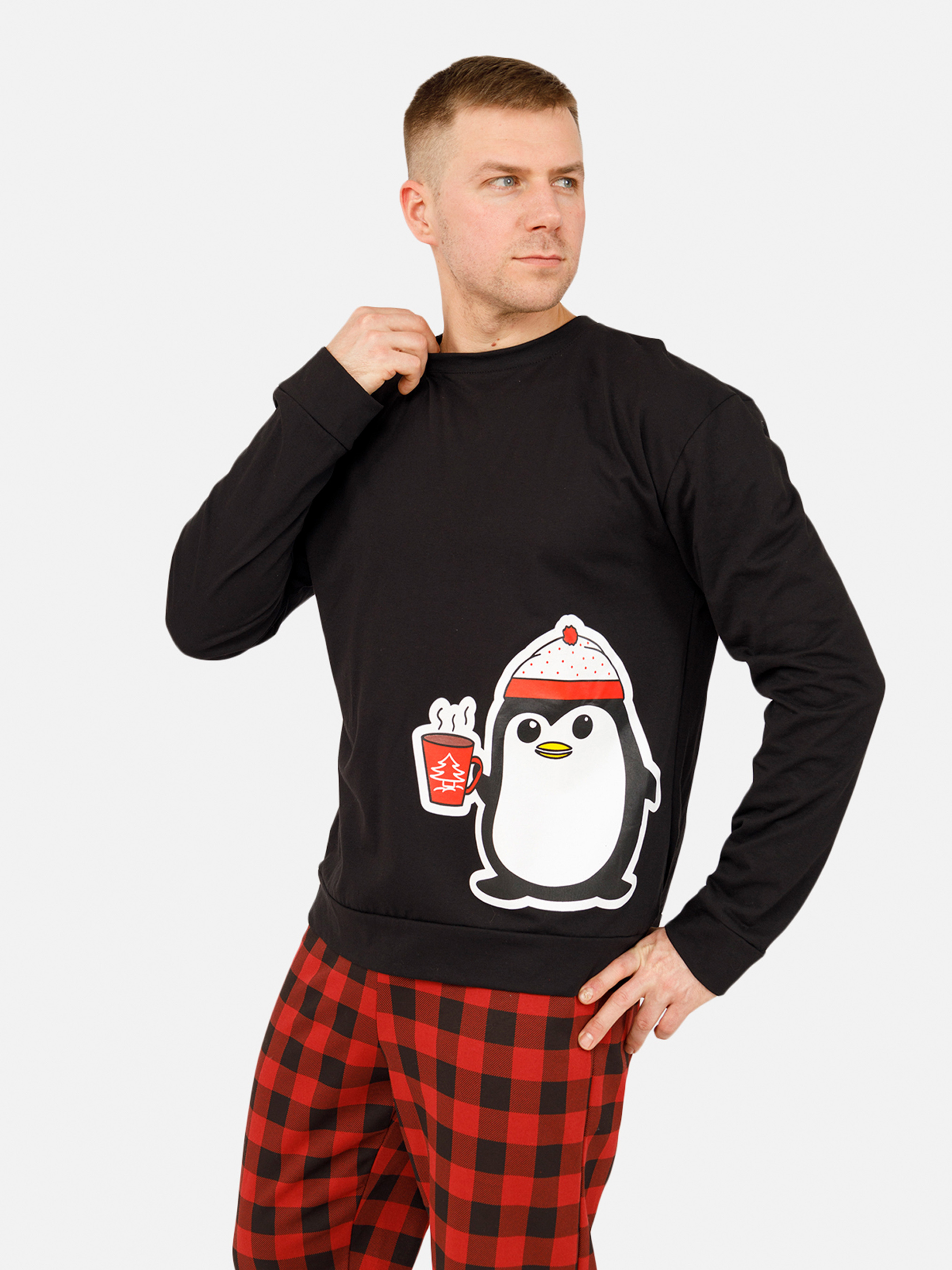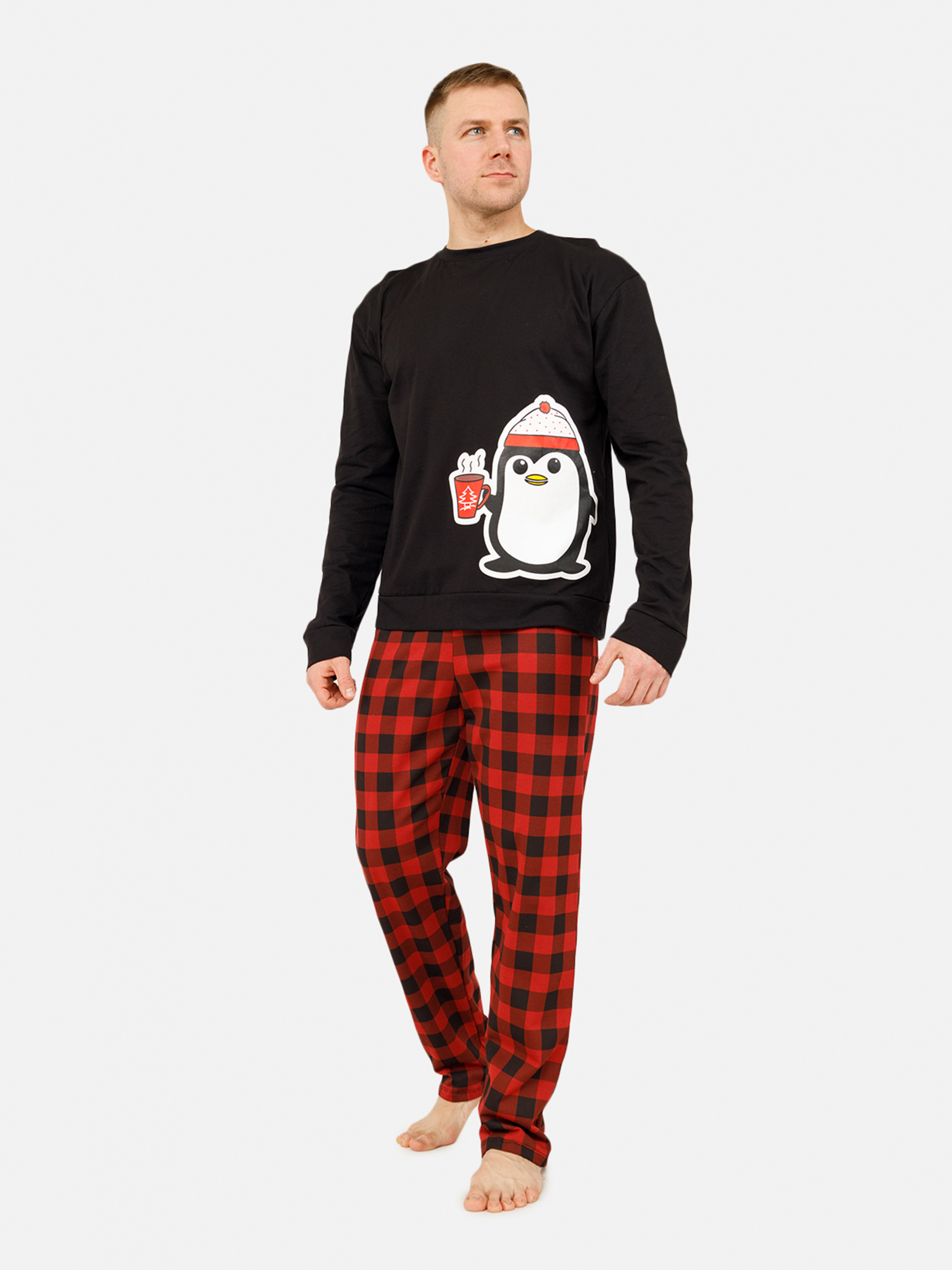Мужская пижама - идеальное сочетание комфорта и стиля для вашего отдыха. Комплект изготовлен из мягкого, дышащего материала, который приятно ощущается на теле, не вызывает раздражений и обеспечивает максимальный комфорт во время сна. Классический крой и лаконичный дизайн делают эту пижаму универсальным выбором для любого мужчины, а мягкие, натуральные цвета добавляют сдержанной элегантности. Брюки свободного кроя на мягкой резинке обеспечивают дополнительное удобство, а простой, но стильный дизайн подходит как для домашнего отдыха, так и для уютных вечеров в кругу семьи. Мужская пижама - это практичный и стильный подарок, который дарит комфорт и тепло каждый день. Особенности пижамы: Цвет: черный. В комплекте: брюки и футболка/свитшот с длинным рукавом. Материал изготовления: трикотаж. Состав: 100 % хлопок. Параметры модели: Рост: 180 сантиметров. Размер на модели: L / украинский размер - 50. Страна производитель: Украина.