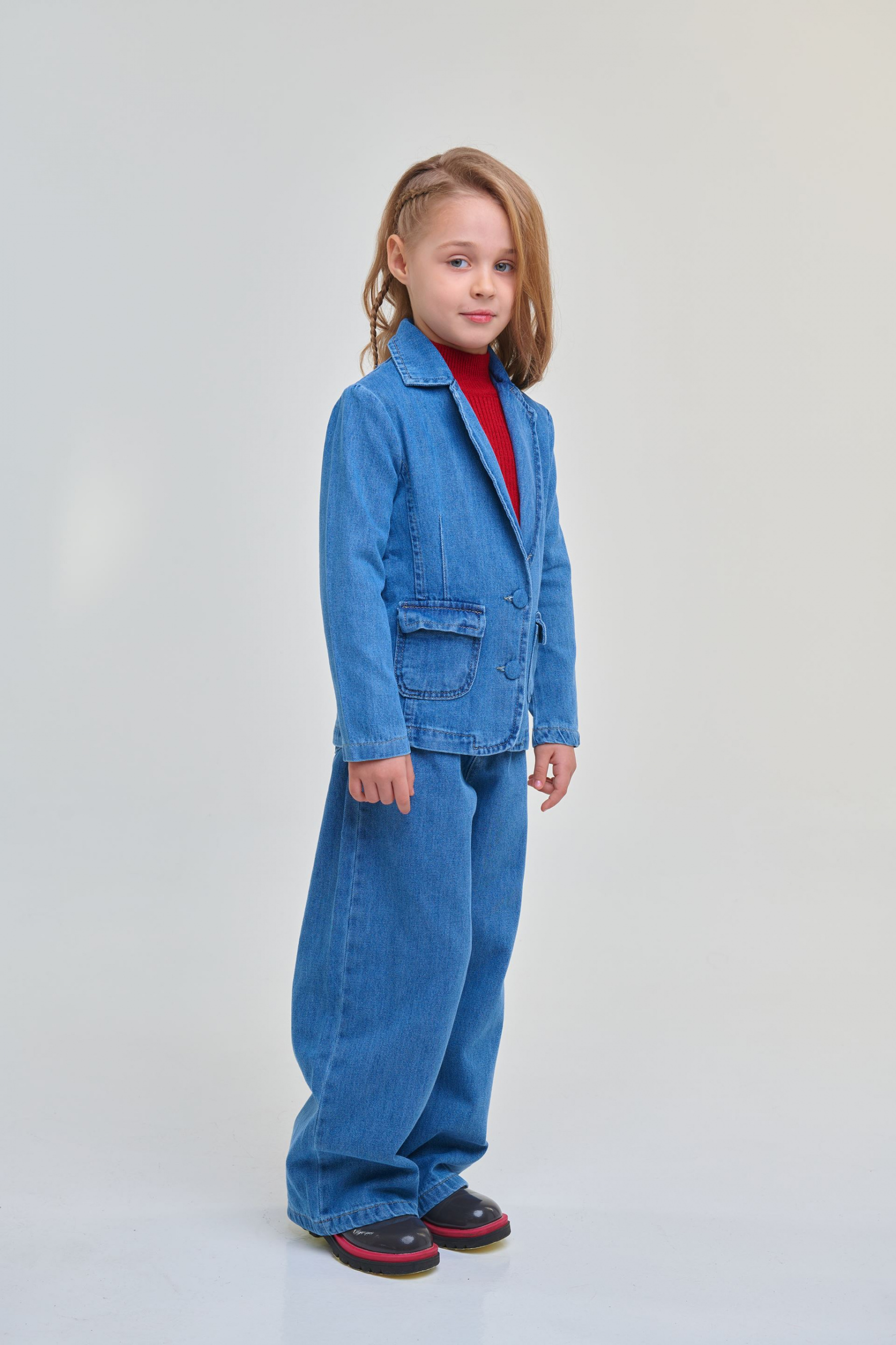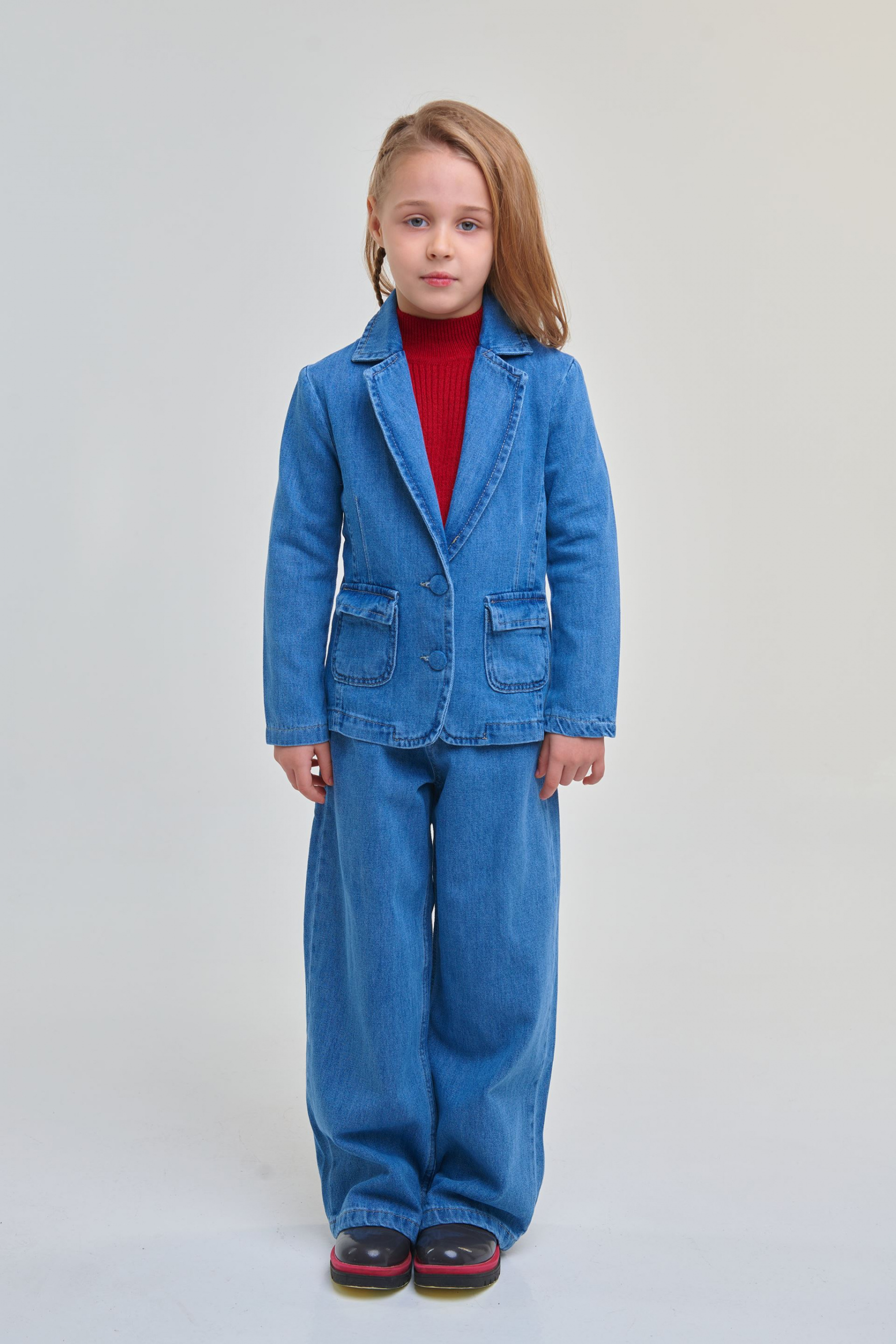 Бестселлер для грядущего весеннего периода. Джинсовый пиджак синего цвета. Подойдет под любые брюки, шорты или юбку. Модель также отлично сочетается с джинсами. Для девочек от 4 до 15 лет.